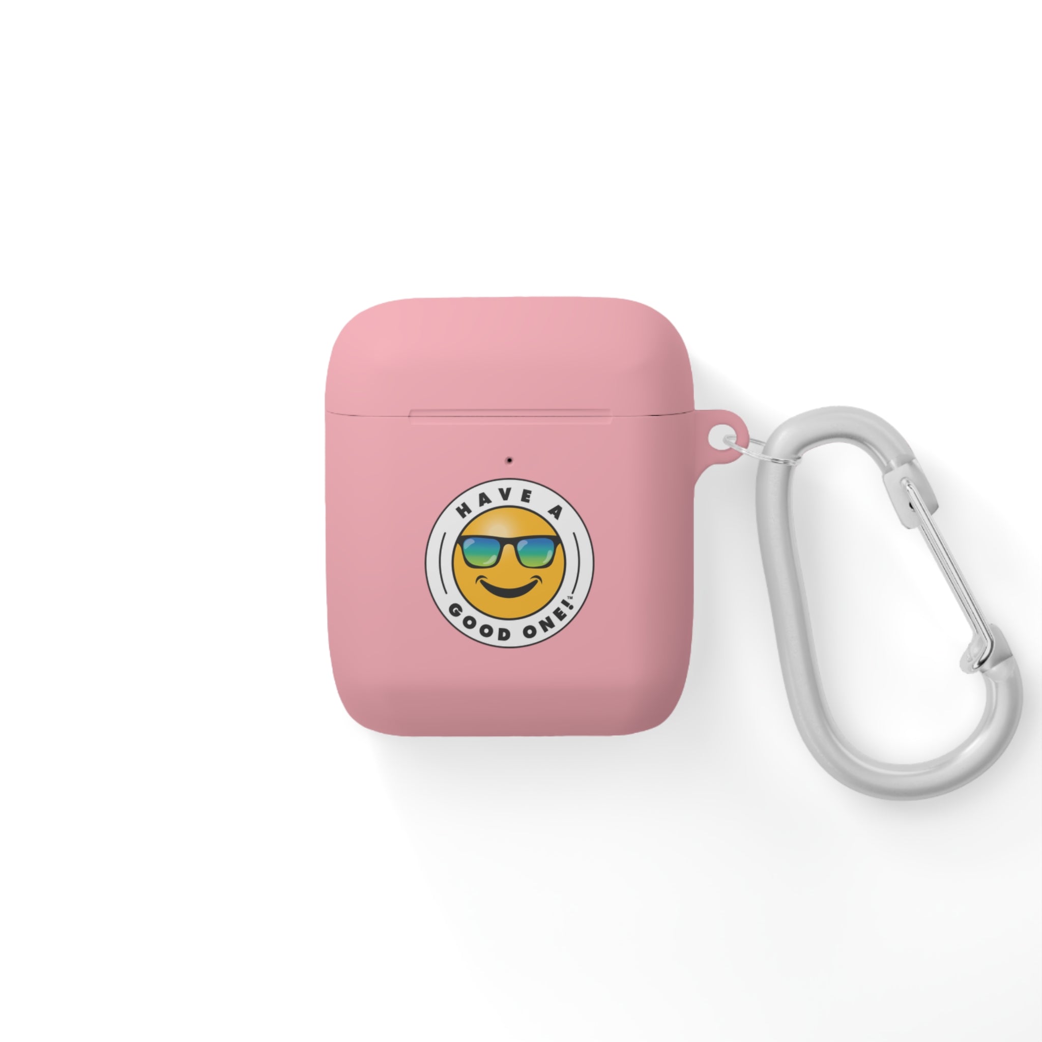 Fun On The Run AirPods Case Cover - Pink Color With Blue Green Have A Good One! Logo