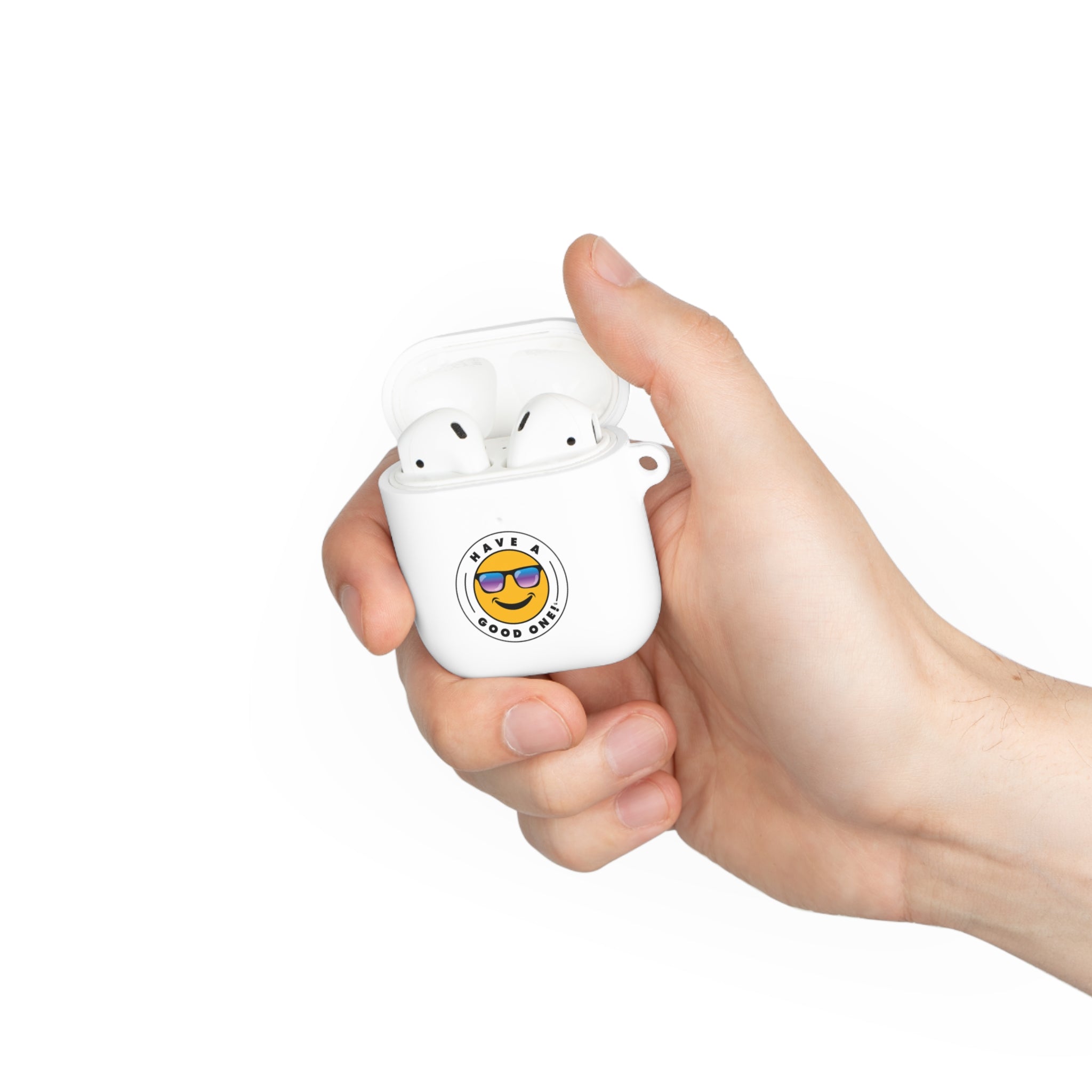 Have Fun On The Run wherever you go with this festive Have A Good One AirPods case! This custom AirPods cover safeguards your AirPods against bumps, scratches and drops. Each case comes with a metal carabiner for secure, effortless transportation wherever you take it. This AirPods case is compatible with the regular and wireless charging case for Airpods. So grab your AirPods cover and head off on a fun adventure! Wherever you are going your Have A Good One! Airpods case is sure to make it more enjoyable!
