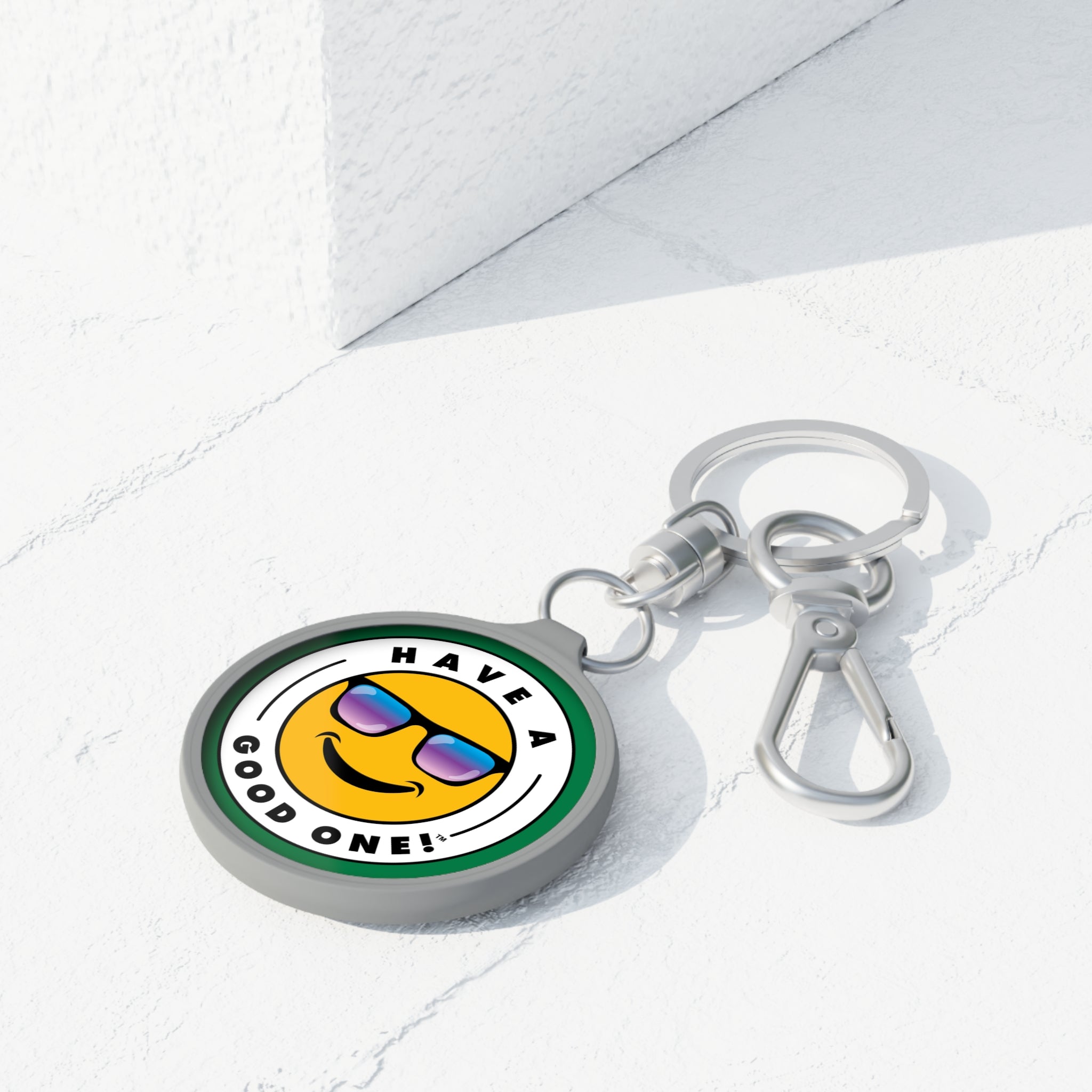Fun On The Run Have A Good One! Key Chain - Dark Grey Color With Green and Blue Have a Good One Logo