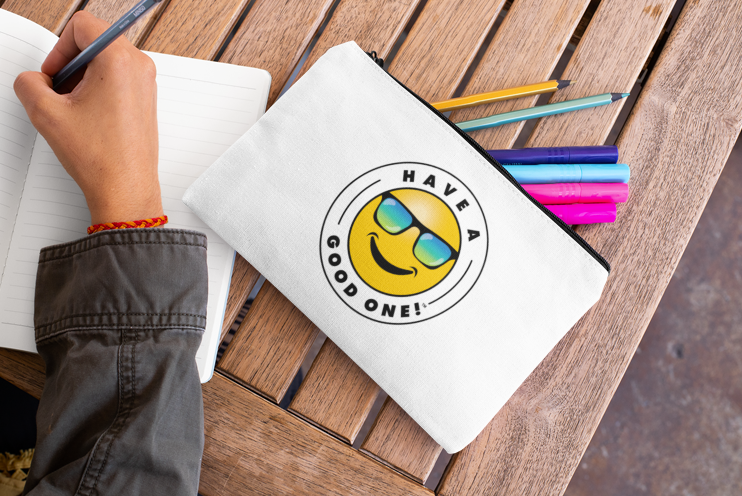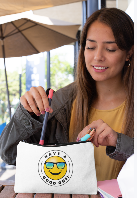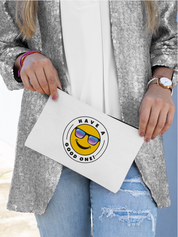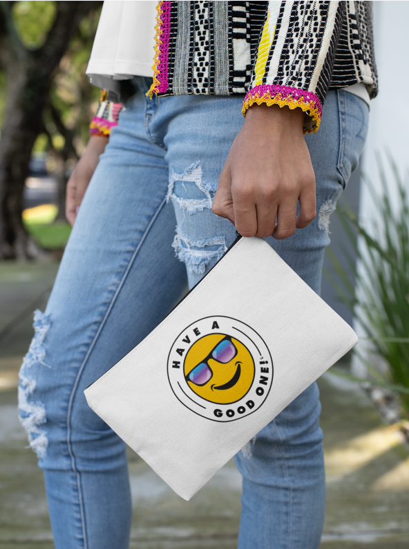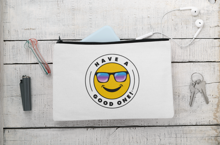 Accessory Pouch - White Color With Blue and Green Have A Good One! Logo