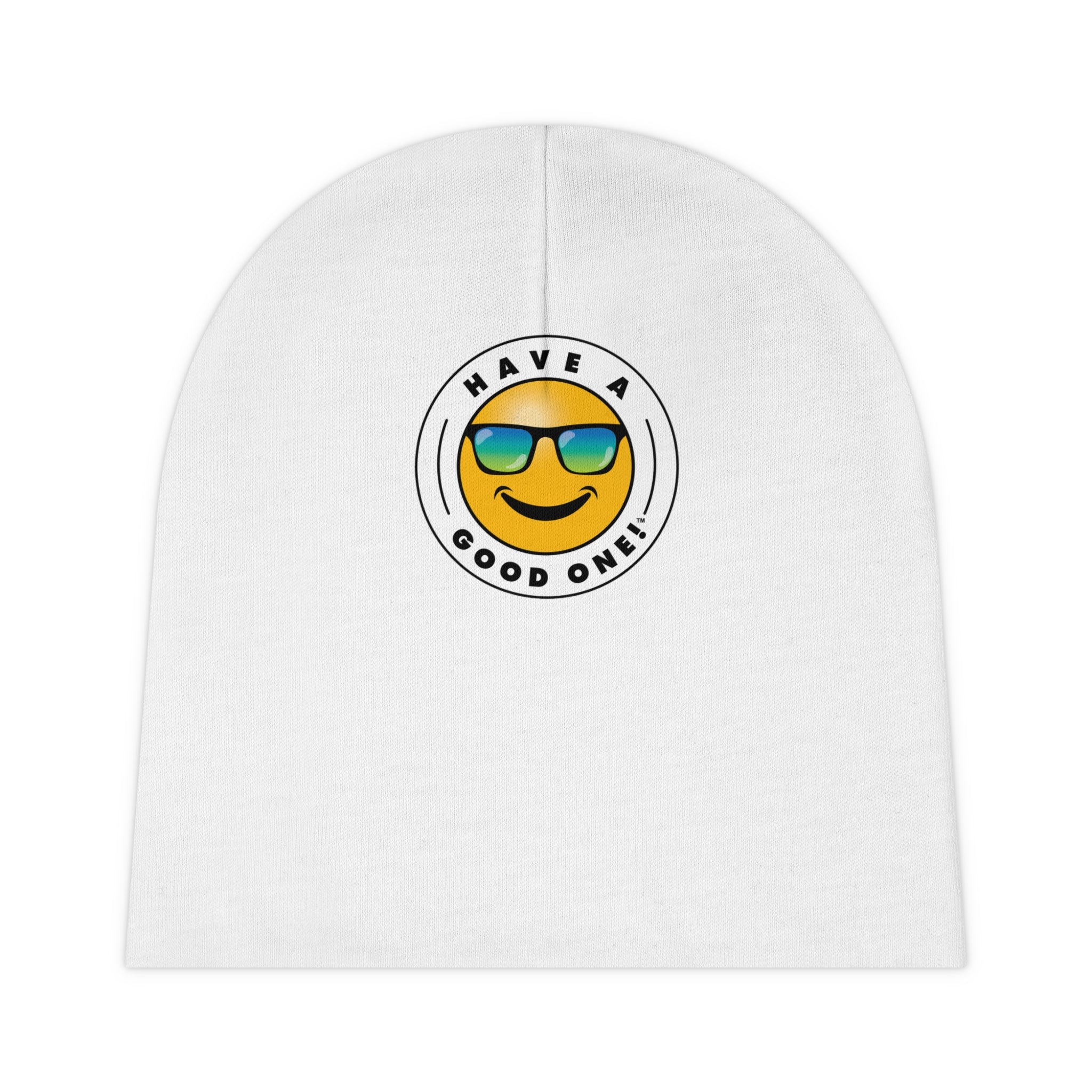Bundle of Joy Have A Good One! Baby Beanie Hat - White Color With Blue Green Logo