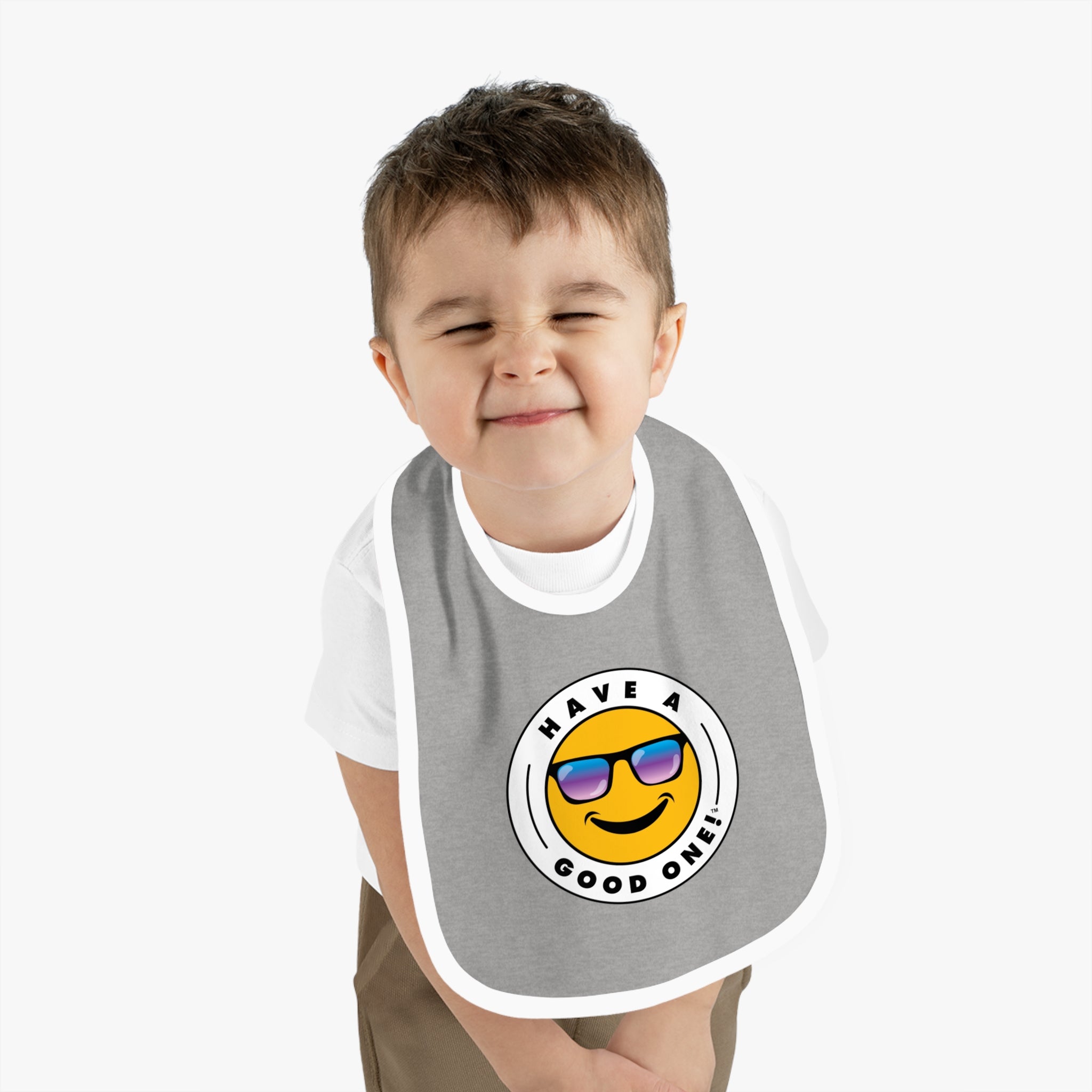 Bundle of Joy Have A Good One! Baby Bib - Grey Color With Blue and Purple Have A Good One Logo