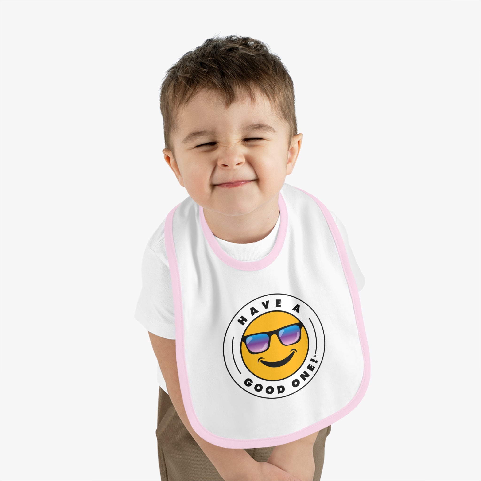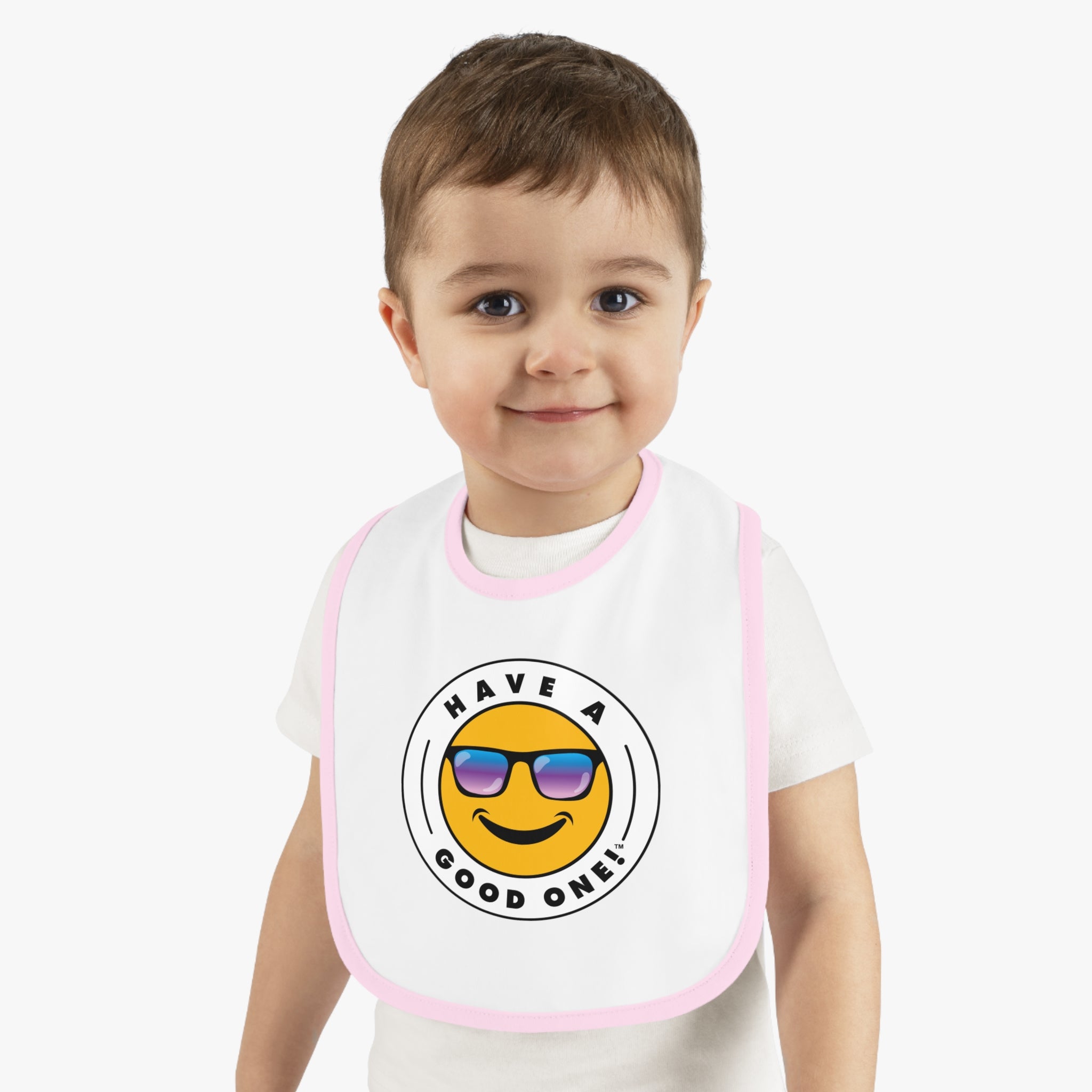 Bundle of Joy Have A Good One! Baby Bib - White Color With Blue and Purple Have A Good One Logo