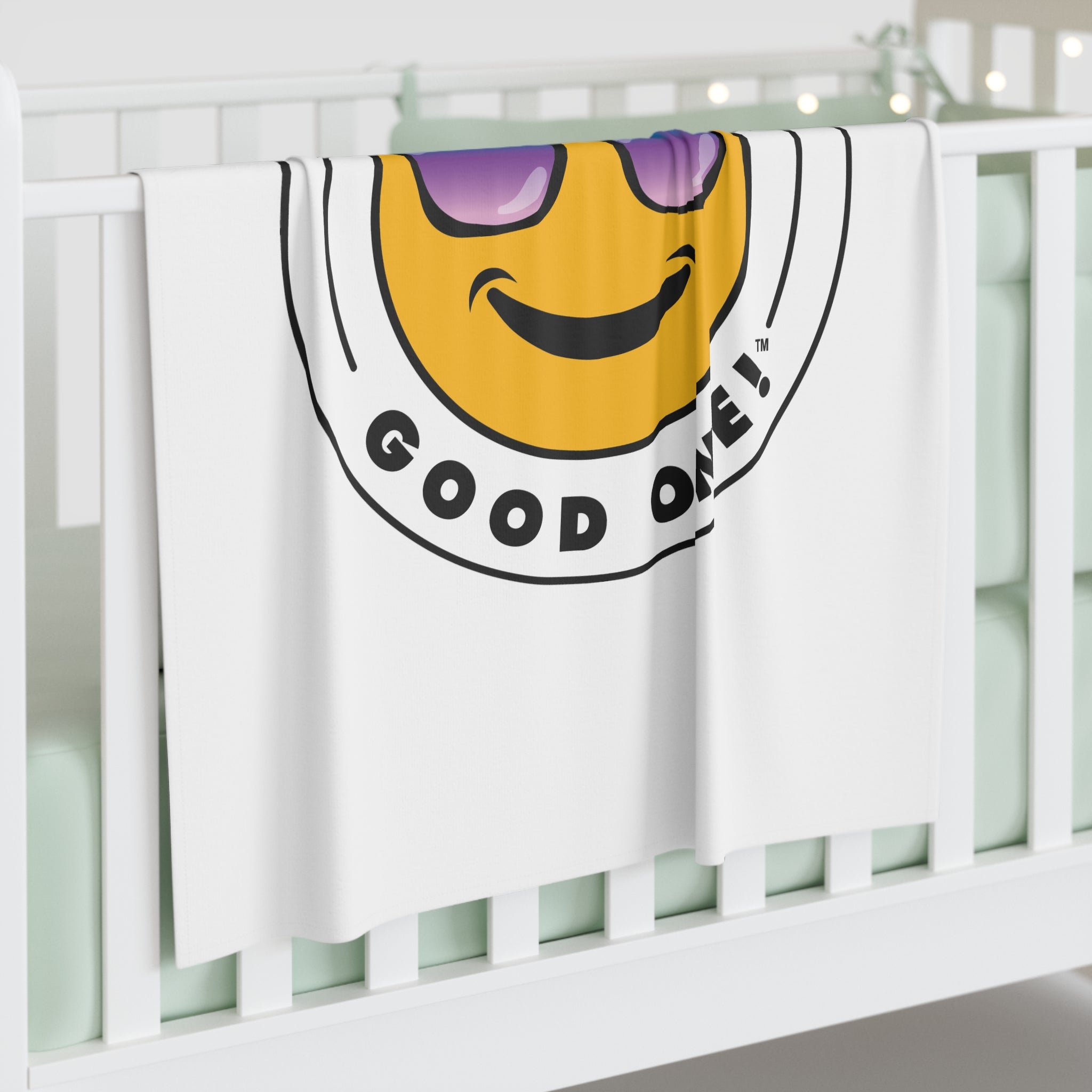 Bundle of Joy Baby Swaddle Have A Good One! Blanket - White Color With Blue Purple Logo