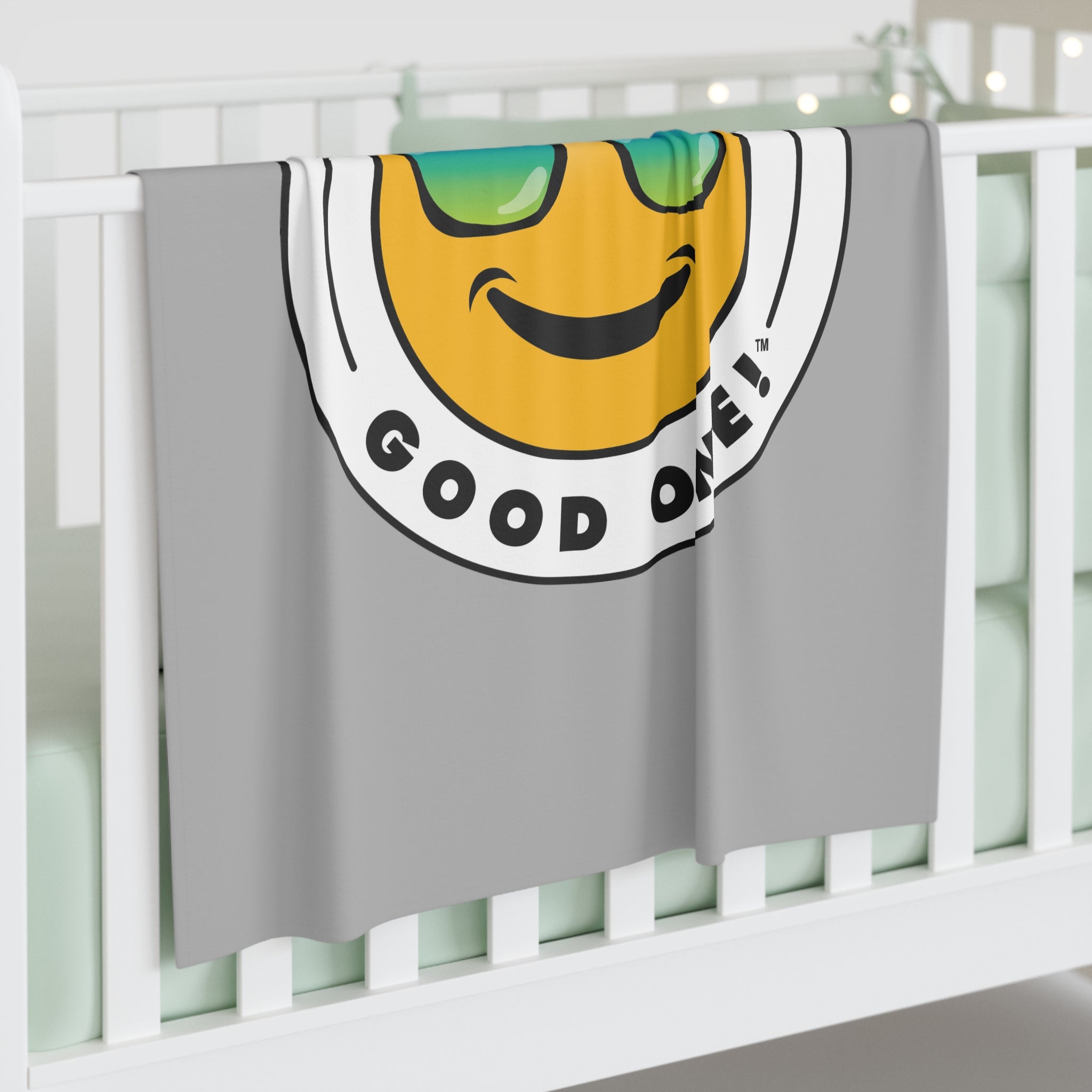 Bundle of Joy Baby Swaddle Have A Good One! Blanket - Light Grey Color With Blue Green Logo