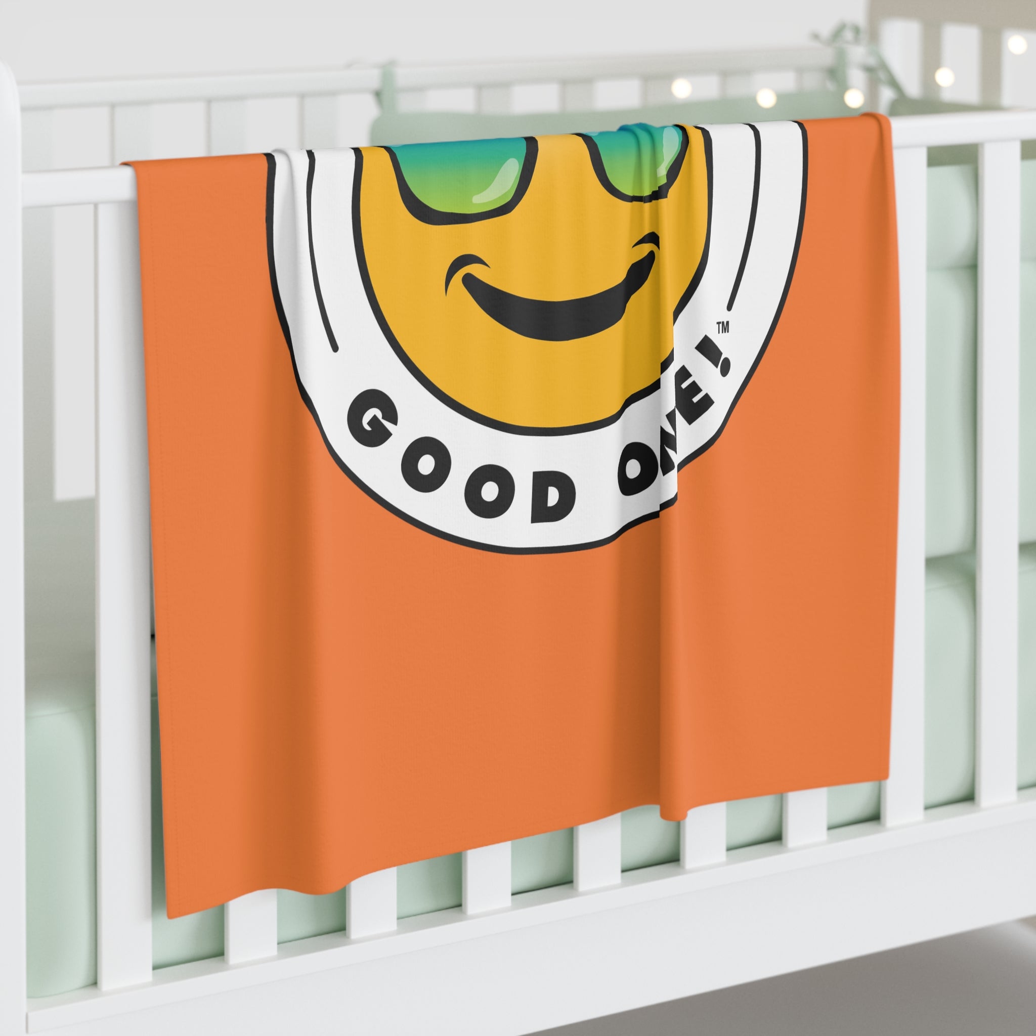 Bundle of Joy Baby Swaddle Have A Good One! Blanket - Orange Color With Blue Green Logo