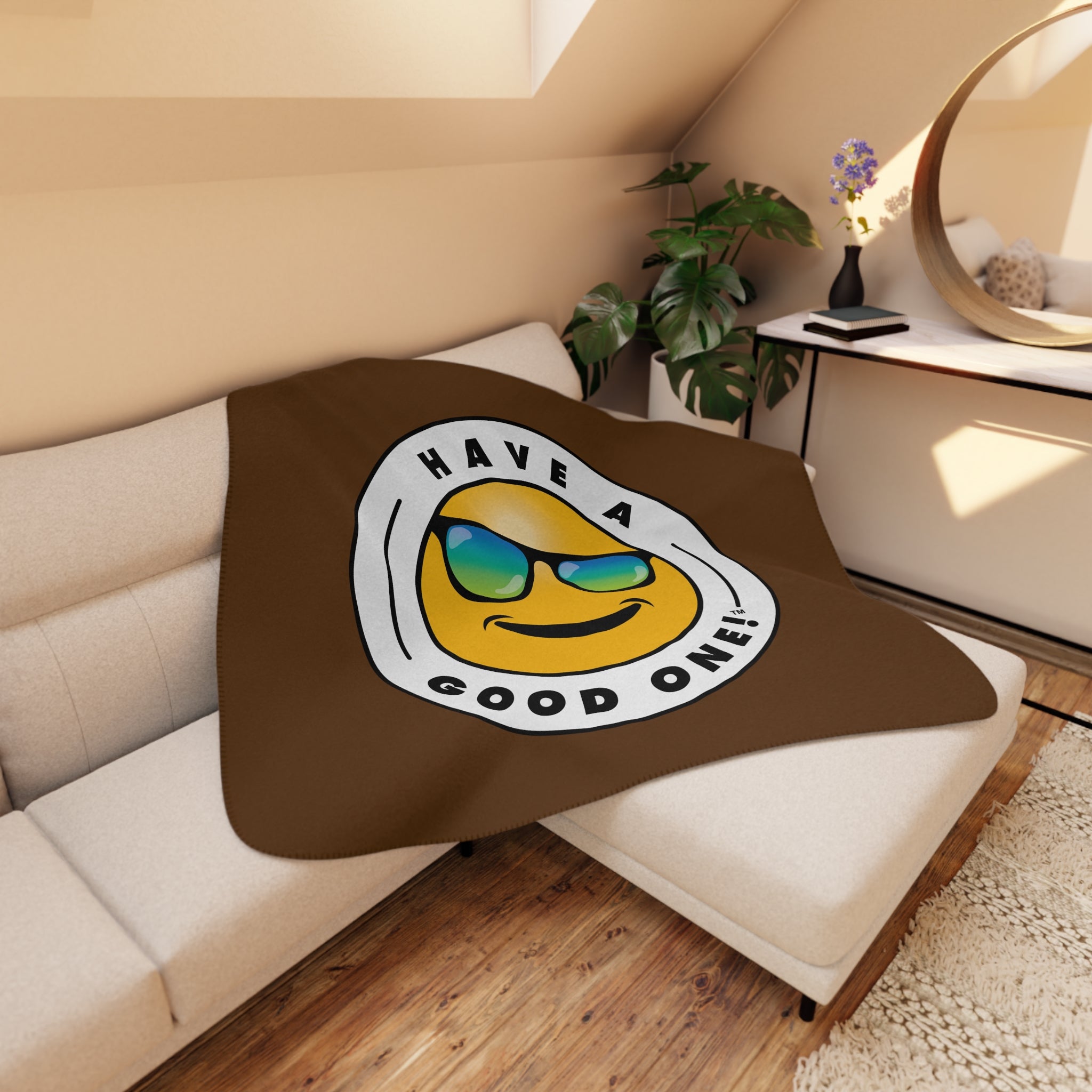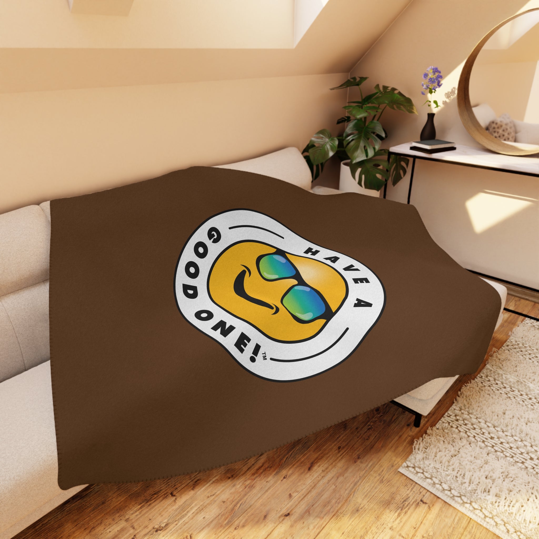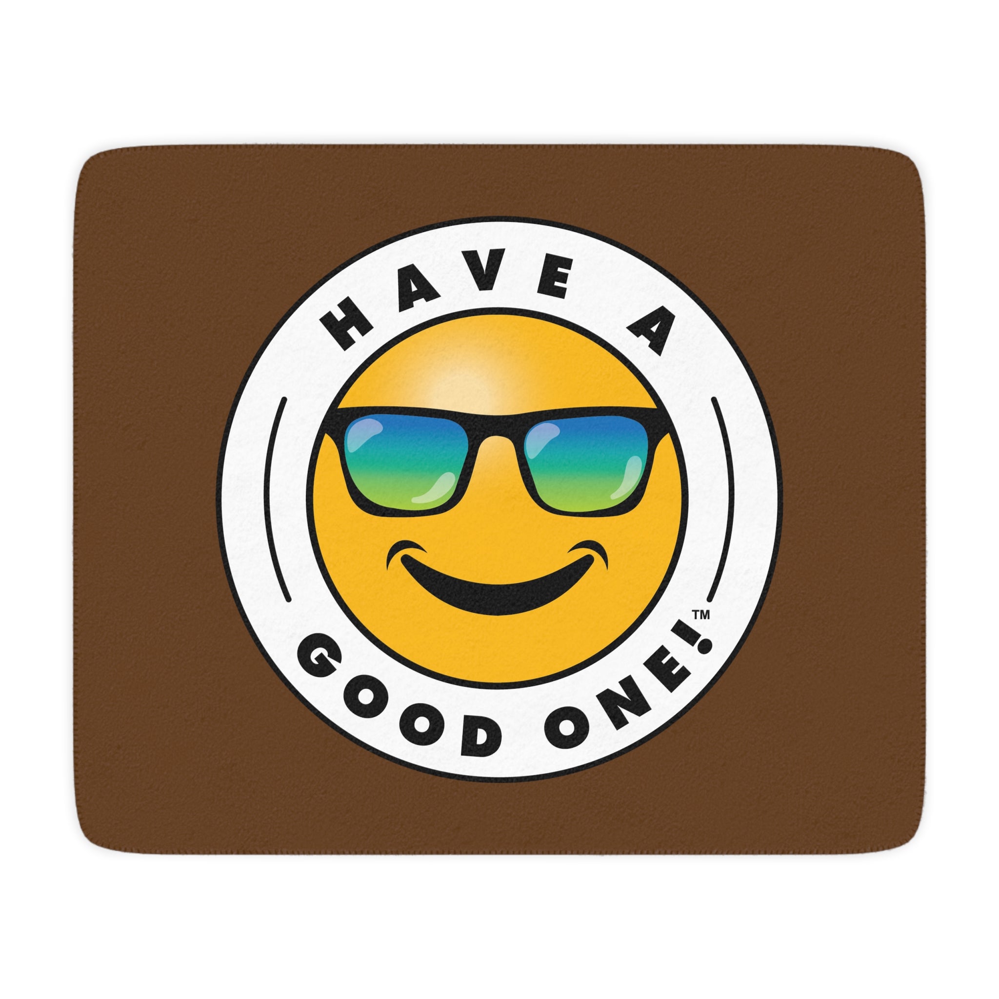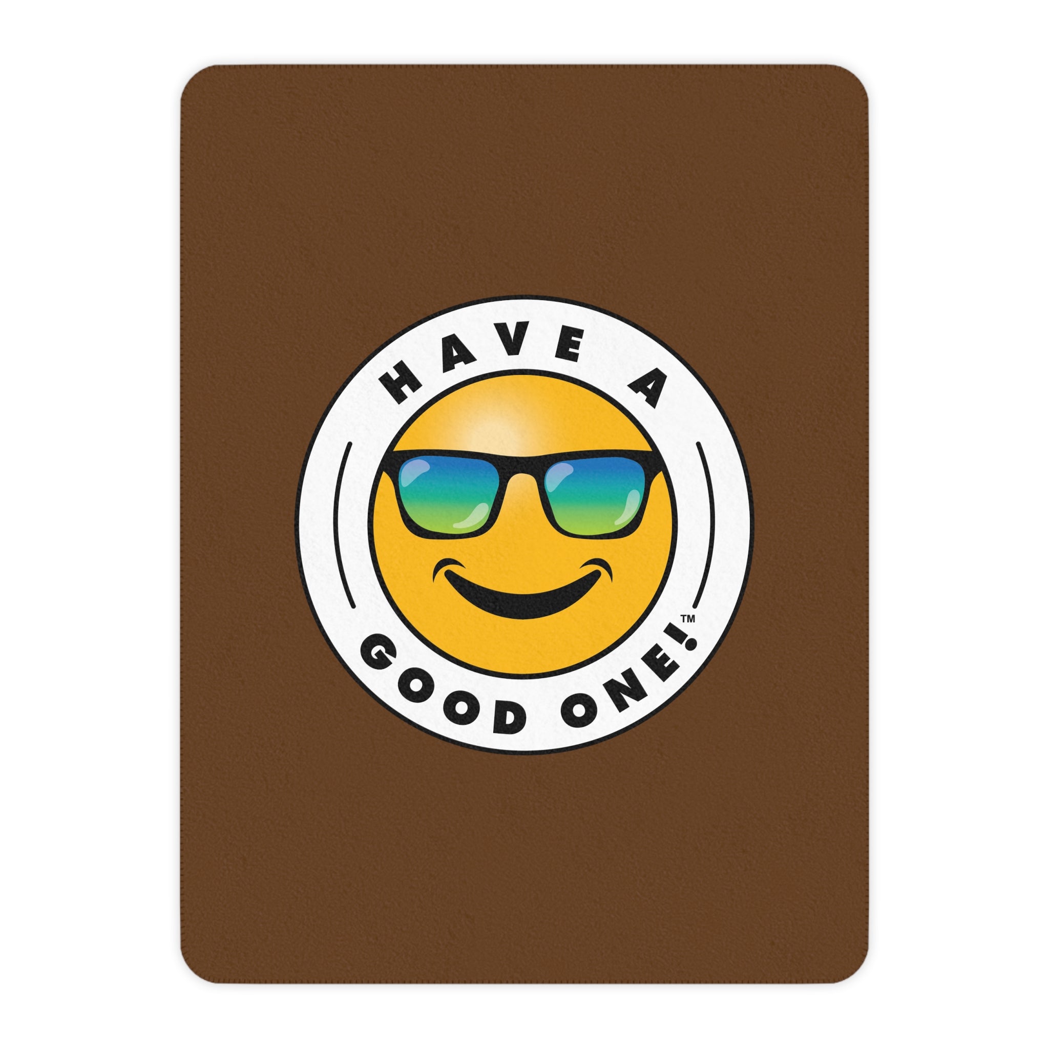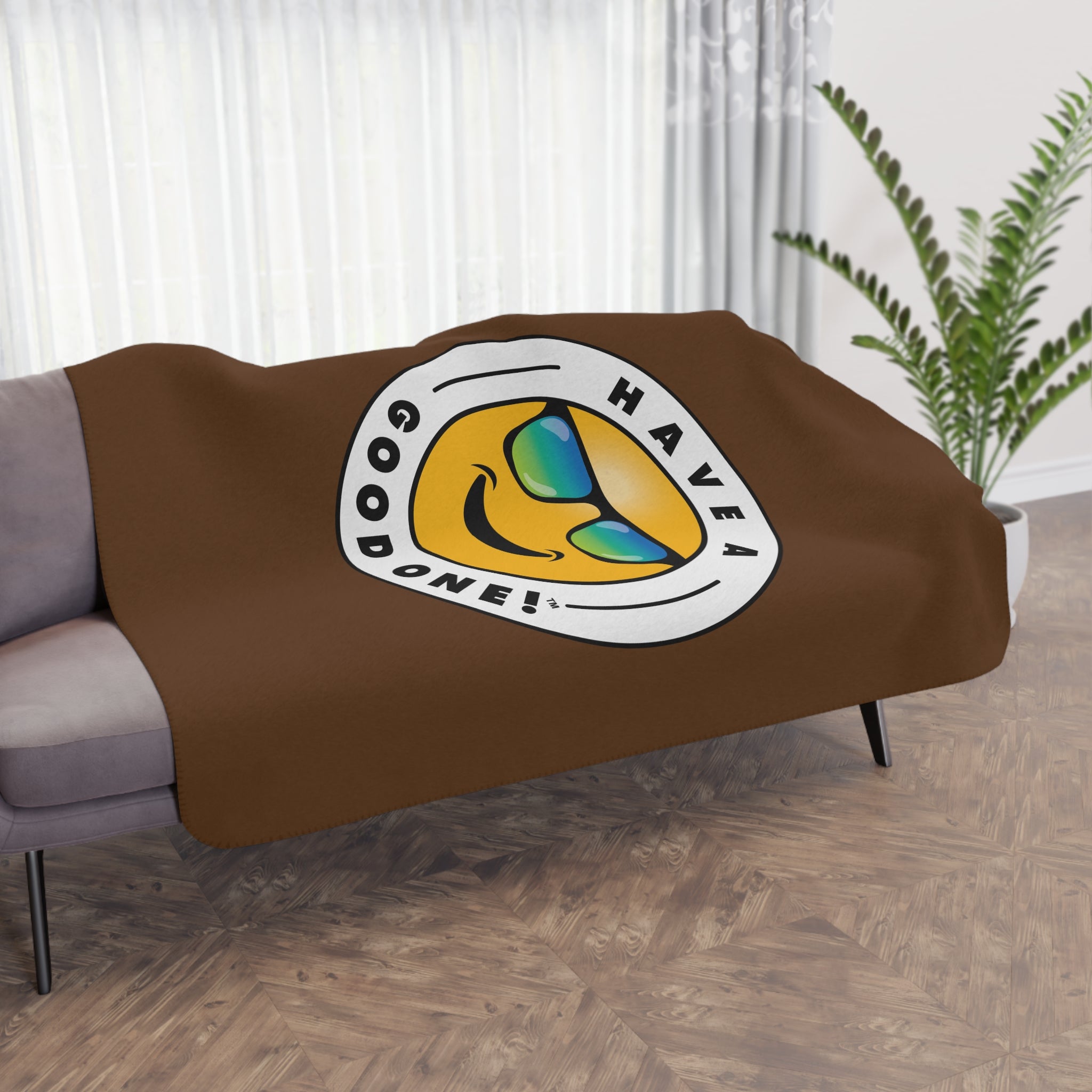 Sherpa Plush Blanket – Brown Color With Blue Green Have A Good One! Logo