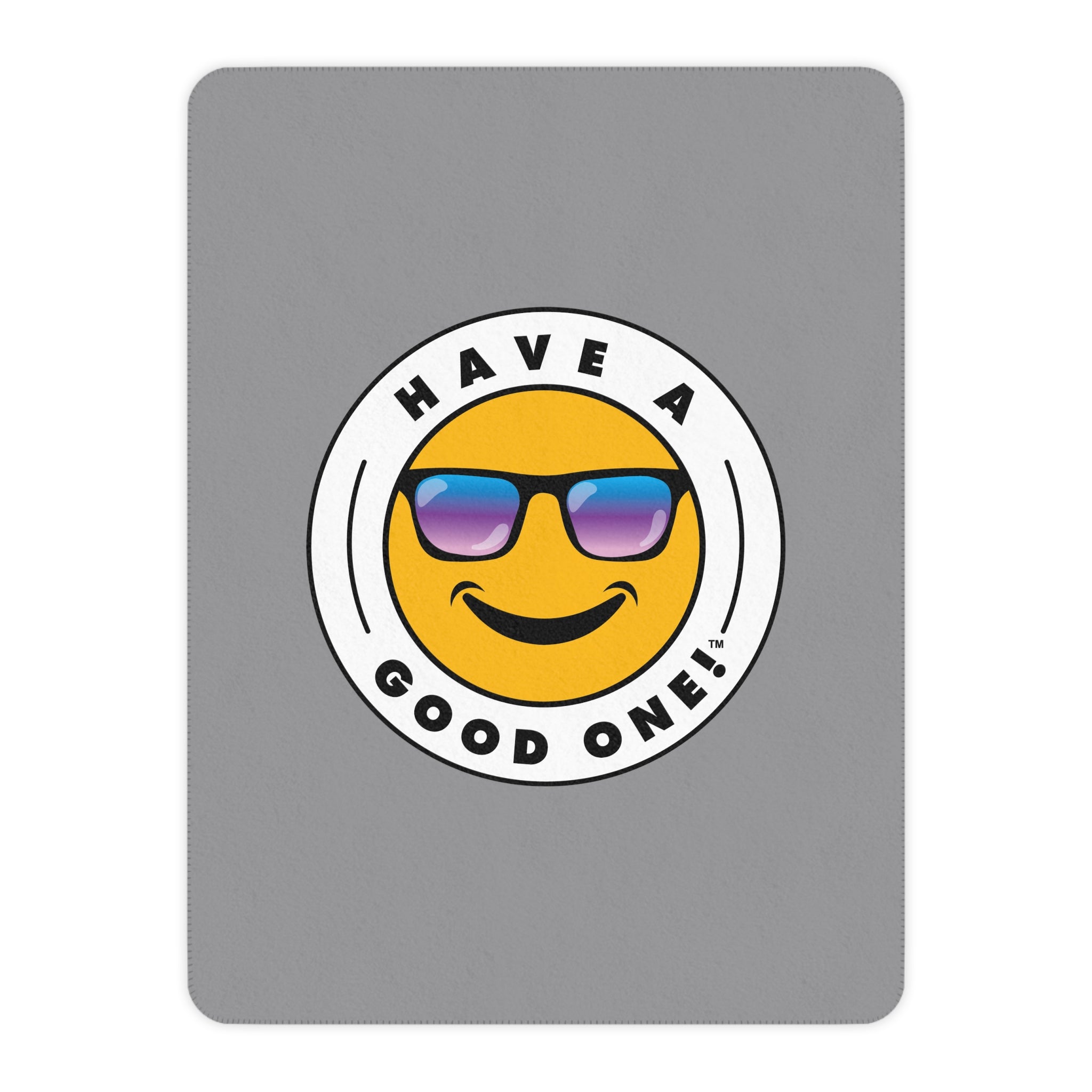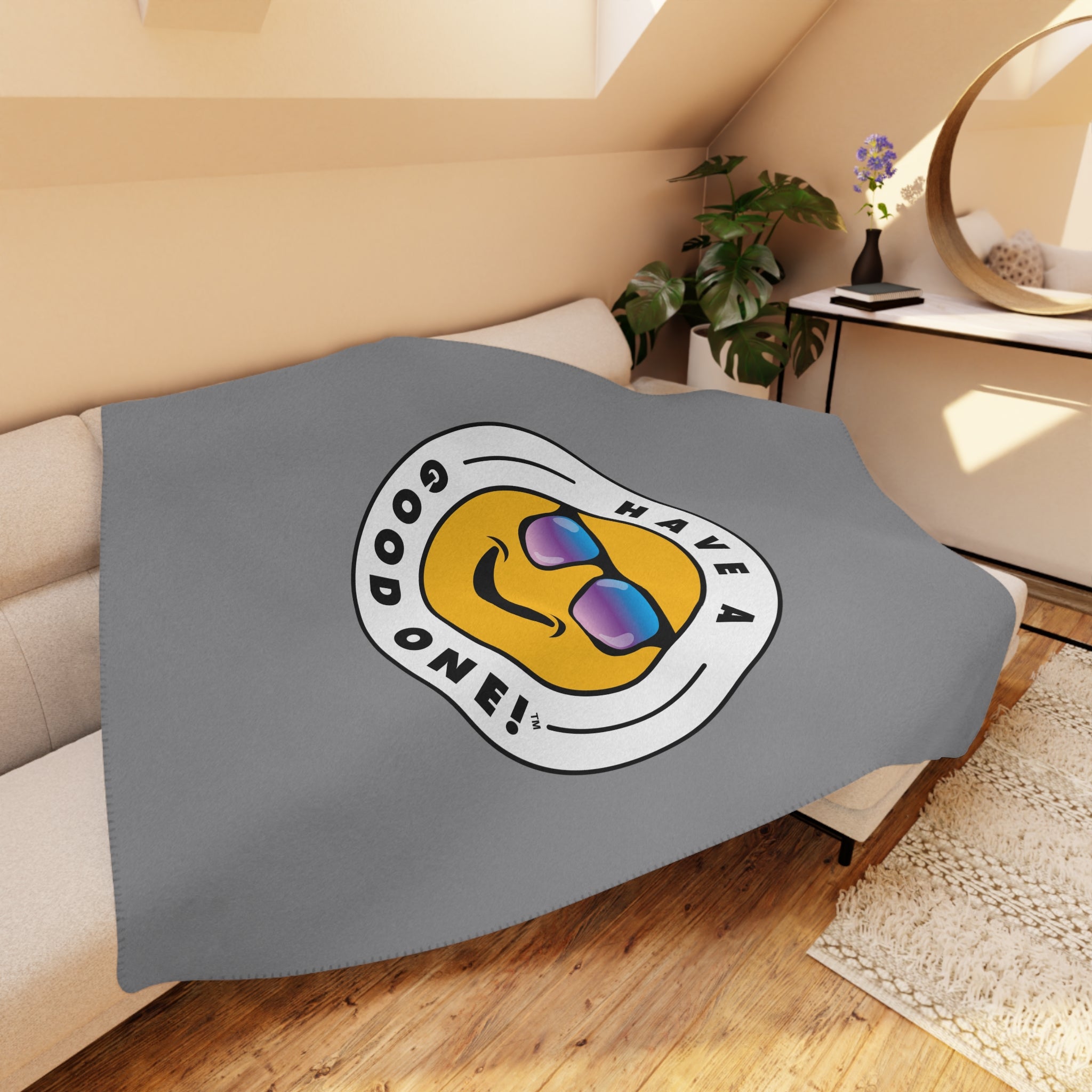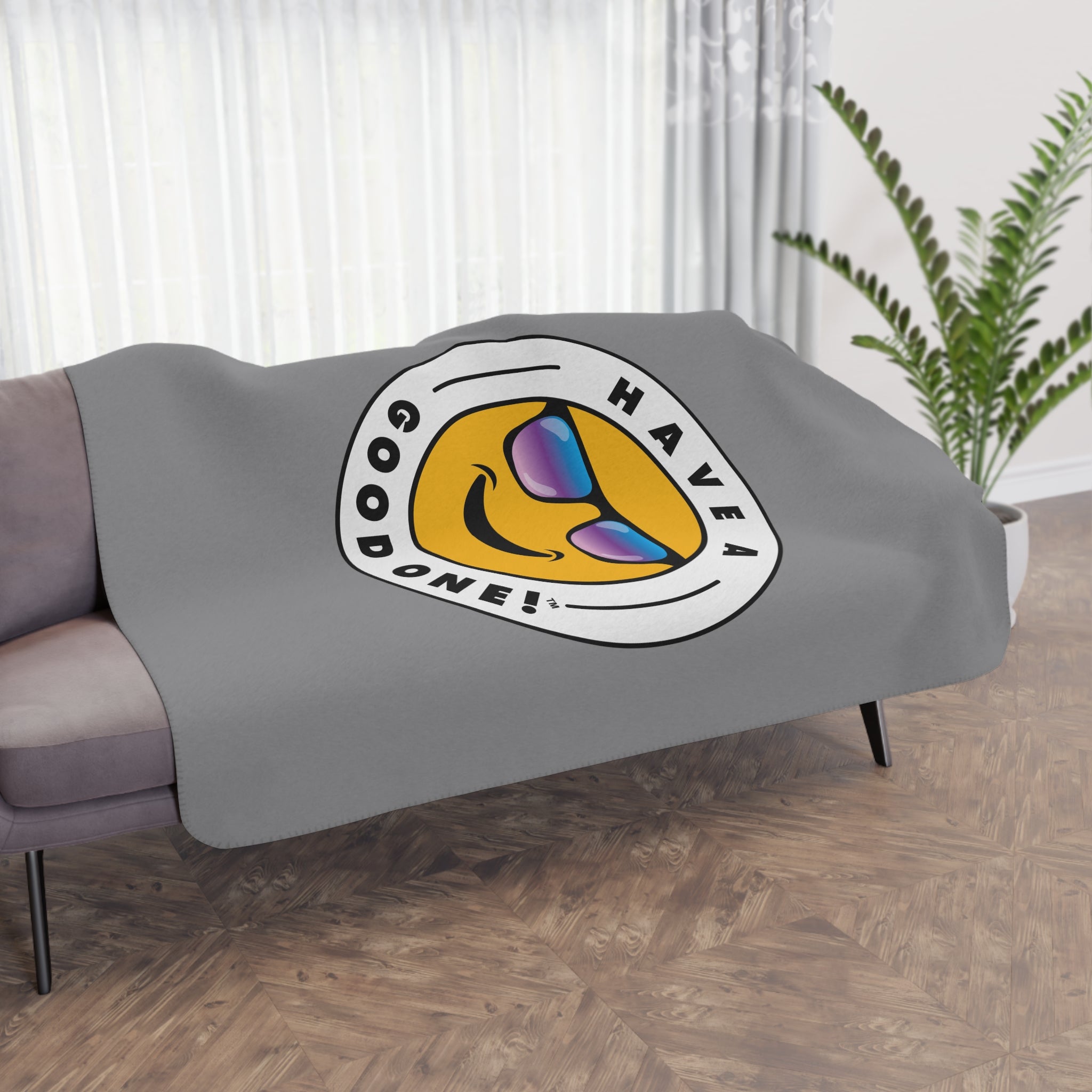 Sherpa Plush Blanket – Grey Color With Blue Purple Green Have A Good One! Logo