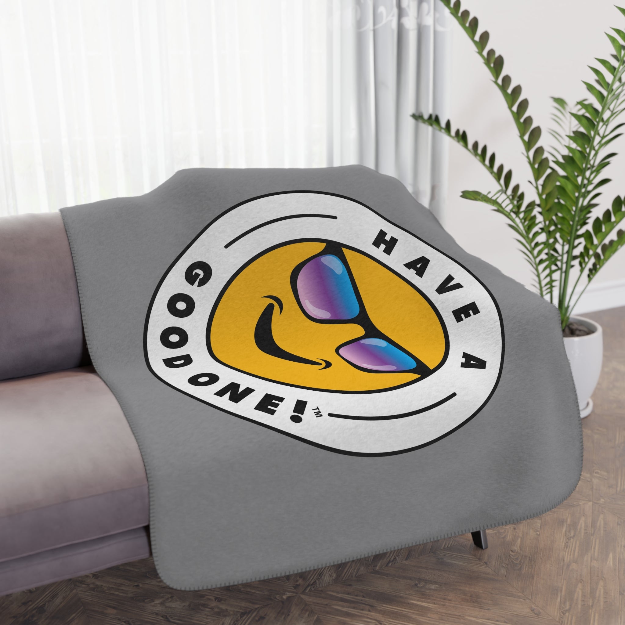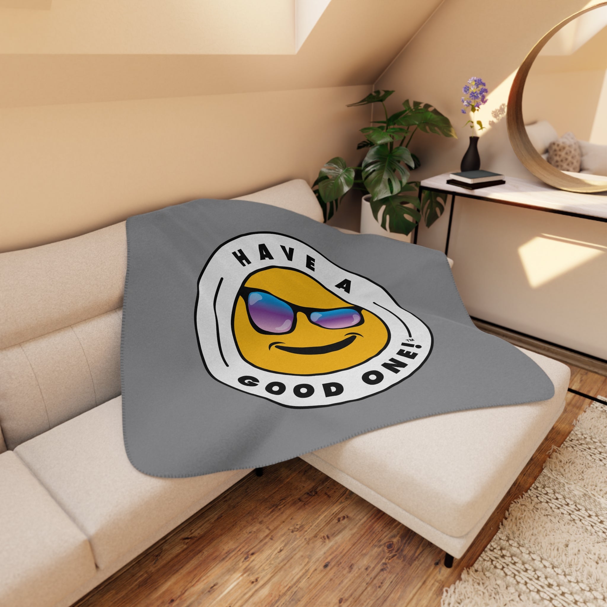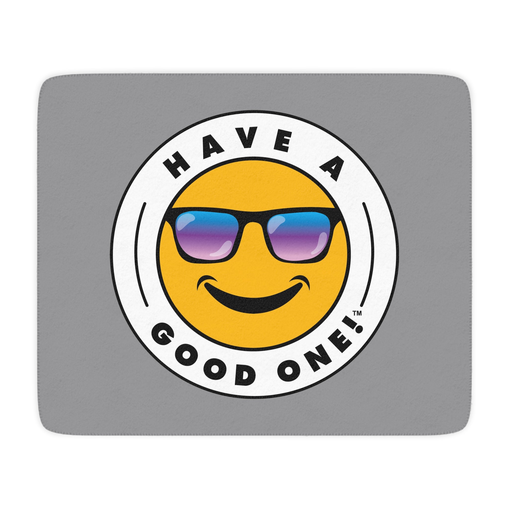 Sherpa Plush Blanket – Grey Color With Blue Purple Green Have A Good One! Logo
