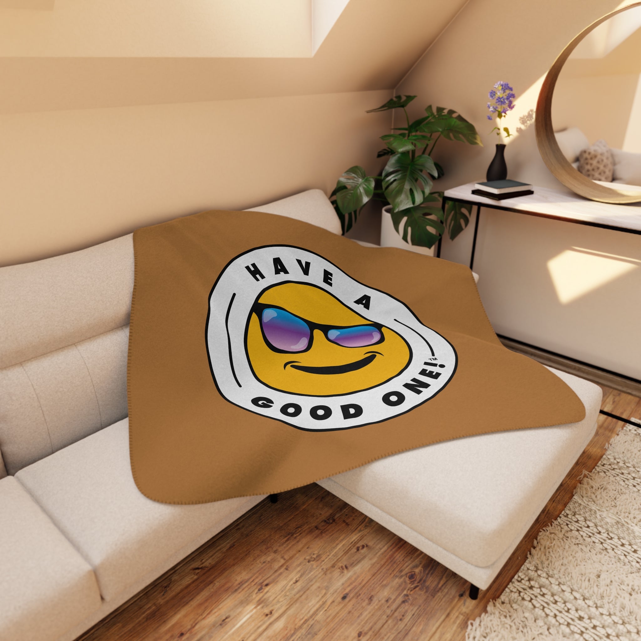 This is such a fun and versatile blanket! You can create a cozy and warm atmosphere at home with this plush sherpa blanket to snuggle up with a loved one, read a book, get comfy watching a movie, read by the fireplace or take a quick power nap. It is soft to touch and perfect for any home. Has rounded corners and decorative stitching with a tan sherpa lining on the back. Blanket is also great for children to play on or curl up watching TV or taking a nap or just use it just by itself to get comfy and warm. These make wonderful gifts for your family and friends. However you decide to use this snuggly blanket you will be sure to Have A Good One!