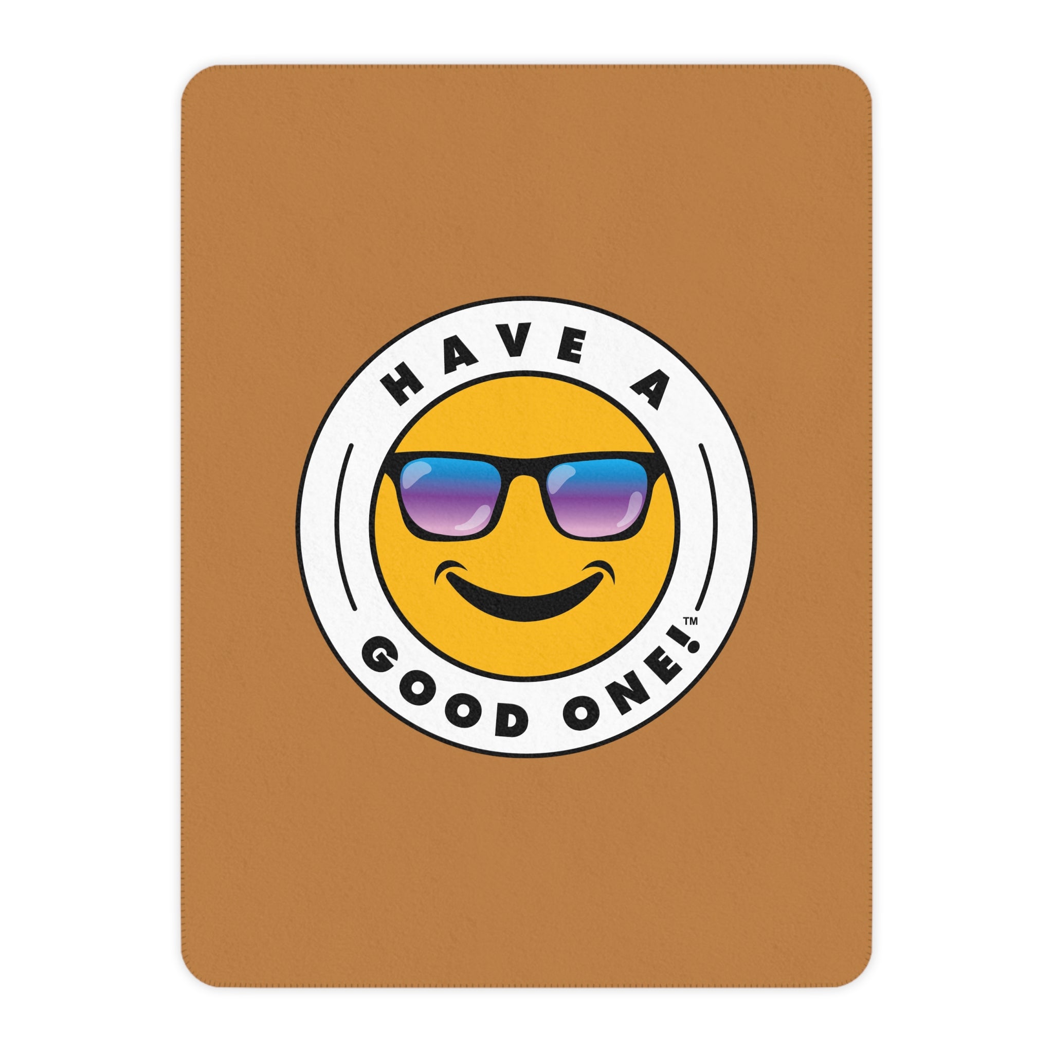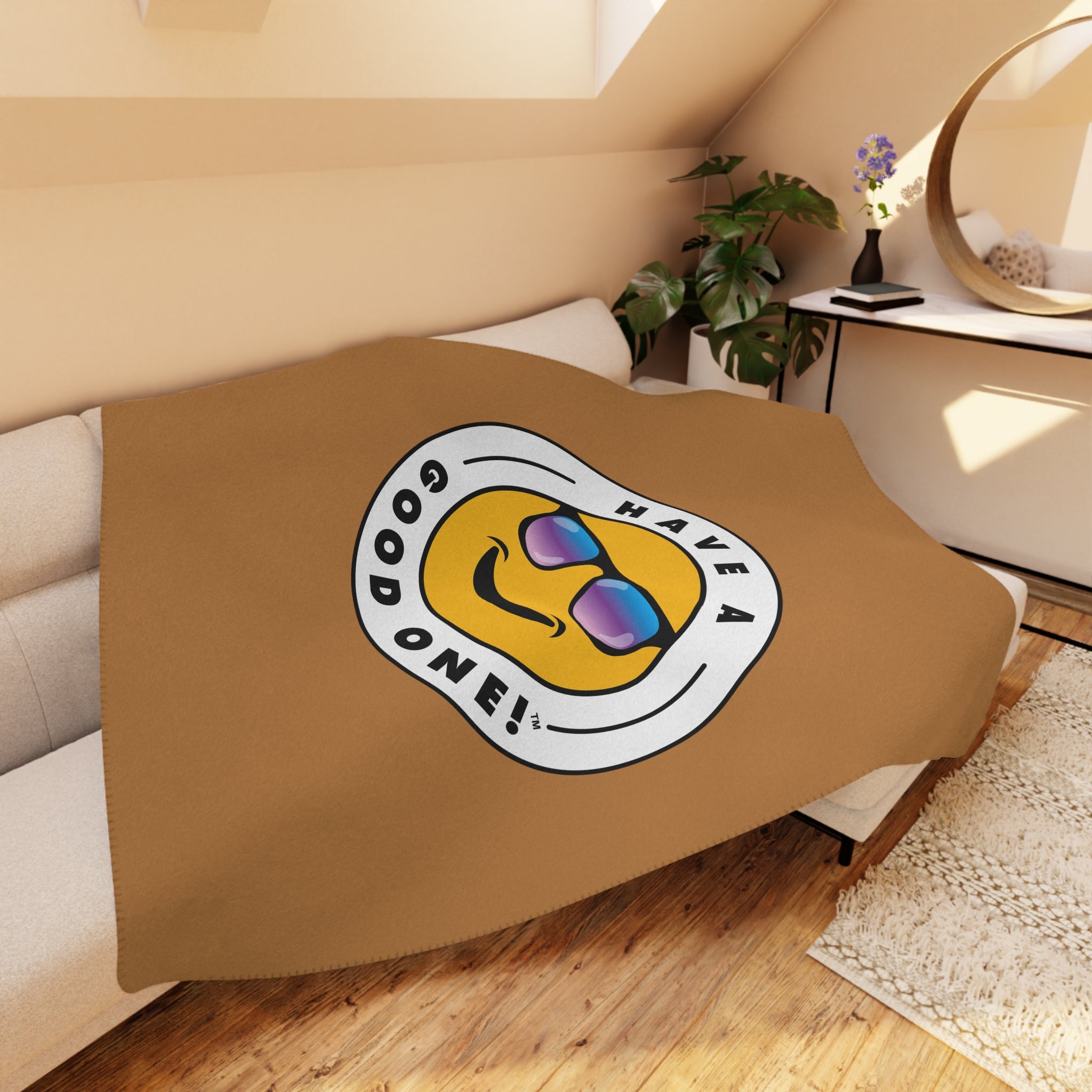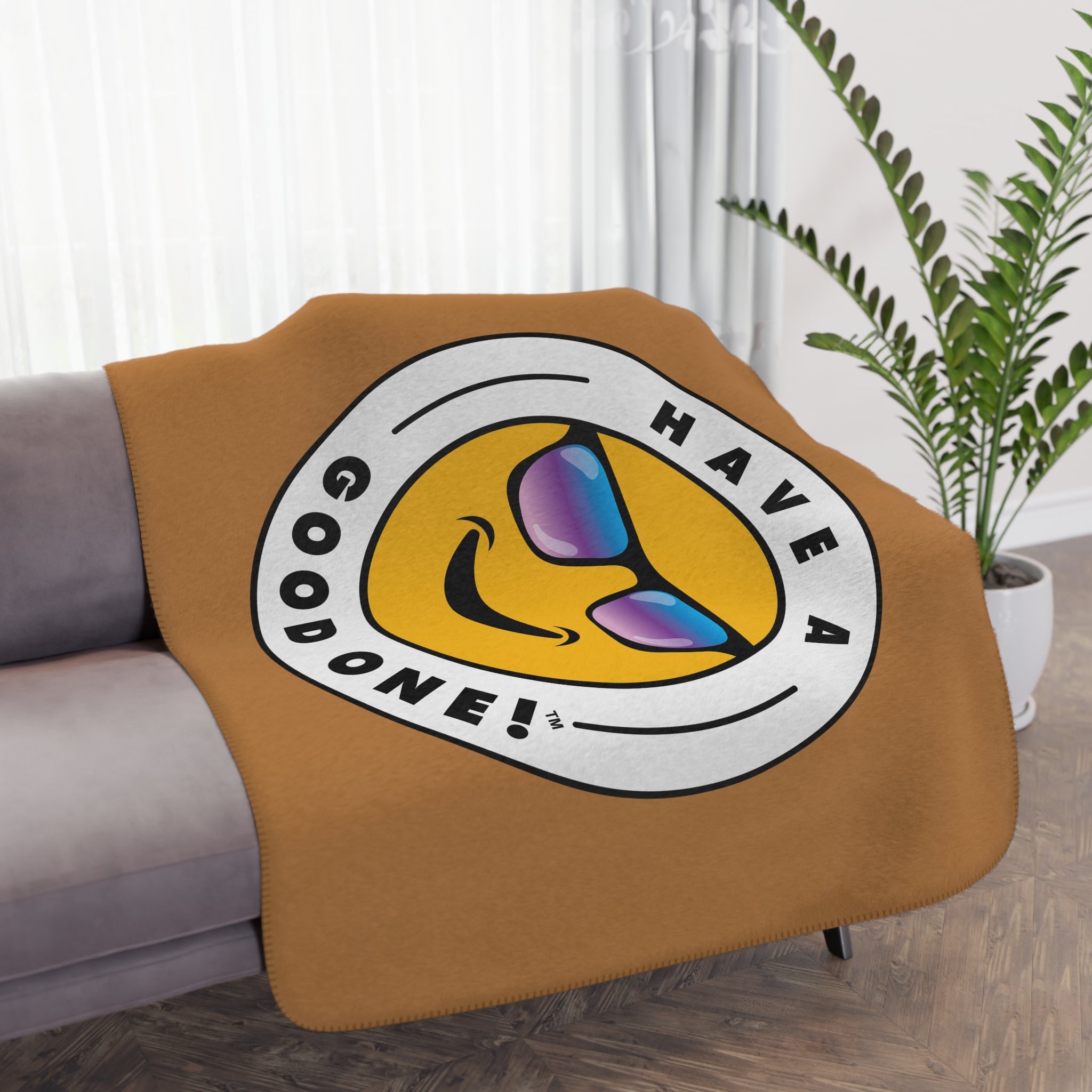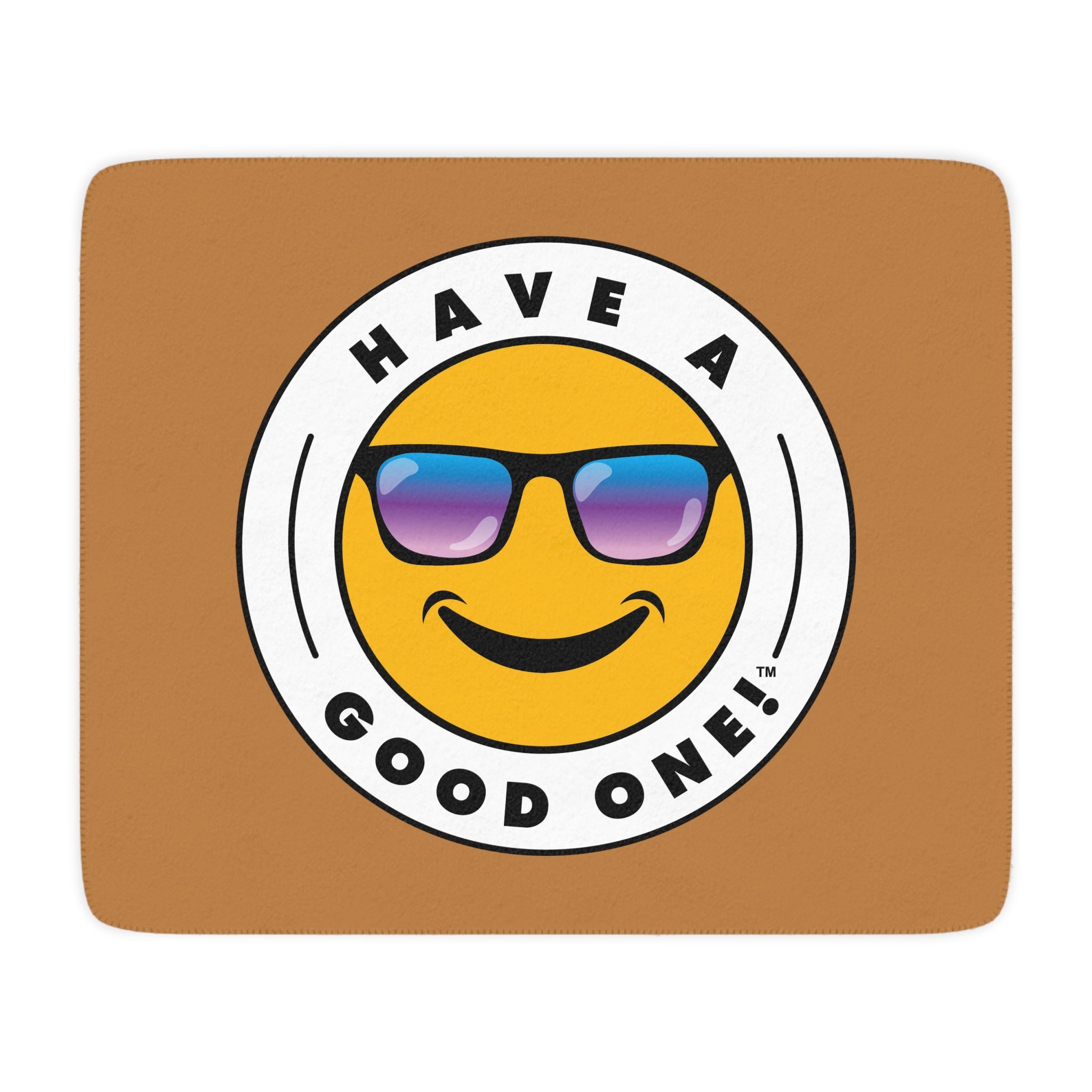 Sherpa Plush Blanket – Light Brown Color With Blue Purple Green Have A Good One! Logo