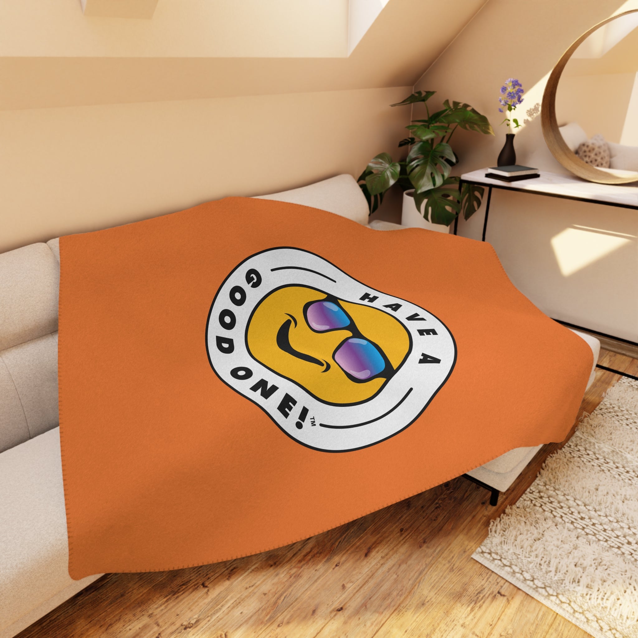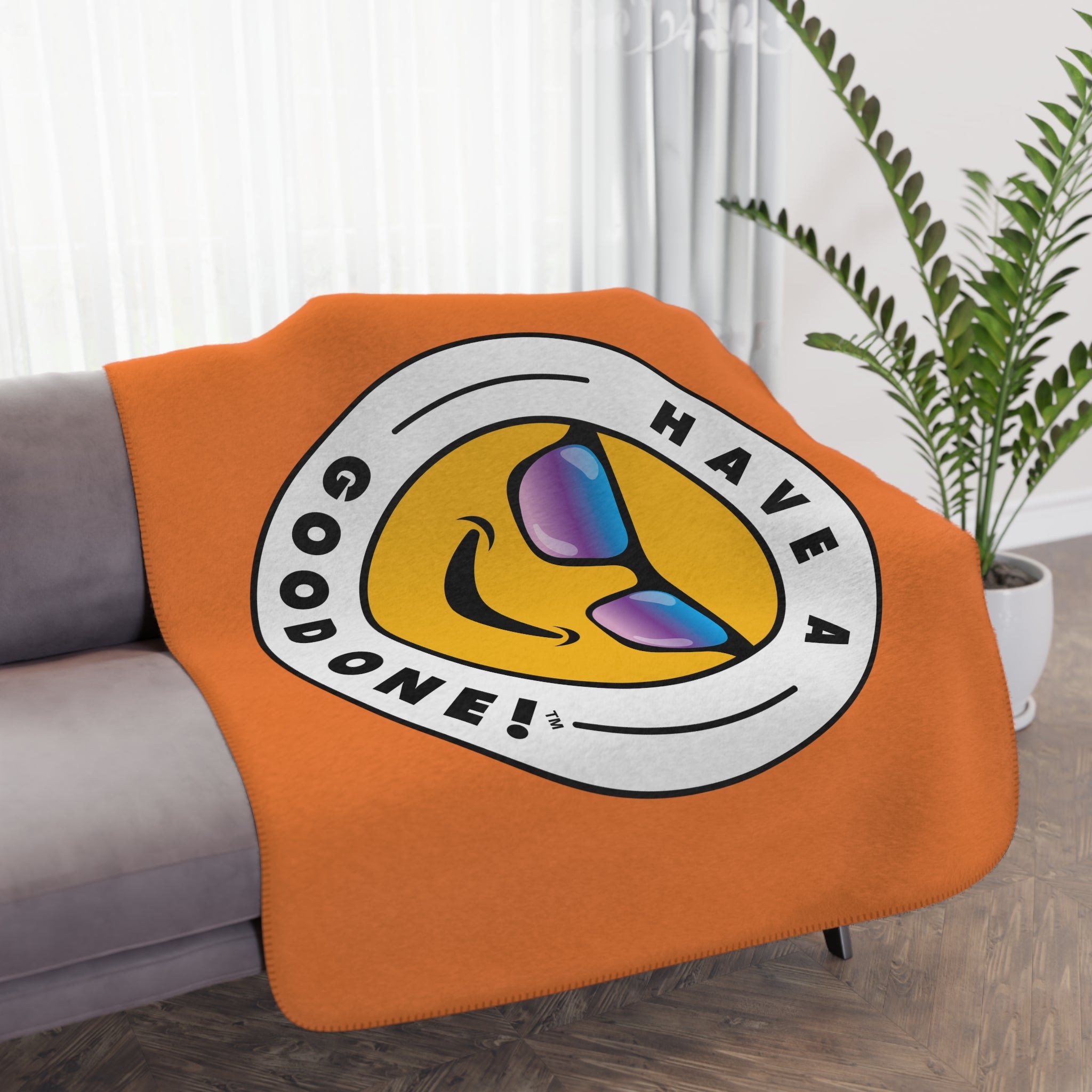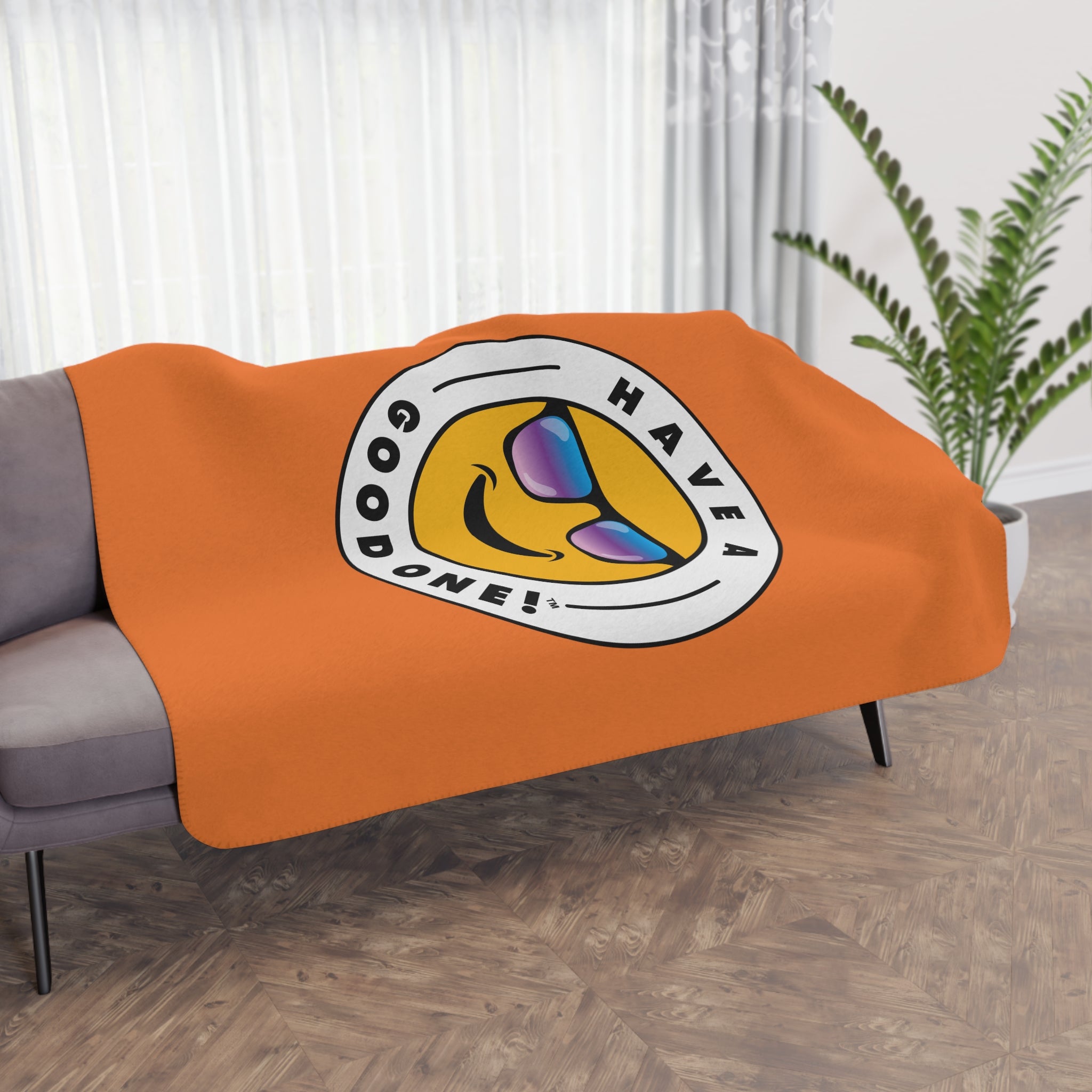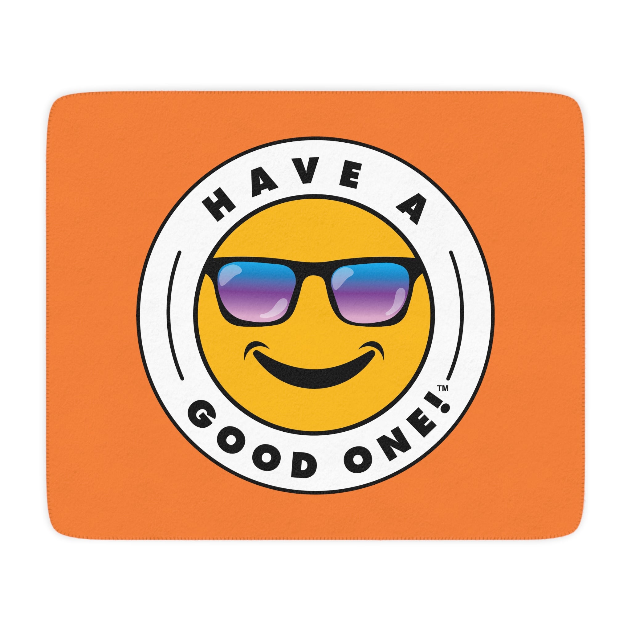 Sherpa Plush Blanket – Orange Color With Blue Purple Green Have A Good One! Logo