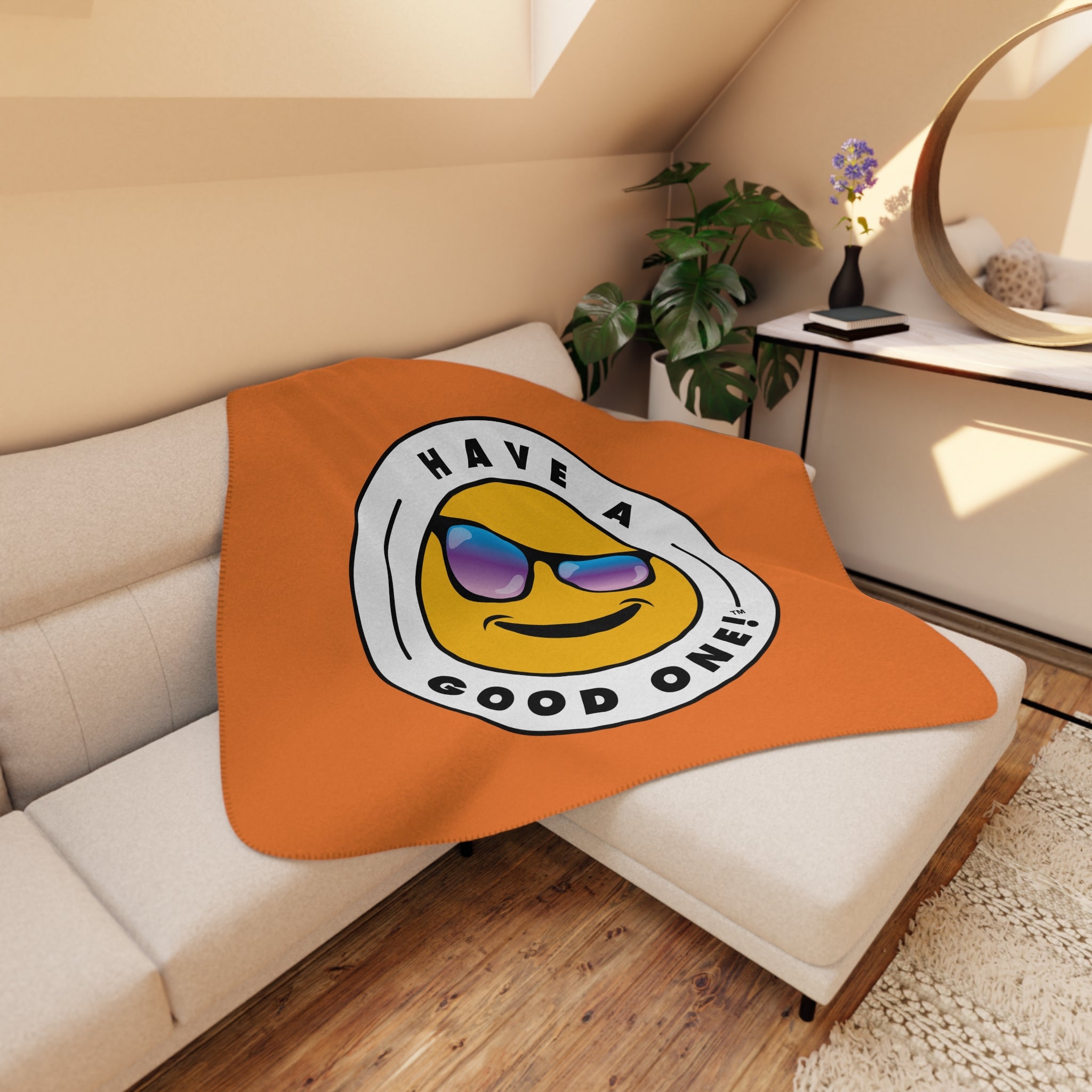 This is such a fun and versatile blanket! You can create a cozy and warm atmosphere at home with this plush sherpa blanket to snuggle up with a loved one, read a book, get comfy watching a movie, read by the fireplace or take a quick power nap. It is soft to touch and perfect for any home. Has rounded corners and decorative stitching with a tan sherpa lining on the back. Blanket is also great for children to play on or curl up watching TV or taking a nap or just use it just by itself to get comfy and warm. These make wonderful gifts for your family and friends. However you decide to use this snuggly blanket you will be sure to Have A Good One!
