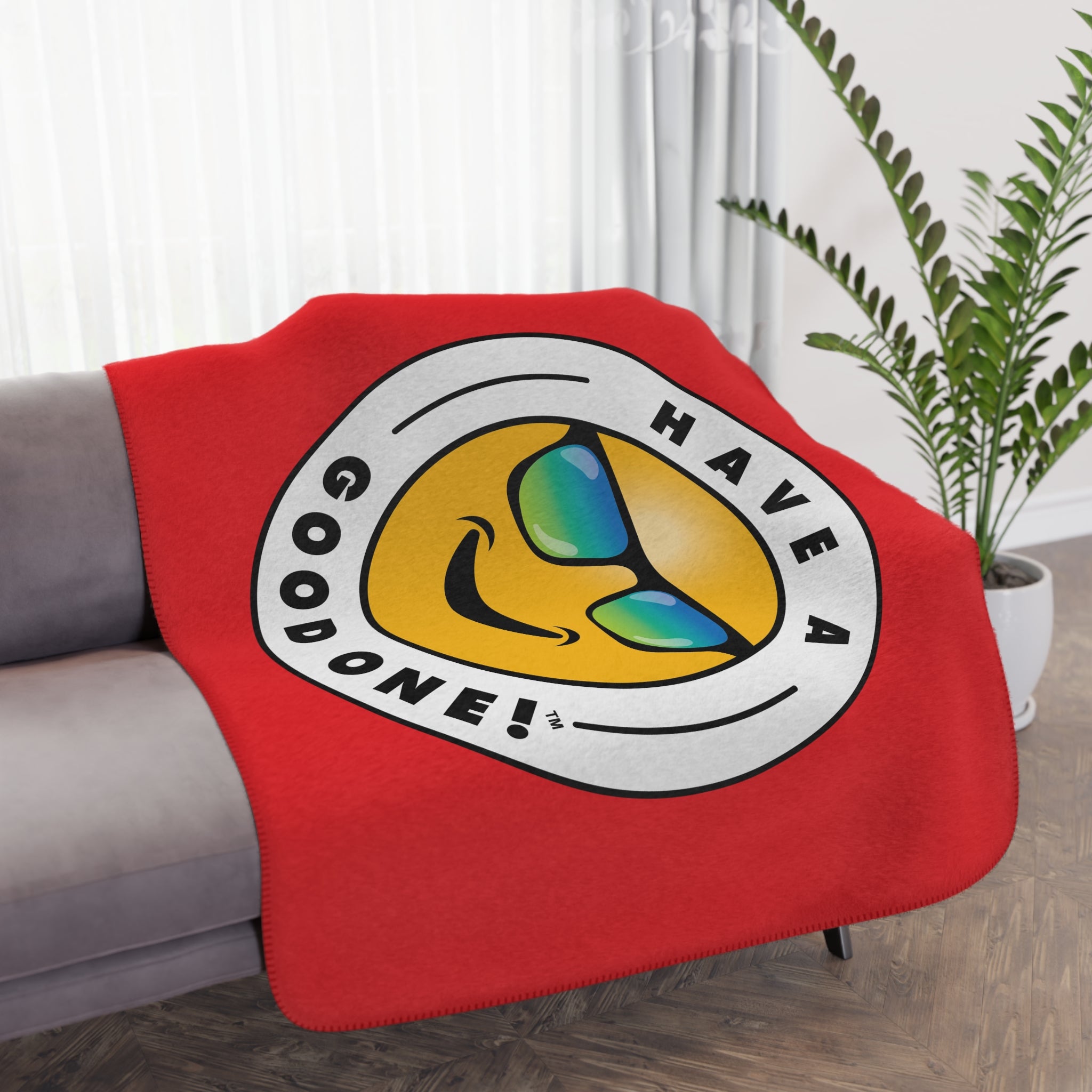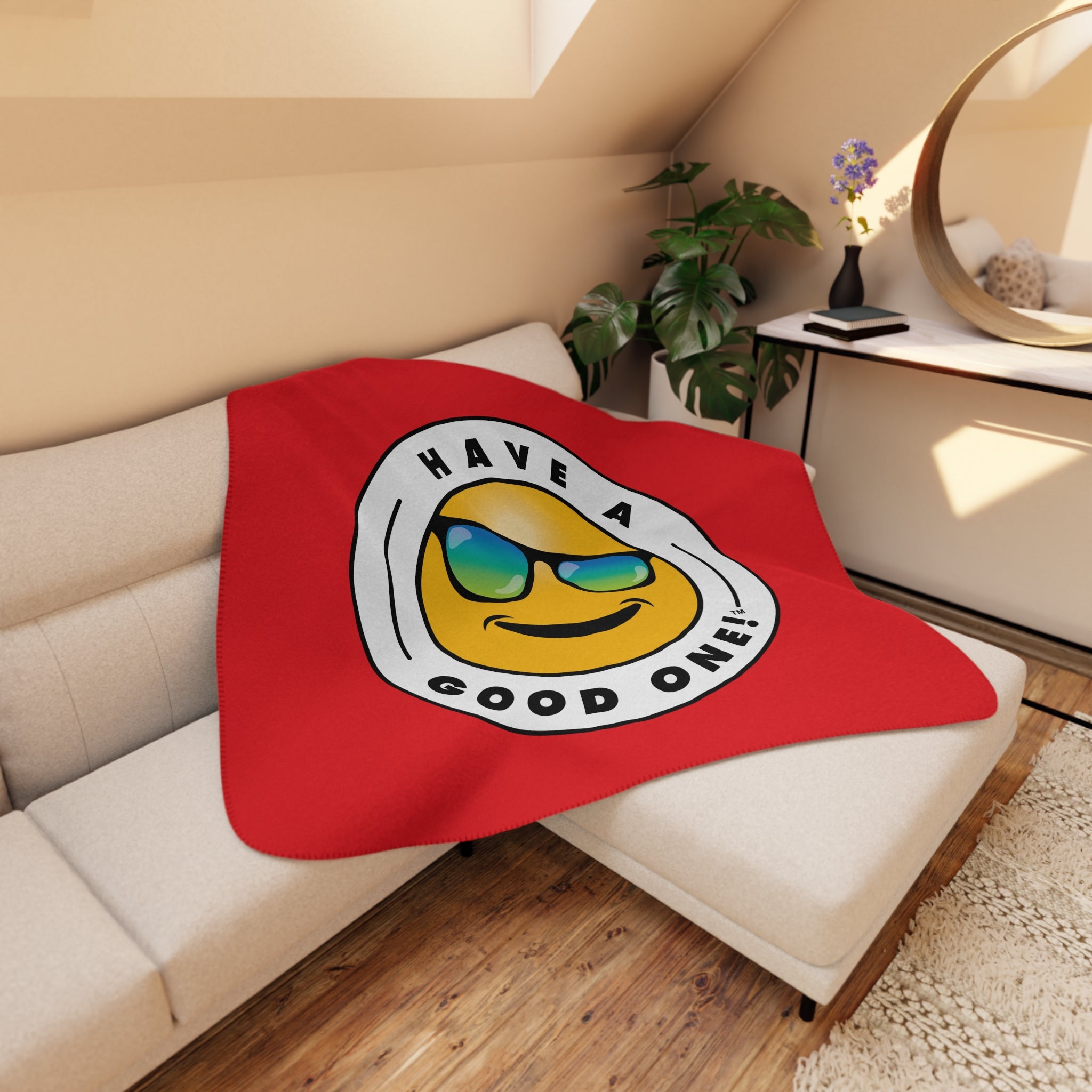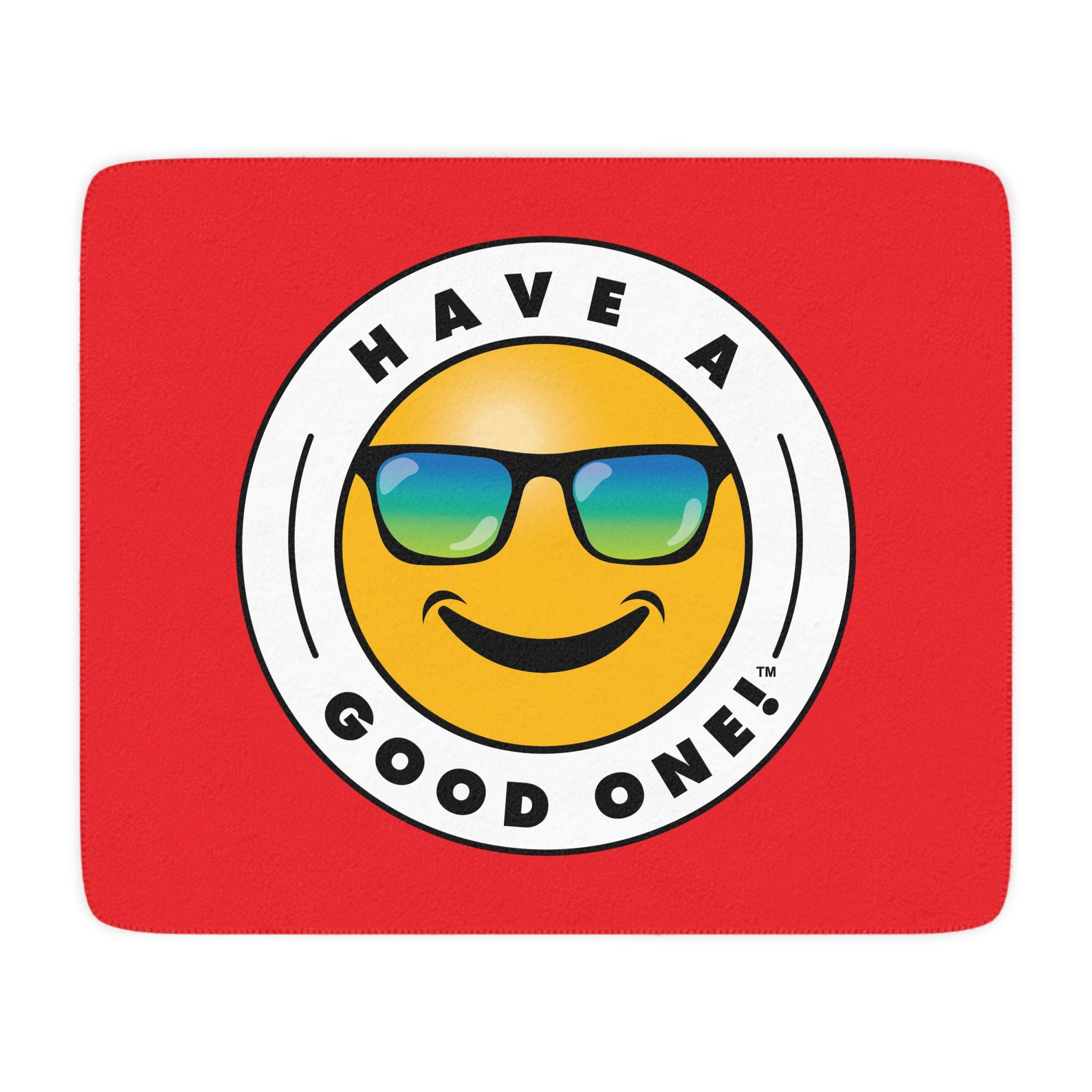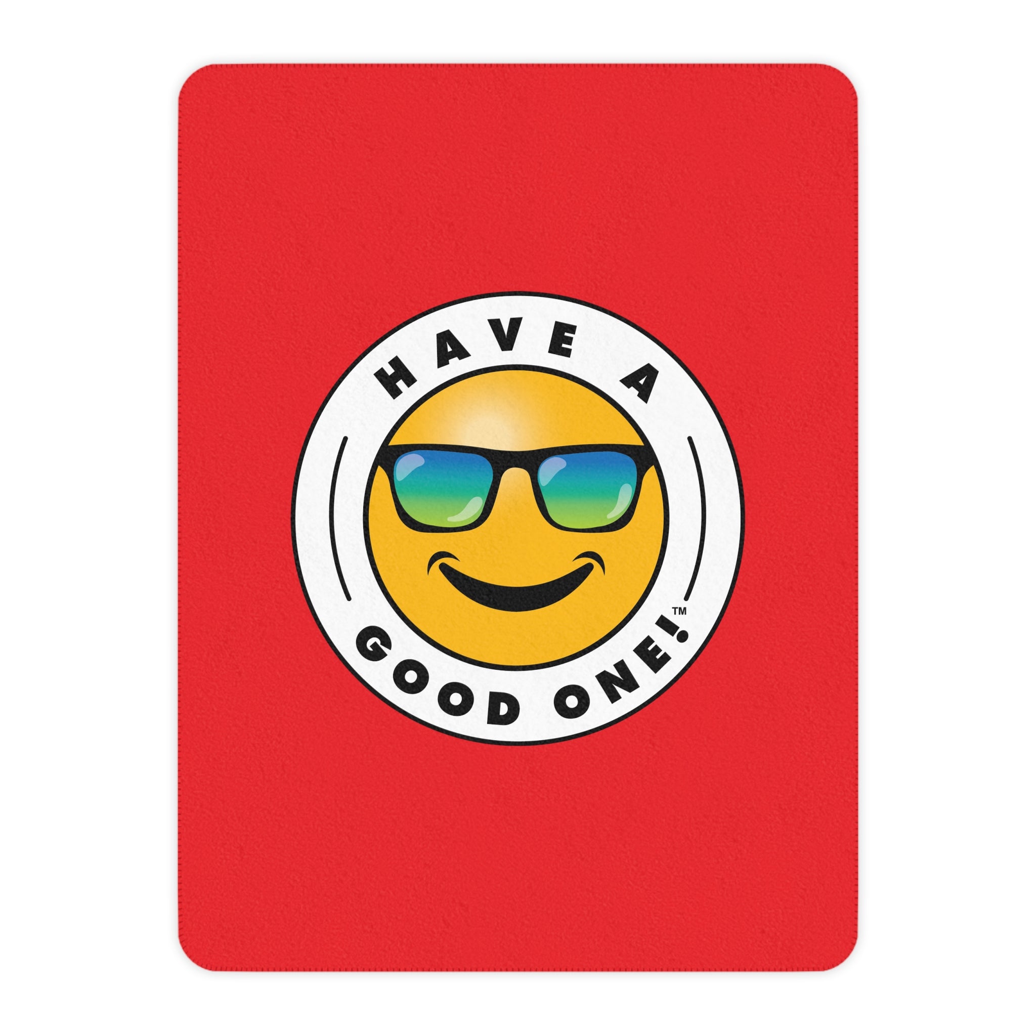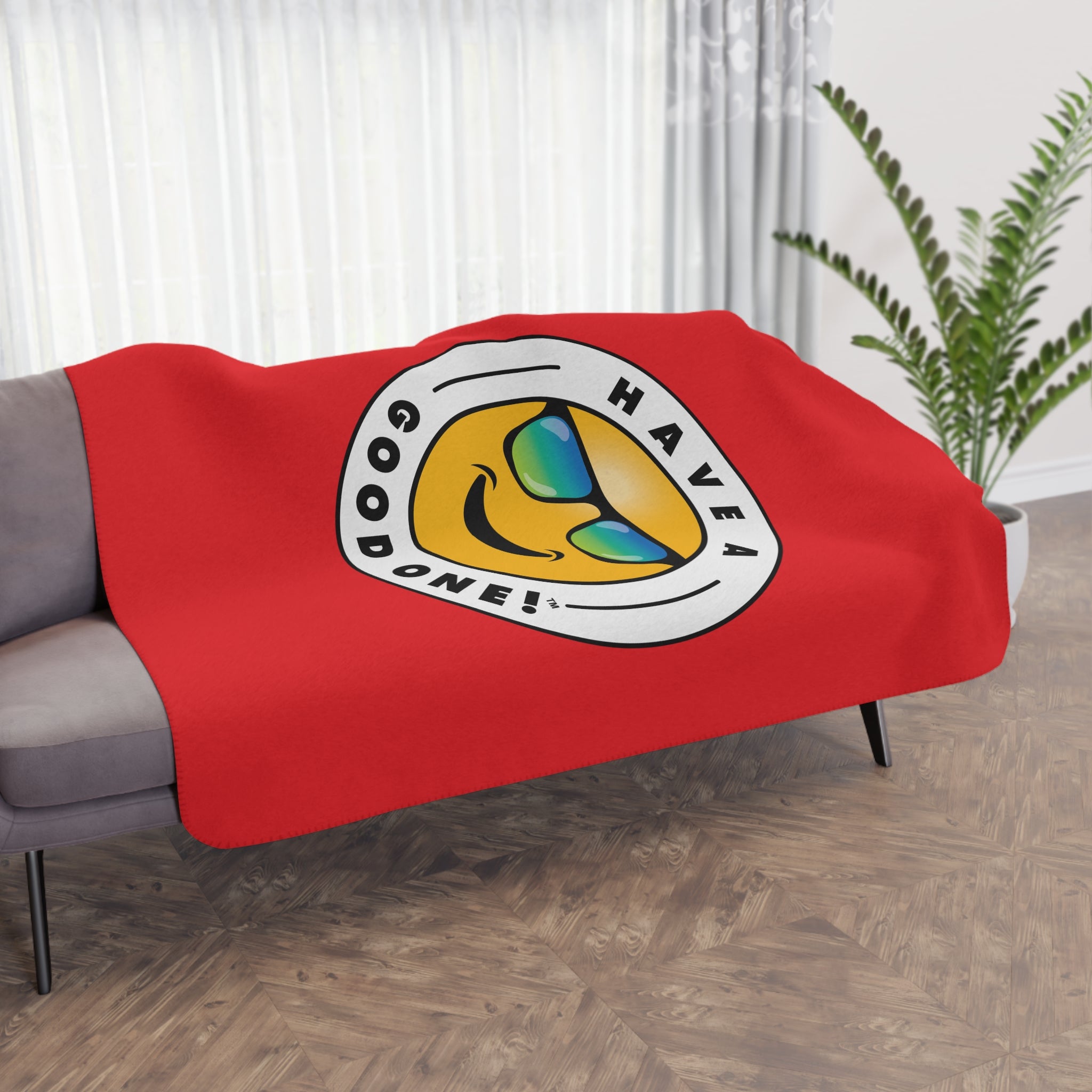 Sherpa Plush Blanket – Red Color With Blue Green Have A Good One! Logo