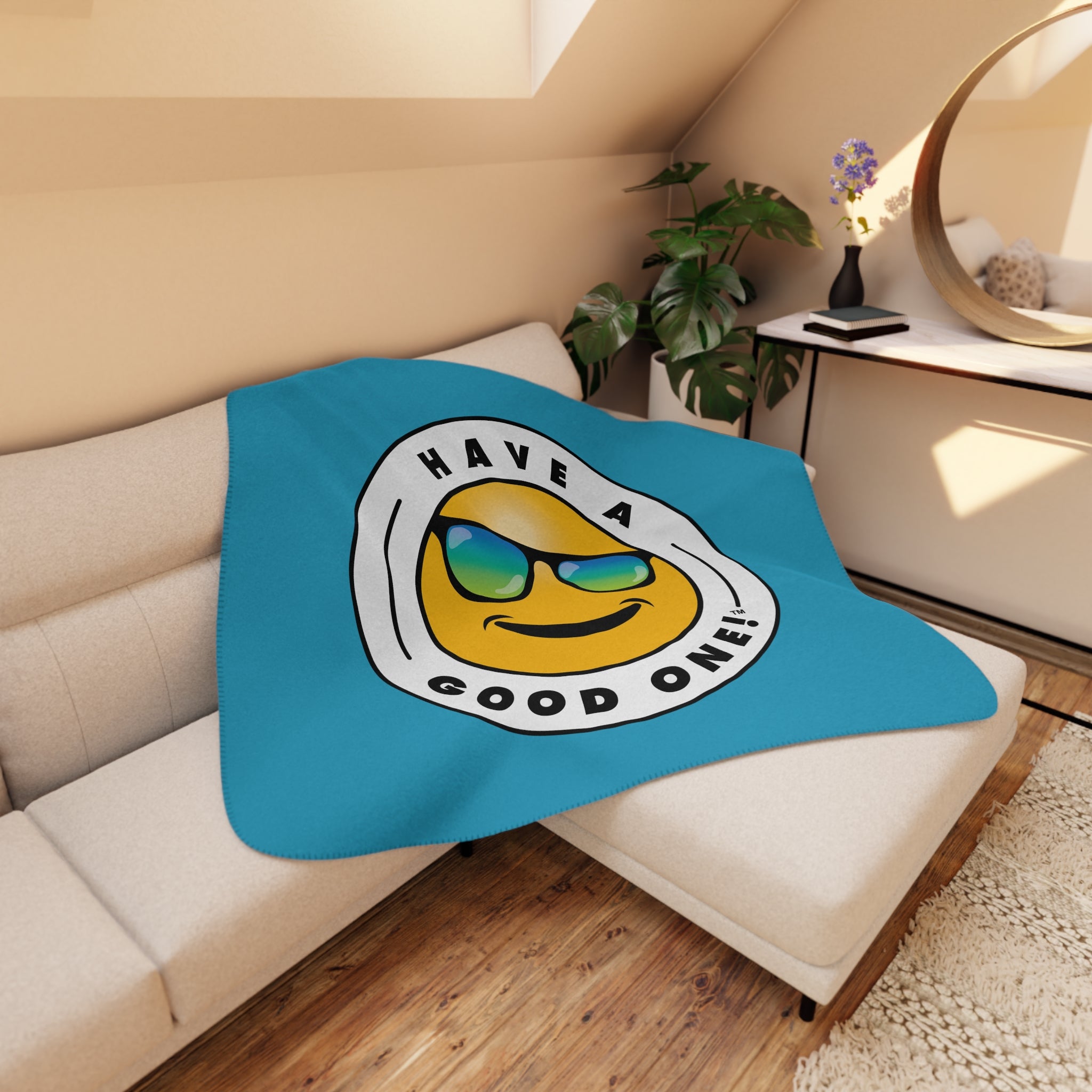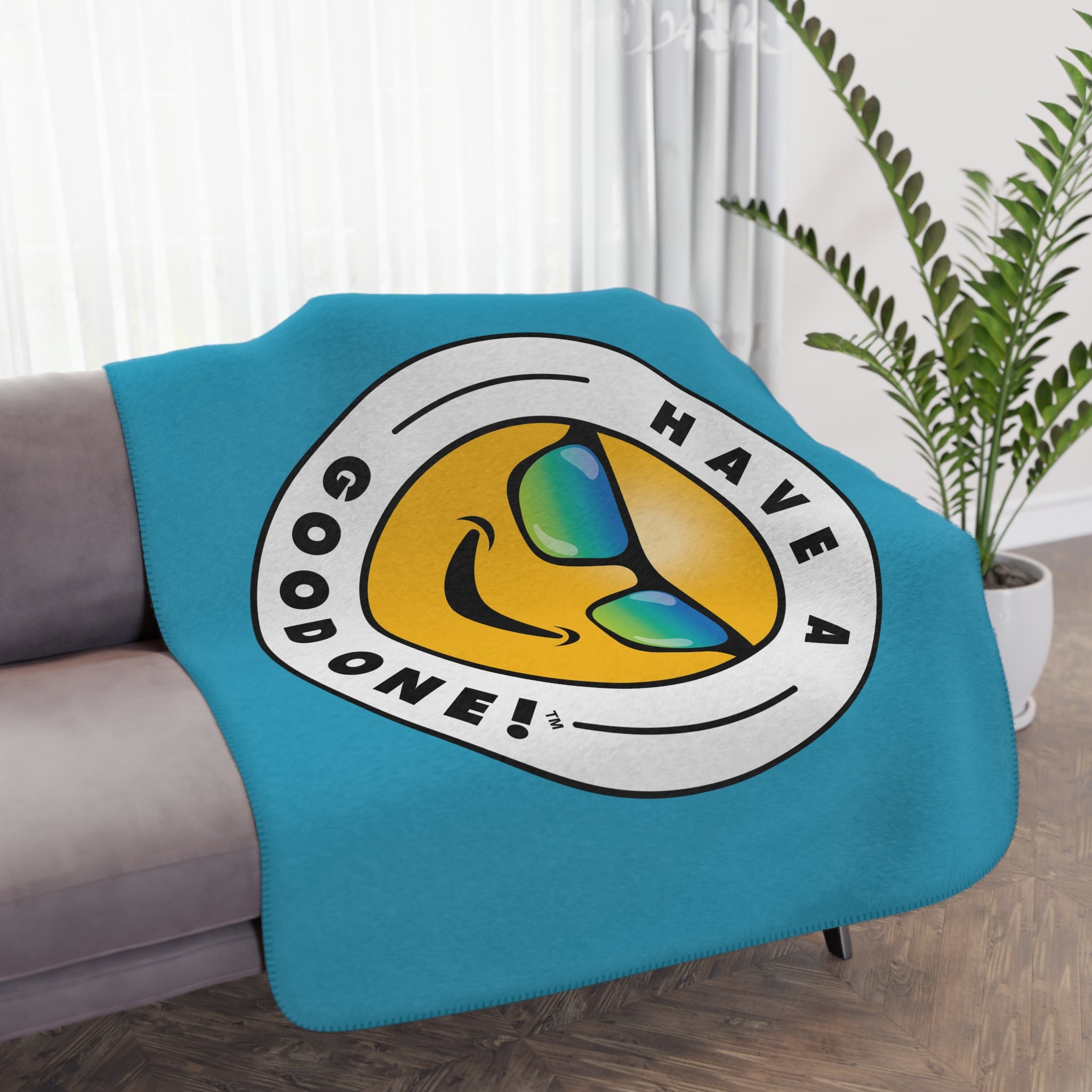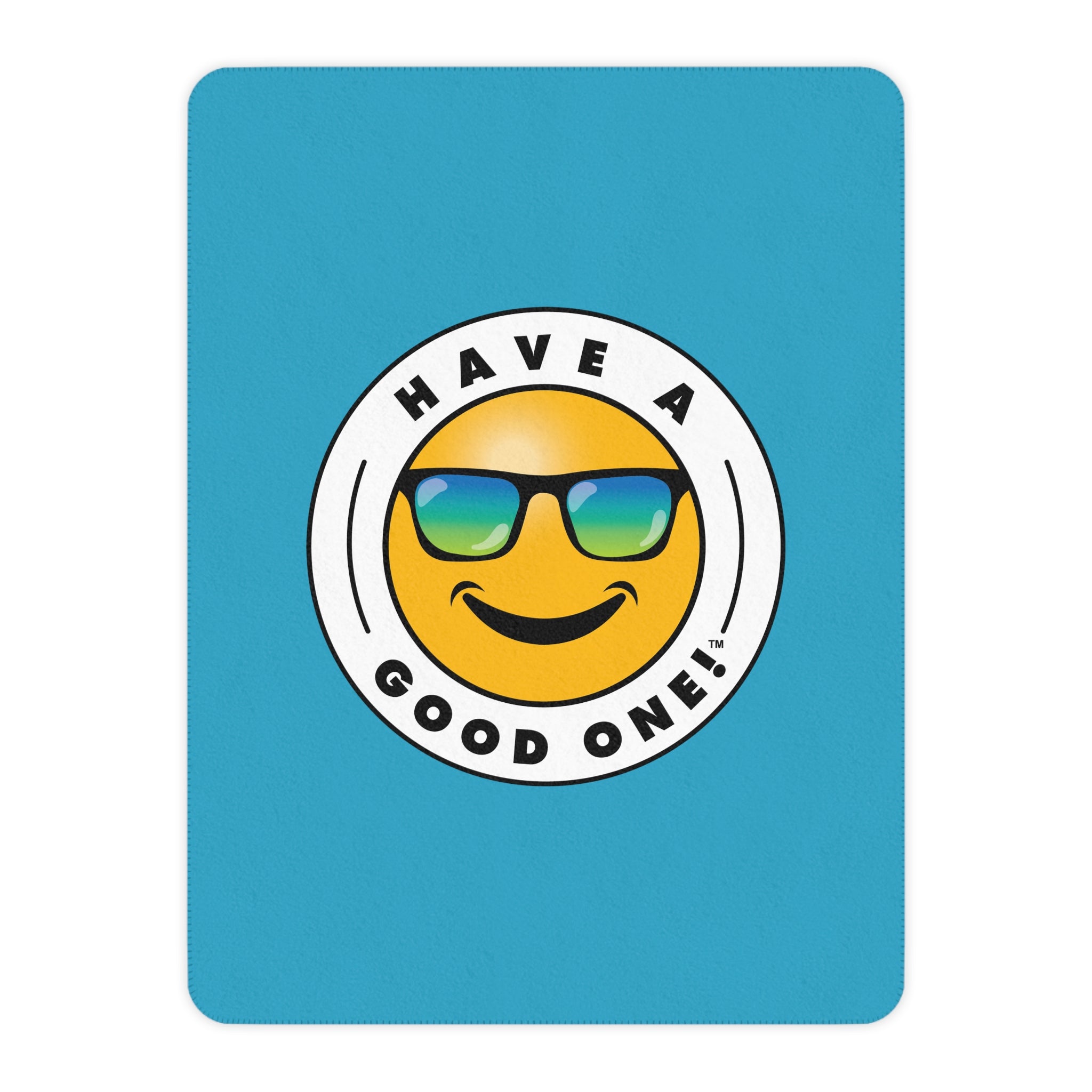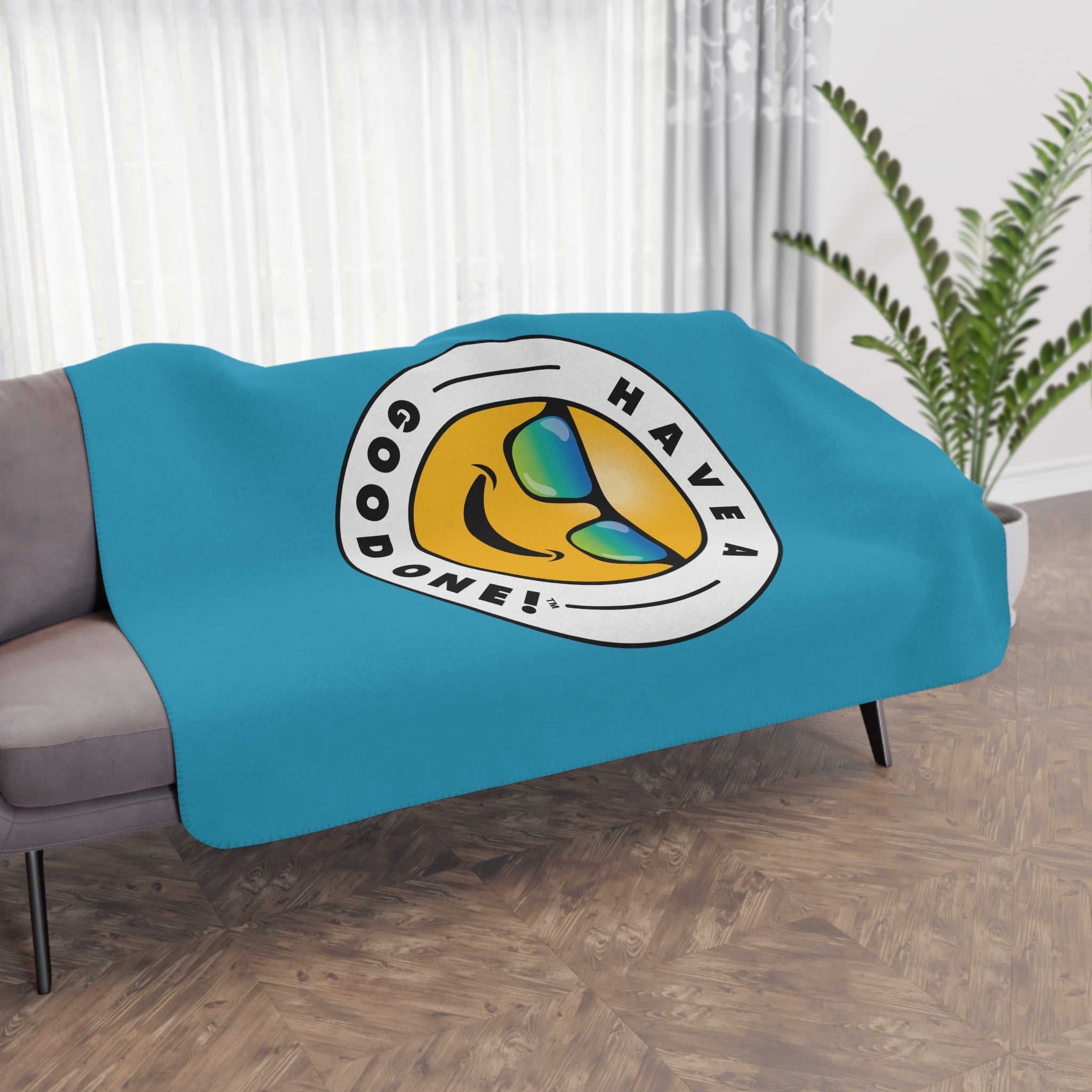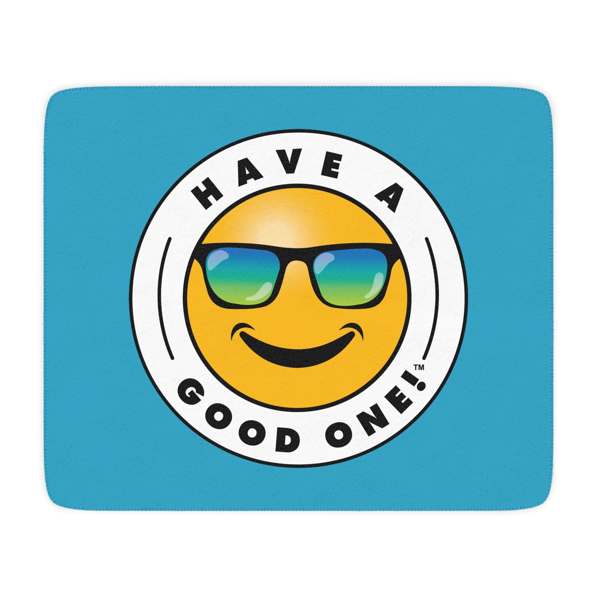 Sherpa Plush Blanket – Turquoise Color With Blue Green Have A Good One! Logo