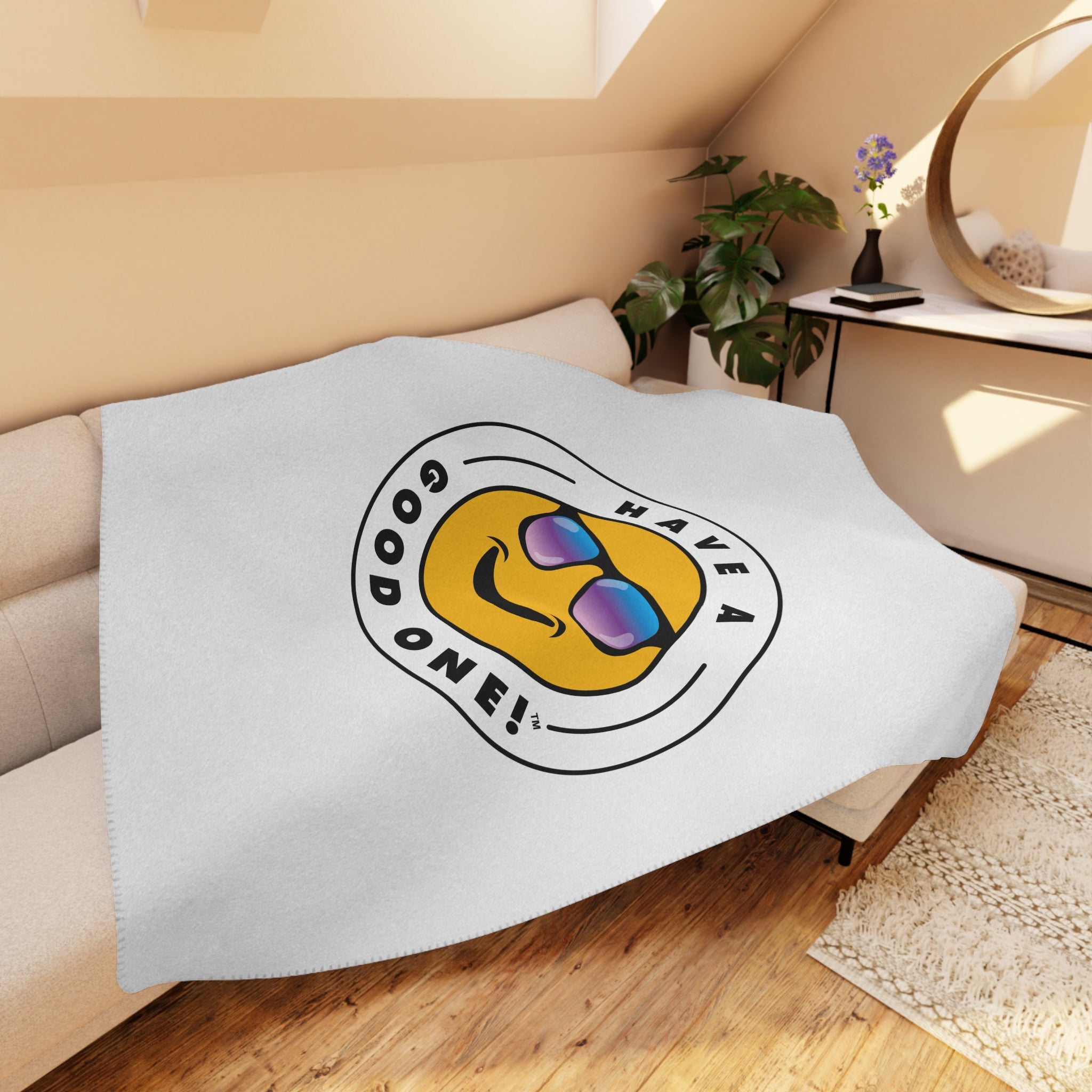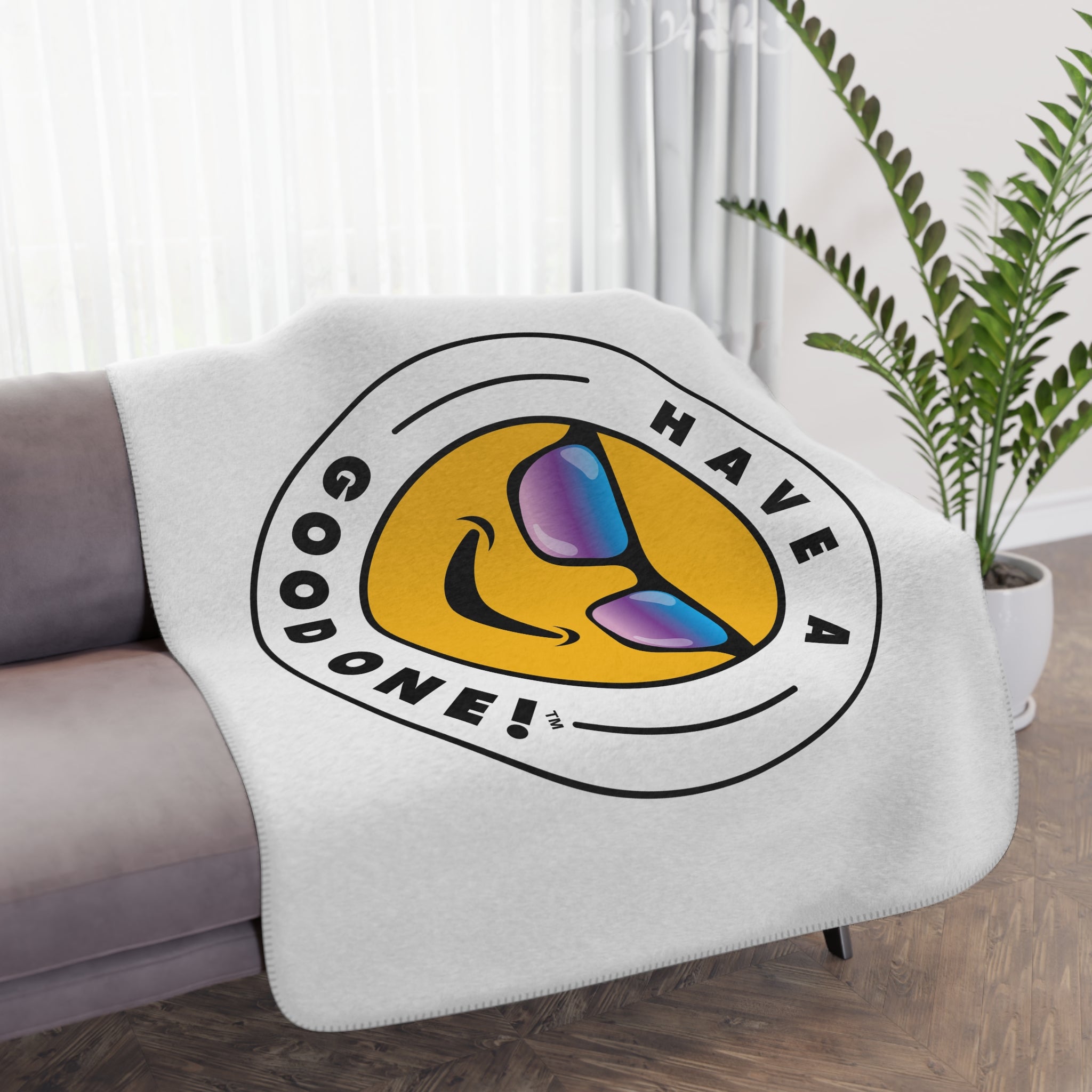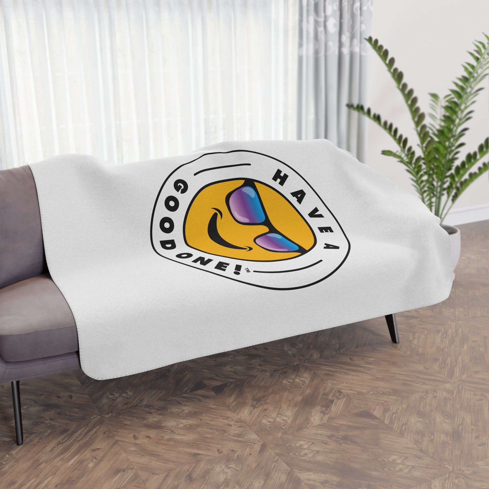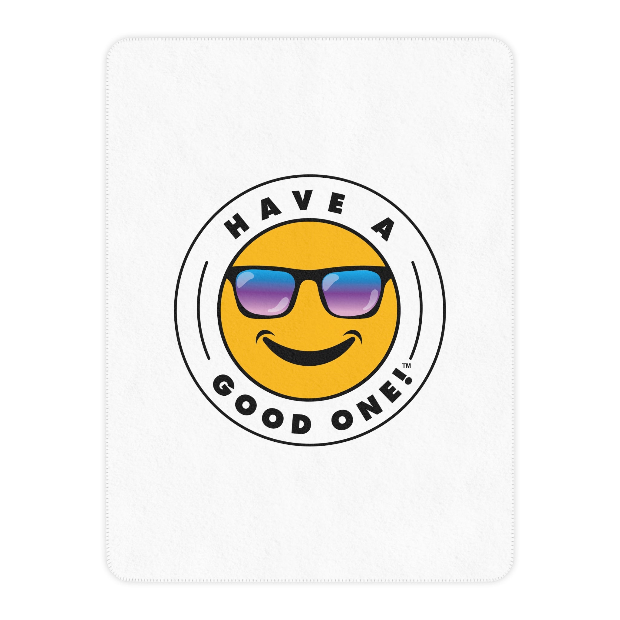 Sherpa Plush Blanket – White Color With Blue Purple Green Have A Good One! Logo