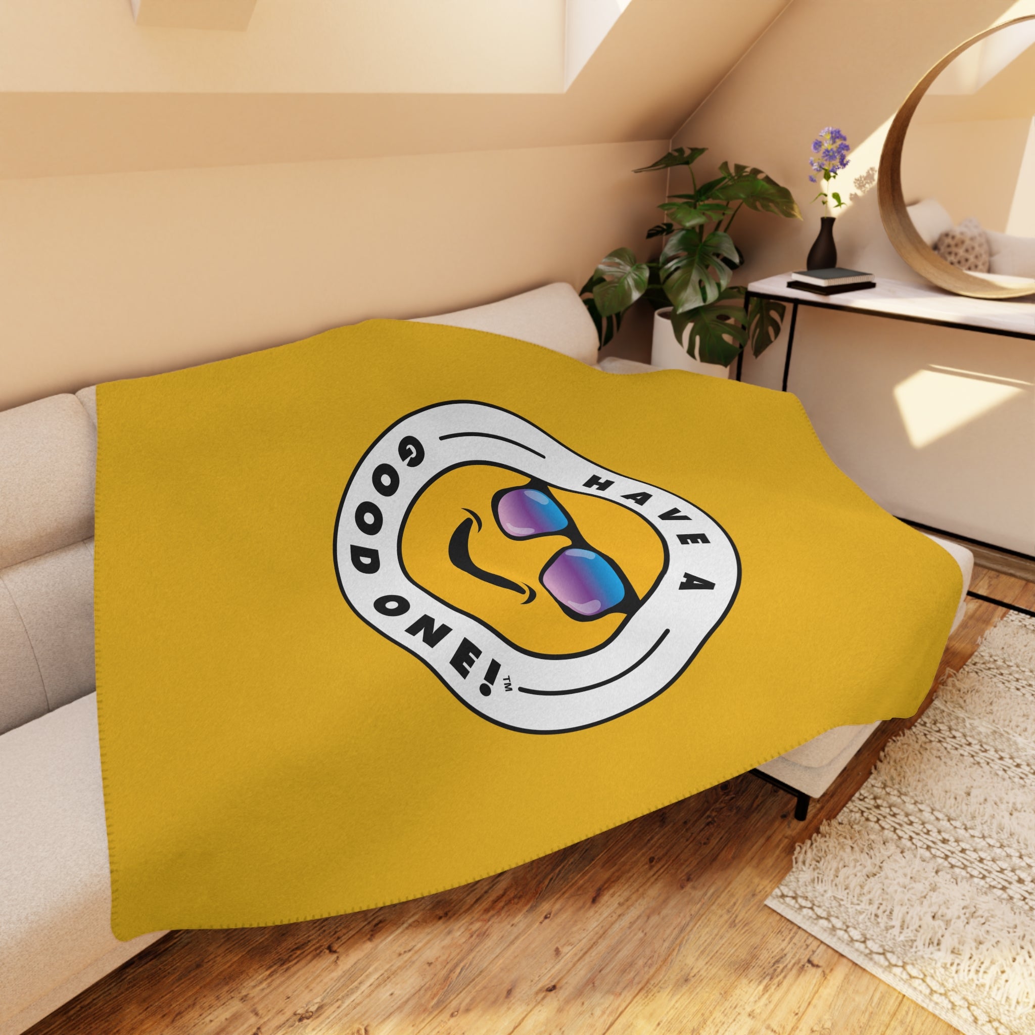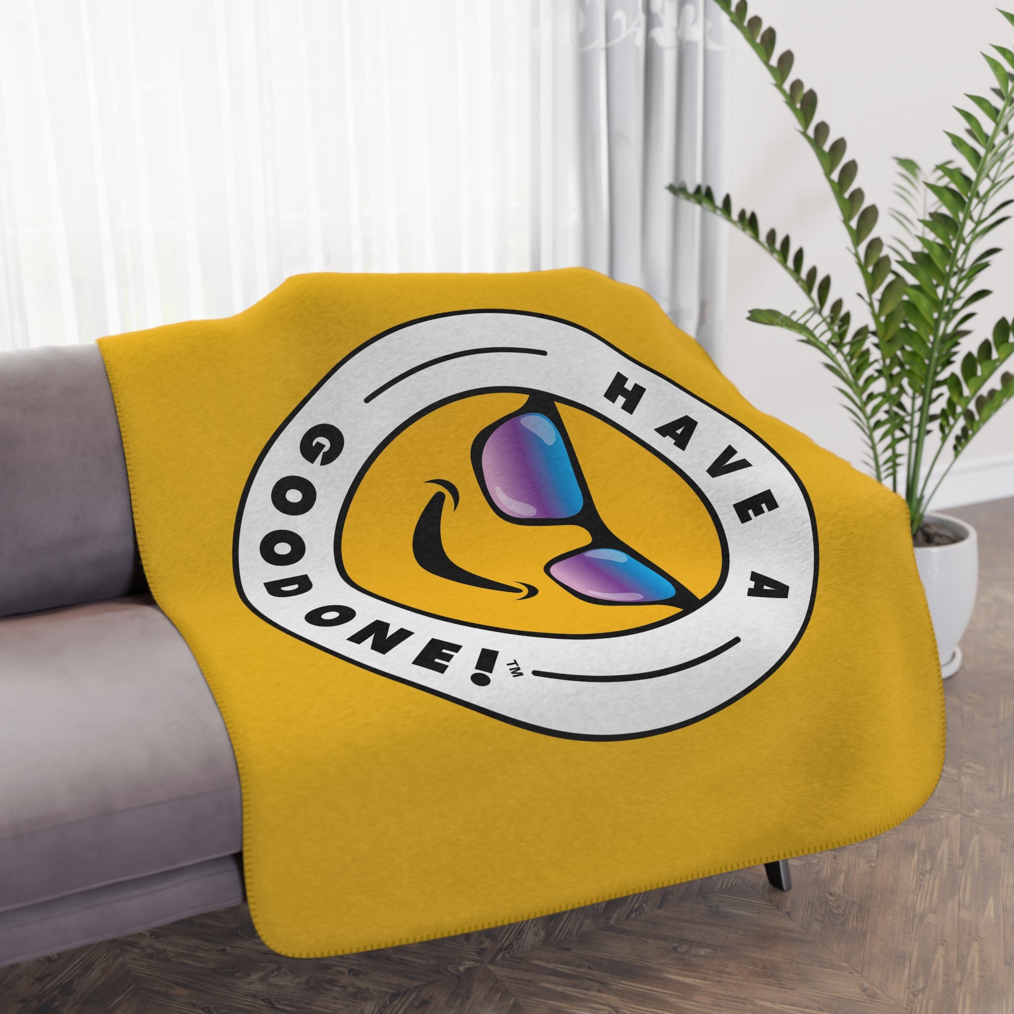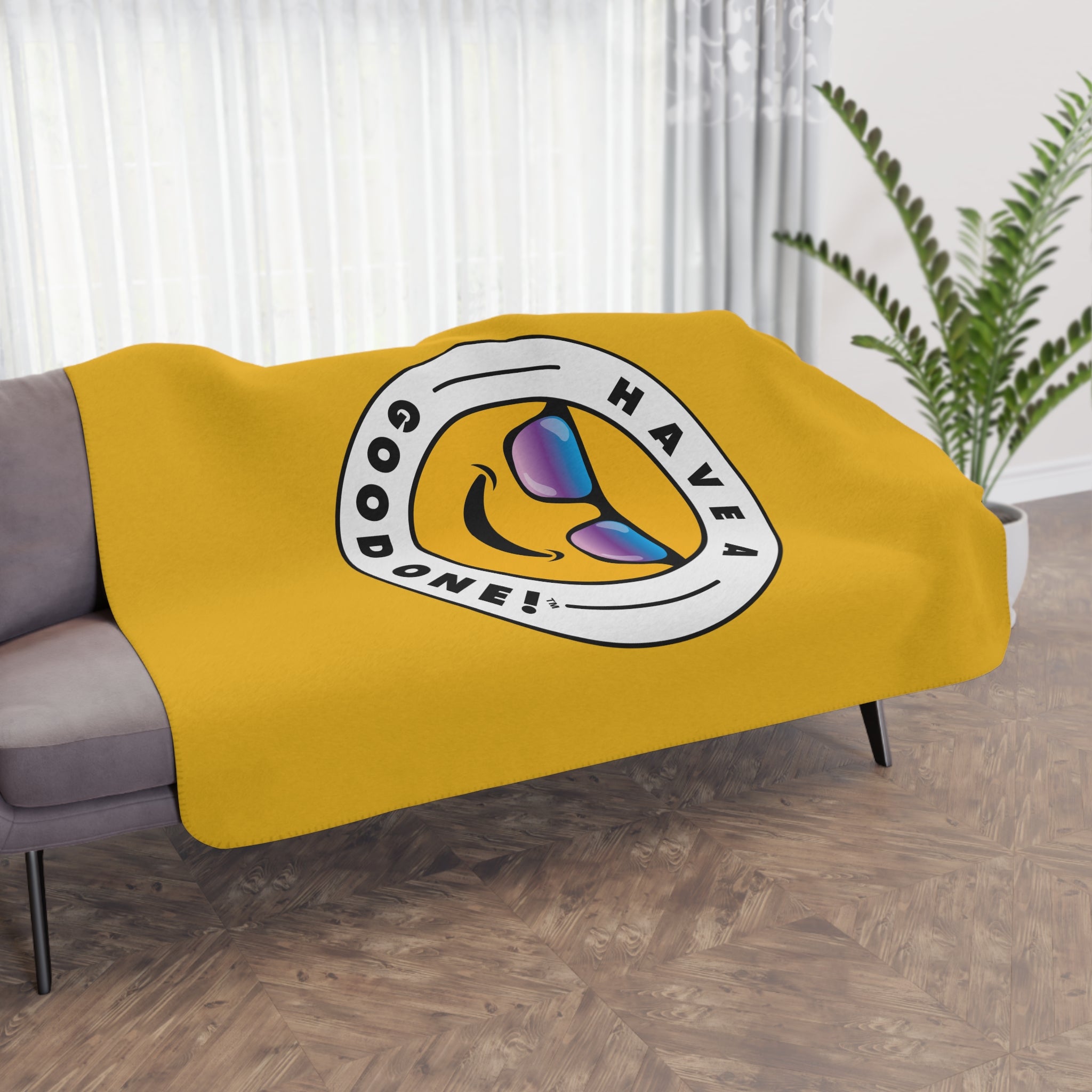 Sherpa Plush Blanket – Yellow Color With Blue Purple Green Have A Good One! Logo