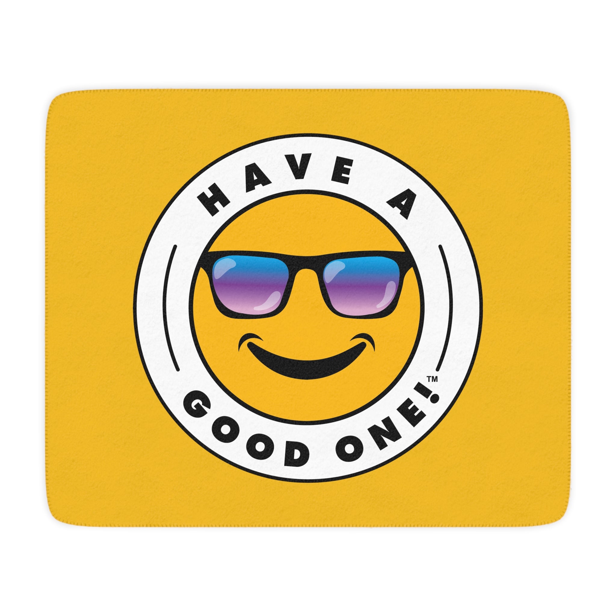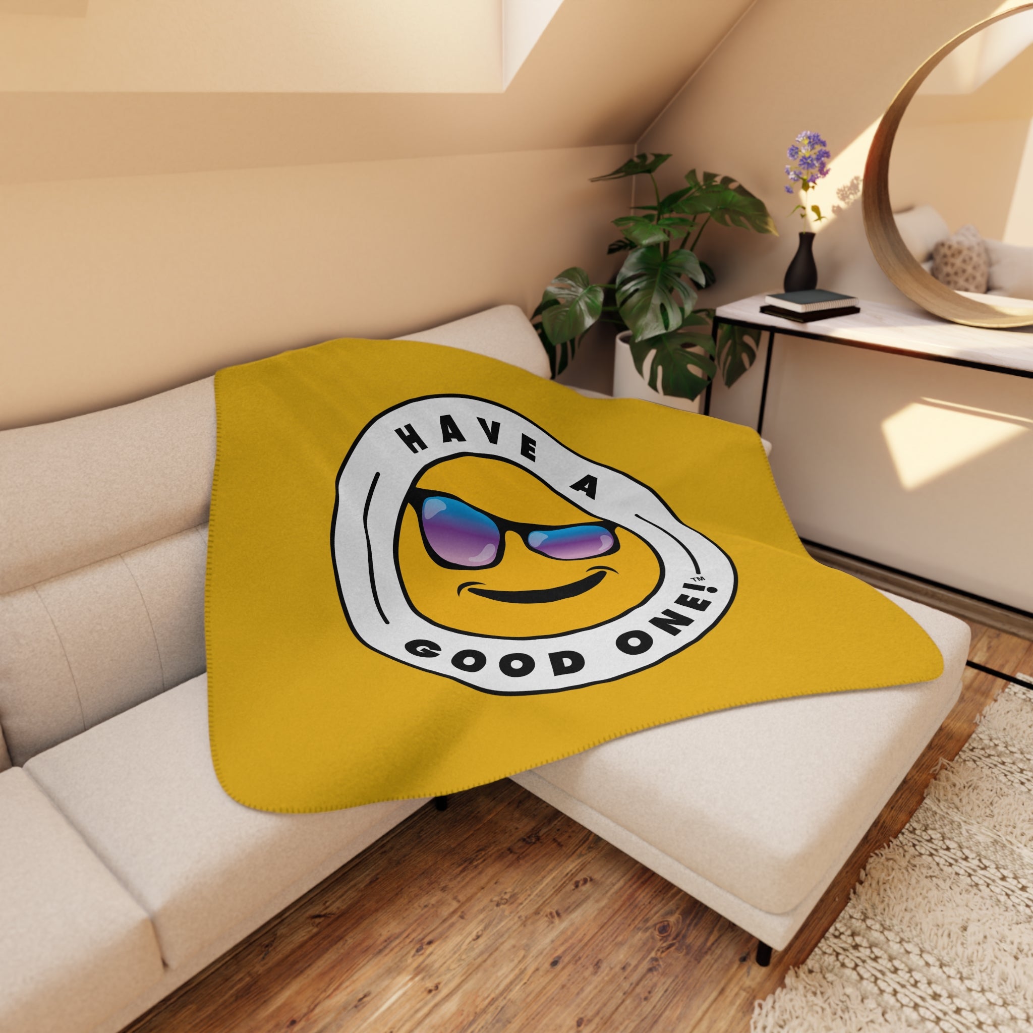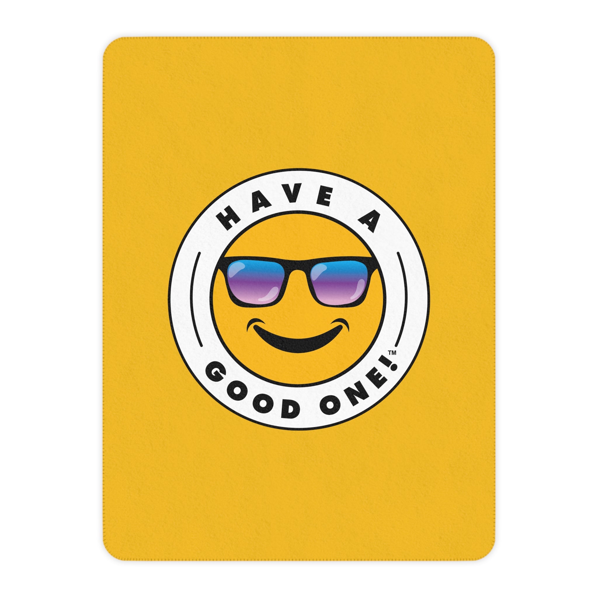 Sherpa Plush Blanket – Yellow Color With Blue Purple Green Have A Good One! Logo