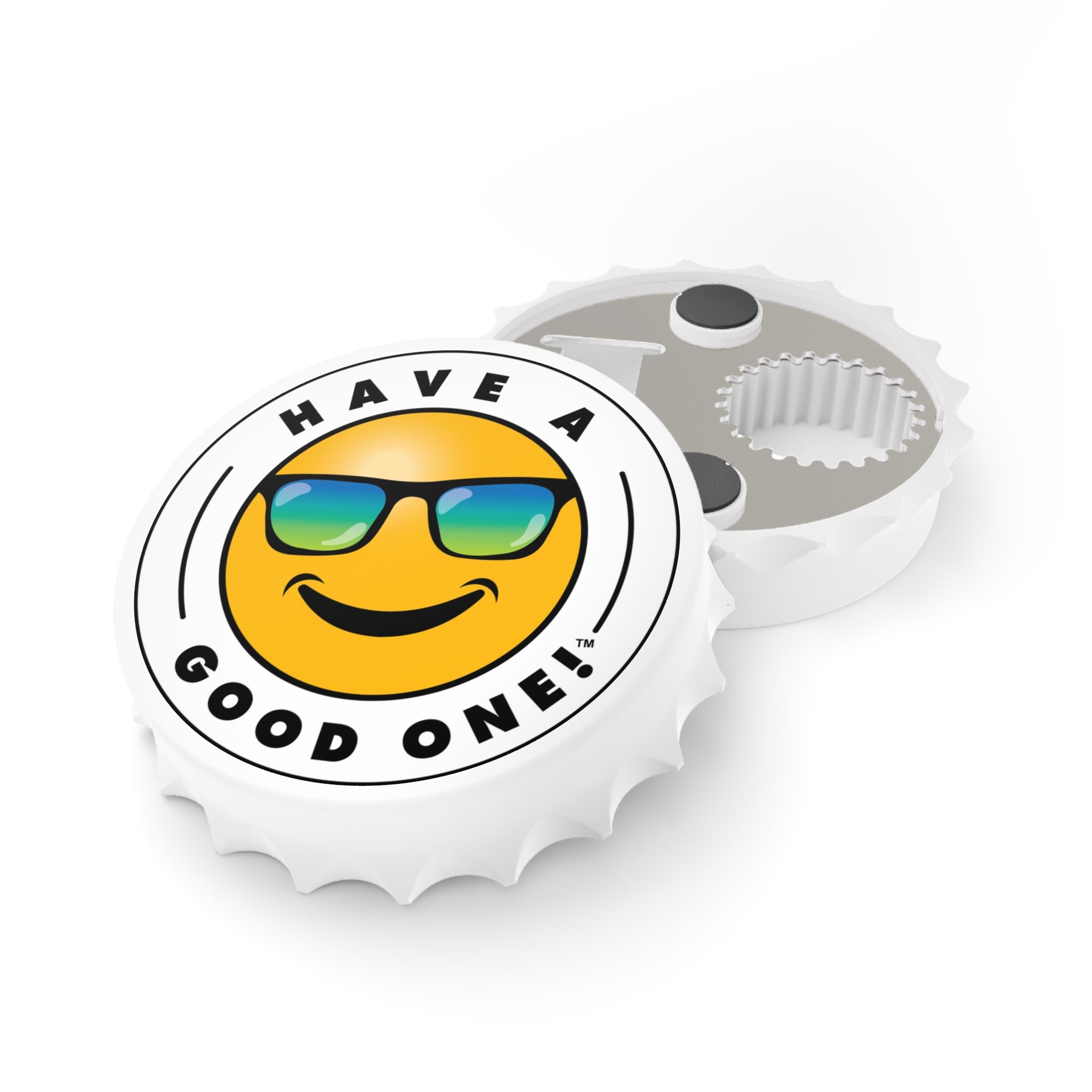 Bottle openers are designed to make our lives easier, and that’s just what this custom opener does - but with more fun and style! Equipped with a handy magnetic back, a unique bottle cap shape, and two different mechanisms for opening bottles, this has it all. You can easily pack it for picnics, parties, the pool, the beach or just about anywhere. When not in use you can store it on the refrigerator since it has a magnetic back. This opener is unique and is sure to add another dimension of fun each time you use it so crack open a cold beverage and Have A Good One! Cheers!