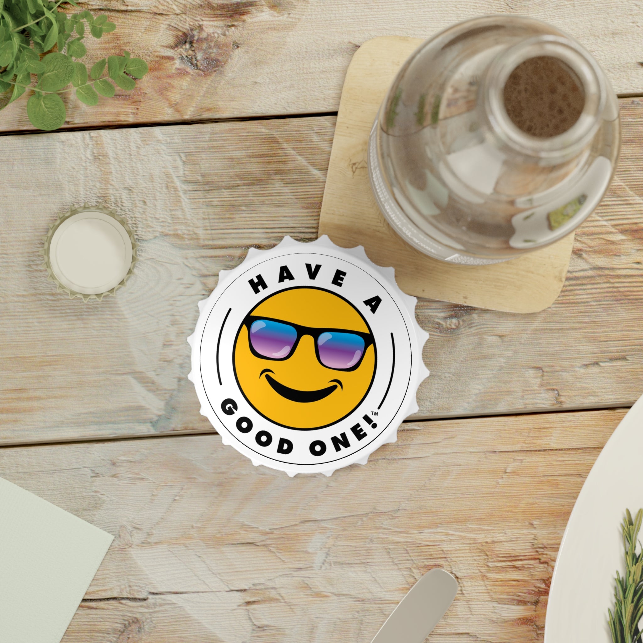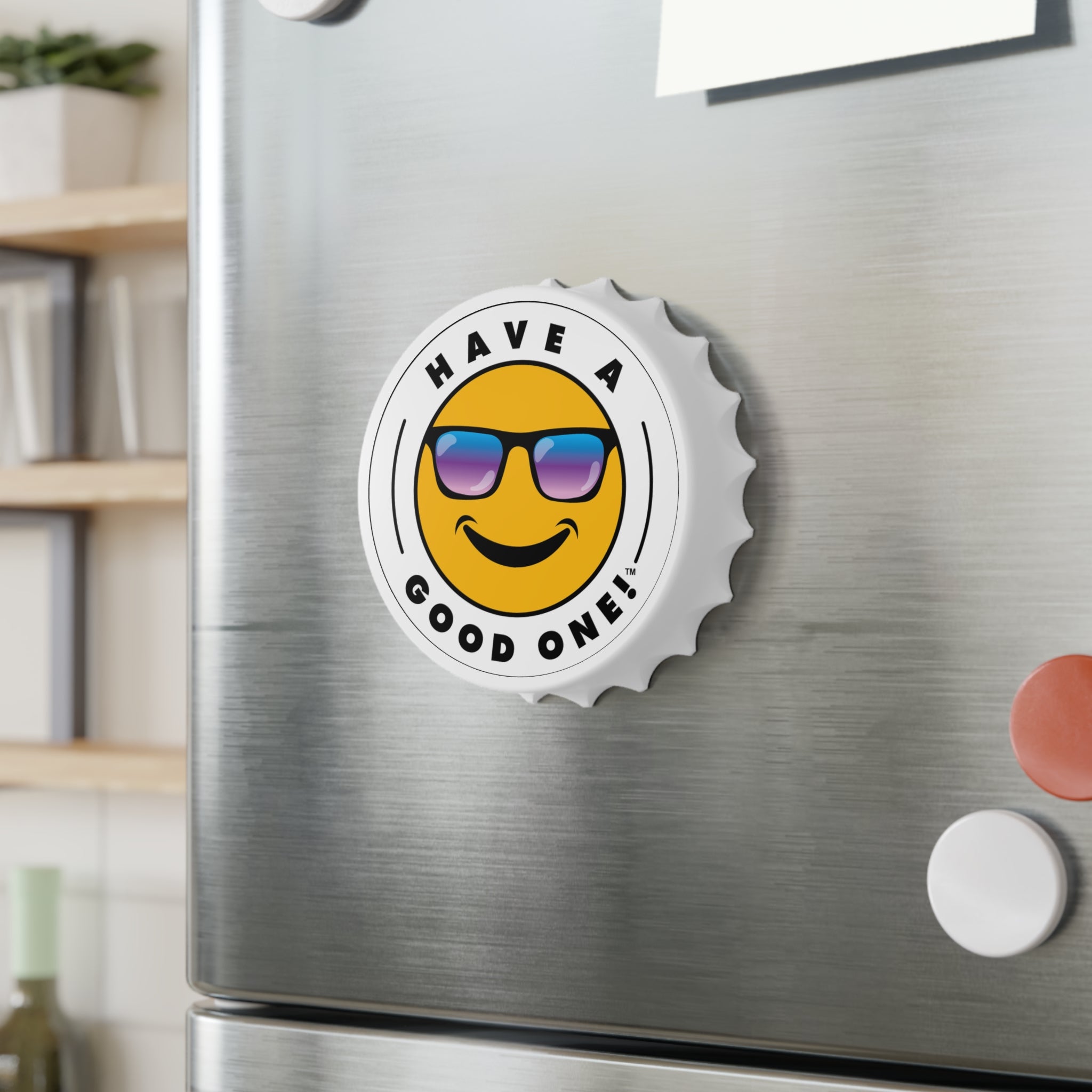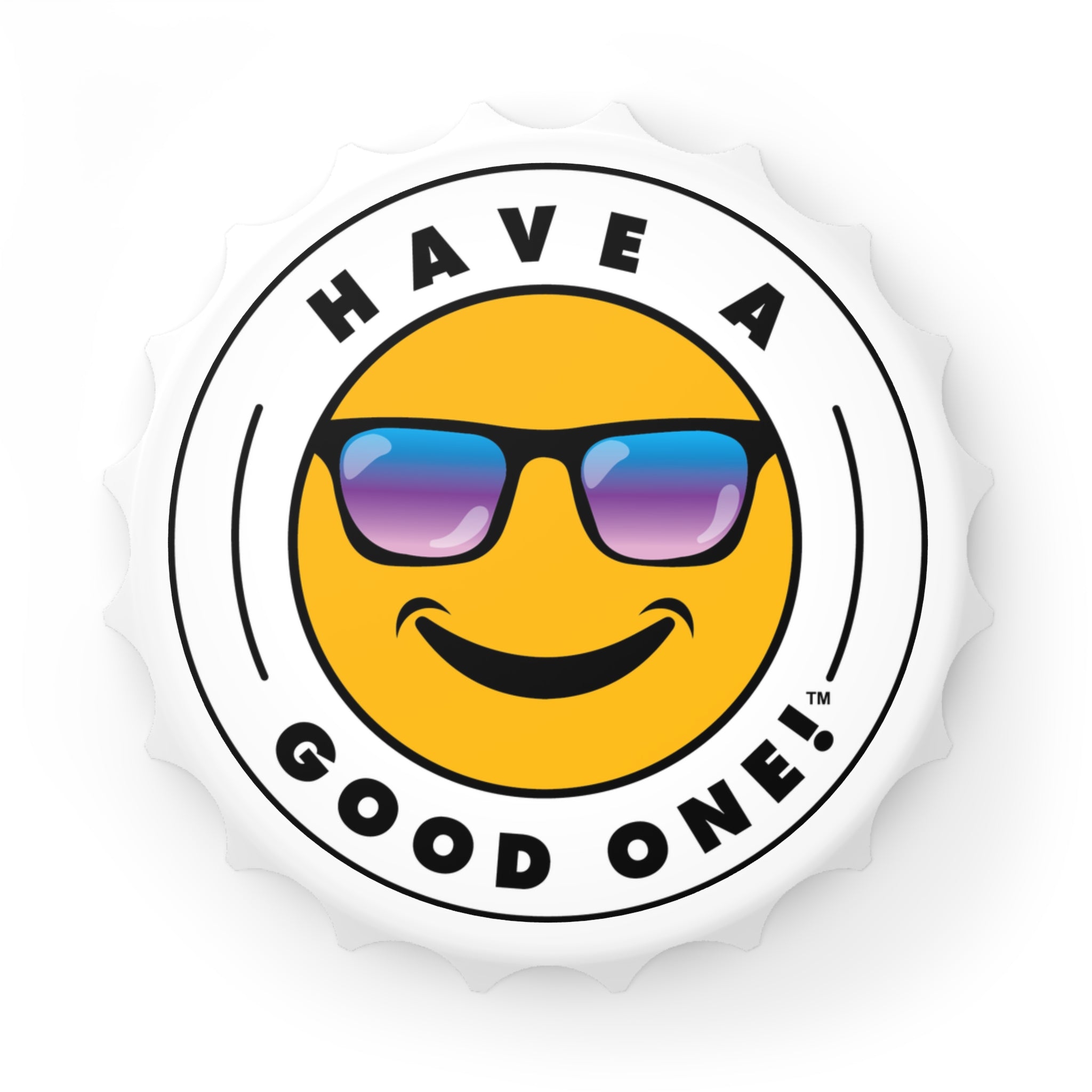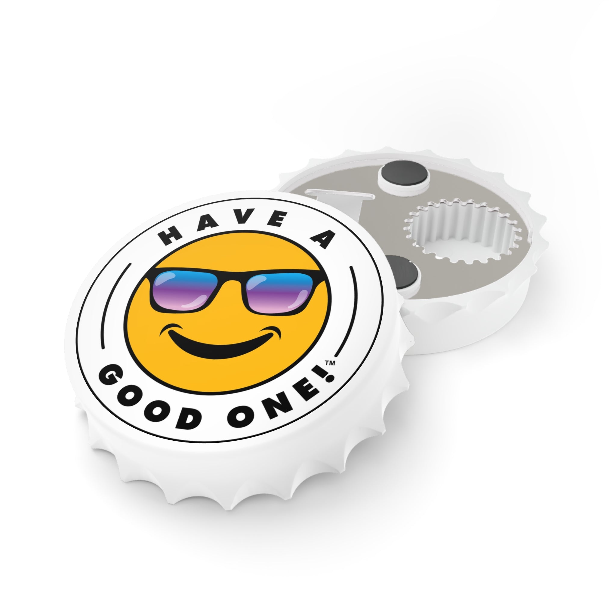 Bottle openers are designed to make our lives easier, and that’s just what this custom opener does - but with more fun and style! Equipped with a handy magnetic back, a unique bottle cap shape, and two different mechanisms for opening bottles, this has it all. You can easily pack it for picnics, parties, the pool, the beach or just about anywhere. When not in use you can store it on the refrigerator since it has a magnetic back. This opener is unique and is sure to add another dimension of fun each time you use it so crack open a cold beverage and Have A Good One! Cheers!