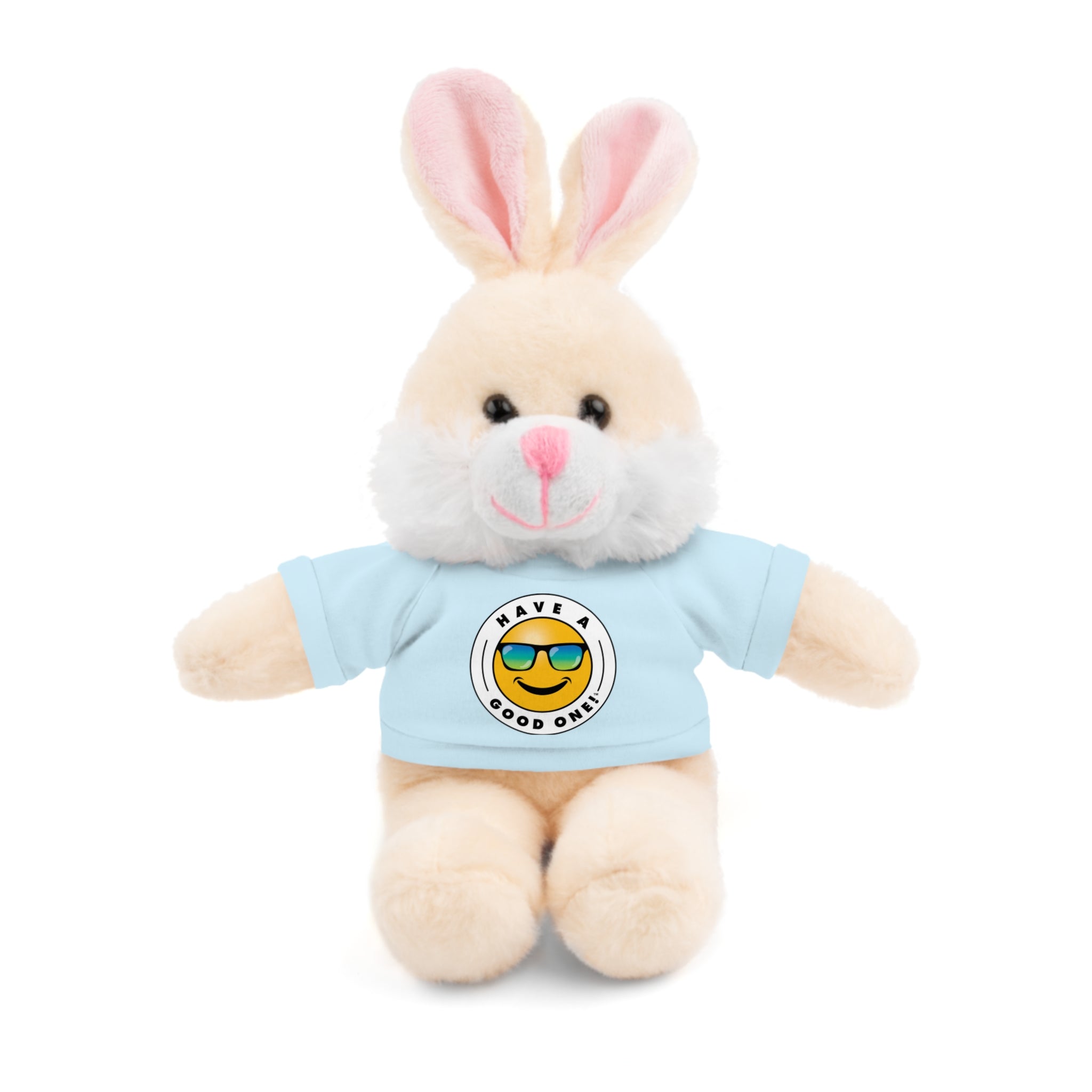 Designed to put ear-to-ear smiles on any child! These stuffed animals come with a playful attitude and cheerful tees. Each plushie is 8" tall and features polyester and plastic pellet stuffing. The tees are 100% cotton. Ideal for children 3 and older but perfect for all ages. They are cuddly and fun. They also make great gifts. You can't help but smile looking at these adorable stuffed animals. Get one today and Have A Good One!