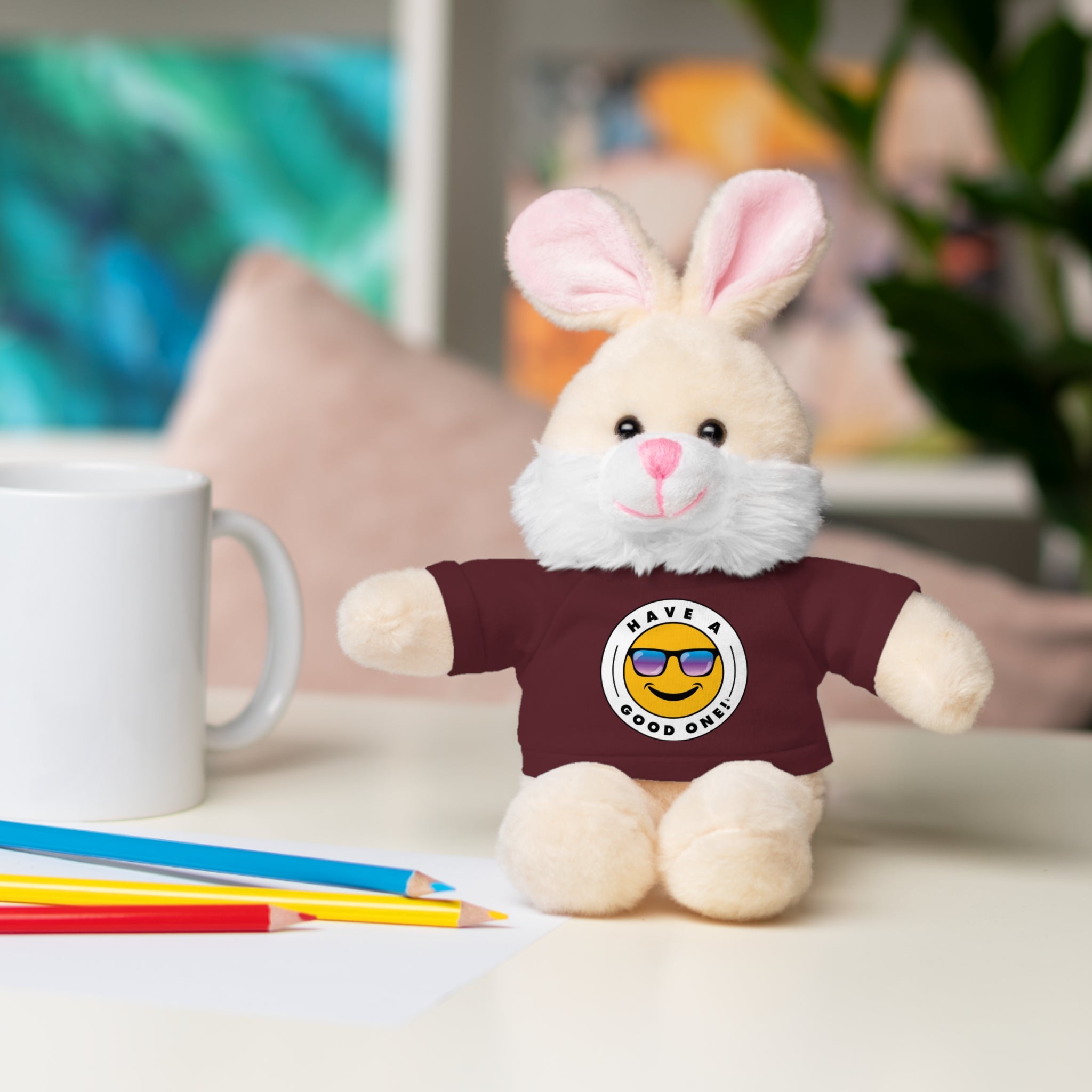 Designed to put ear-to-ear smiles on any child! These stuffed animals come with a playful attitude and cheerful tees. Each plushie is 8" tall and features polyester and plastic pellet stuffing. The tees are 100% cotton. Ideal for children 3 and older but perfect for all ages. They are cuddly and fun. They also make great gifts. You can't help but smile looking at these adorable stuffed animals. Get one today and Have A Good One!