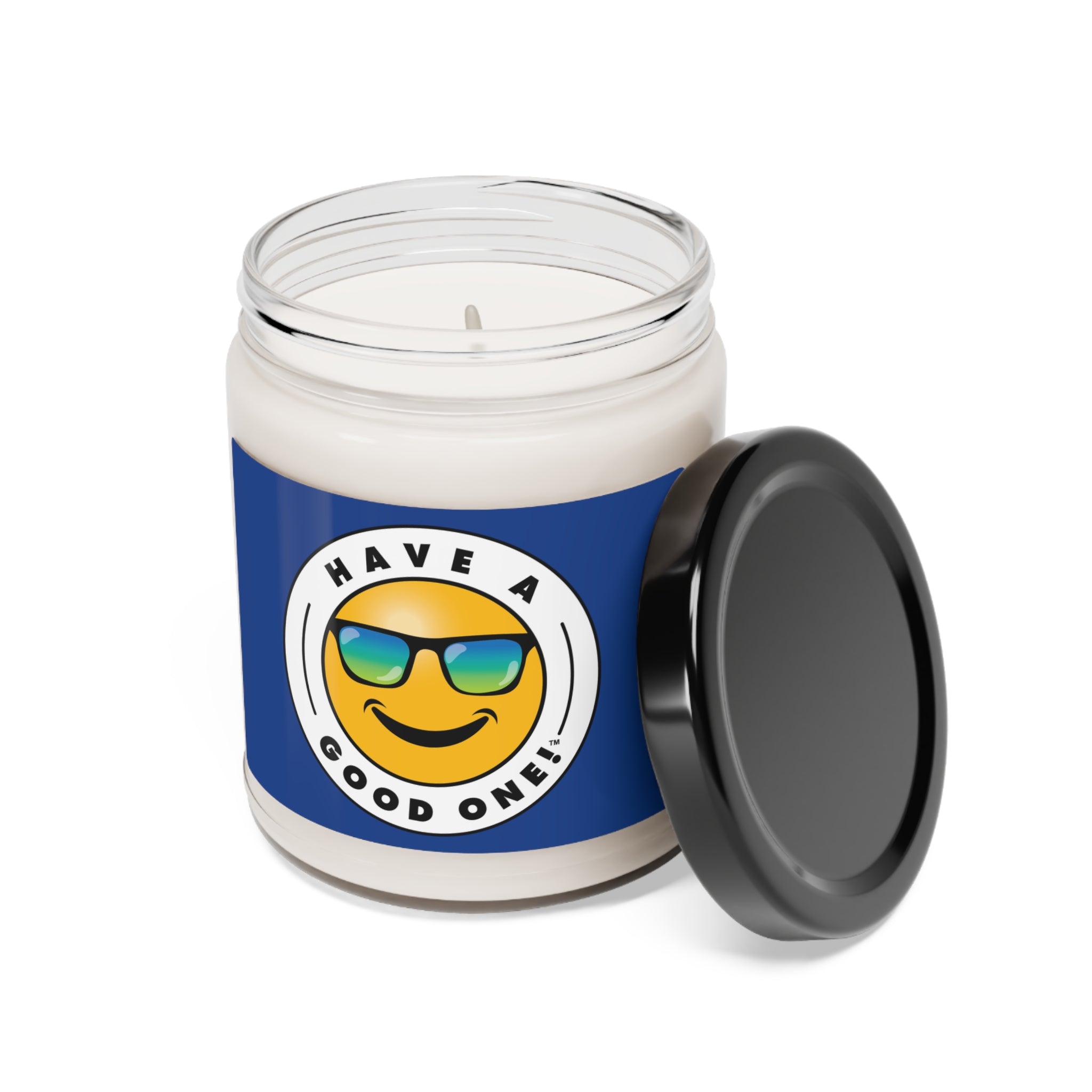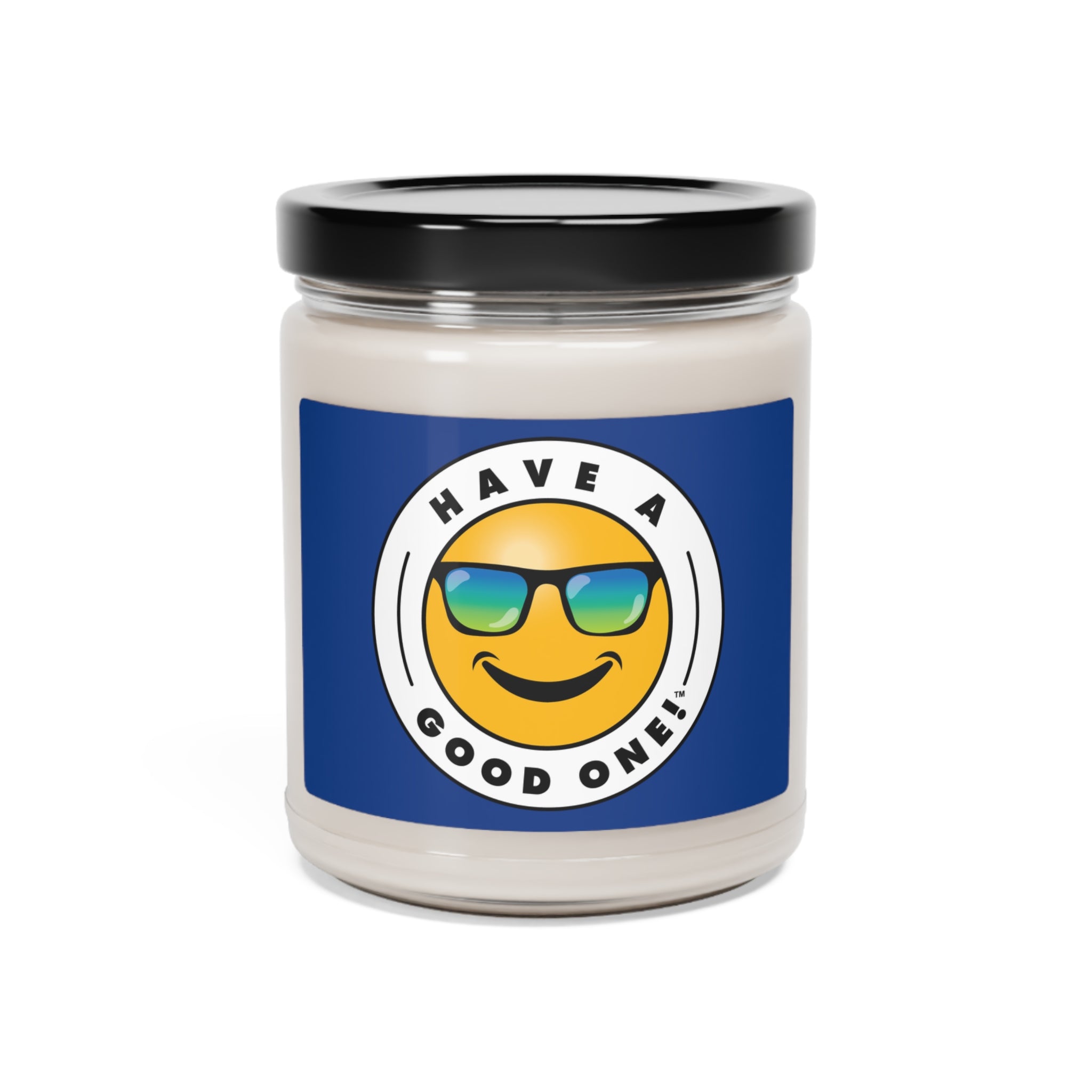 Scented Candle - Clear Glass Jar Dark Blue with Blue and Green Logo - 9oz