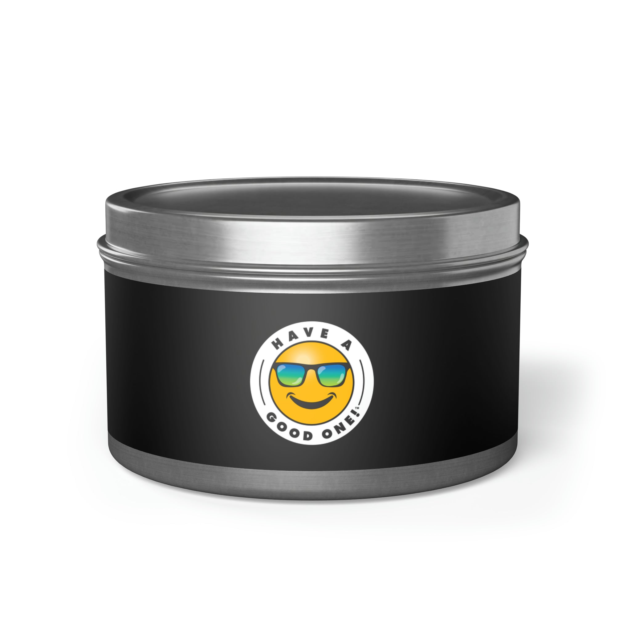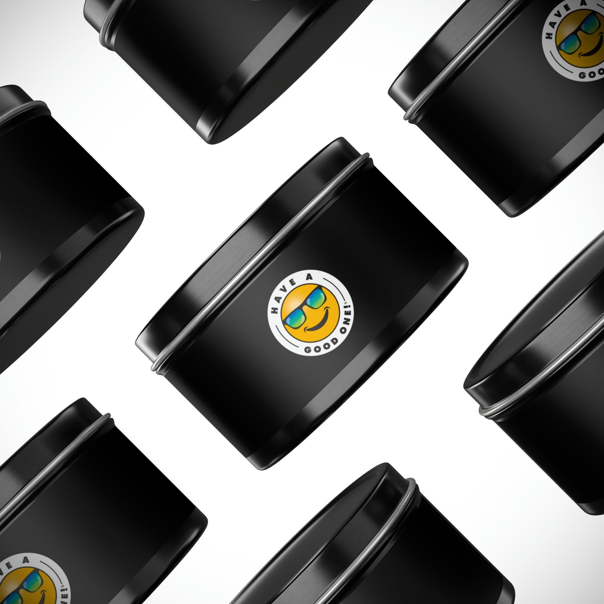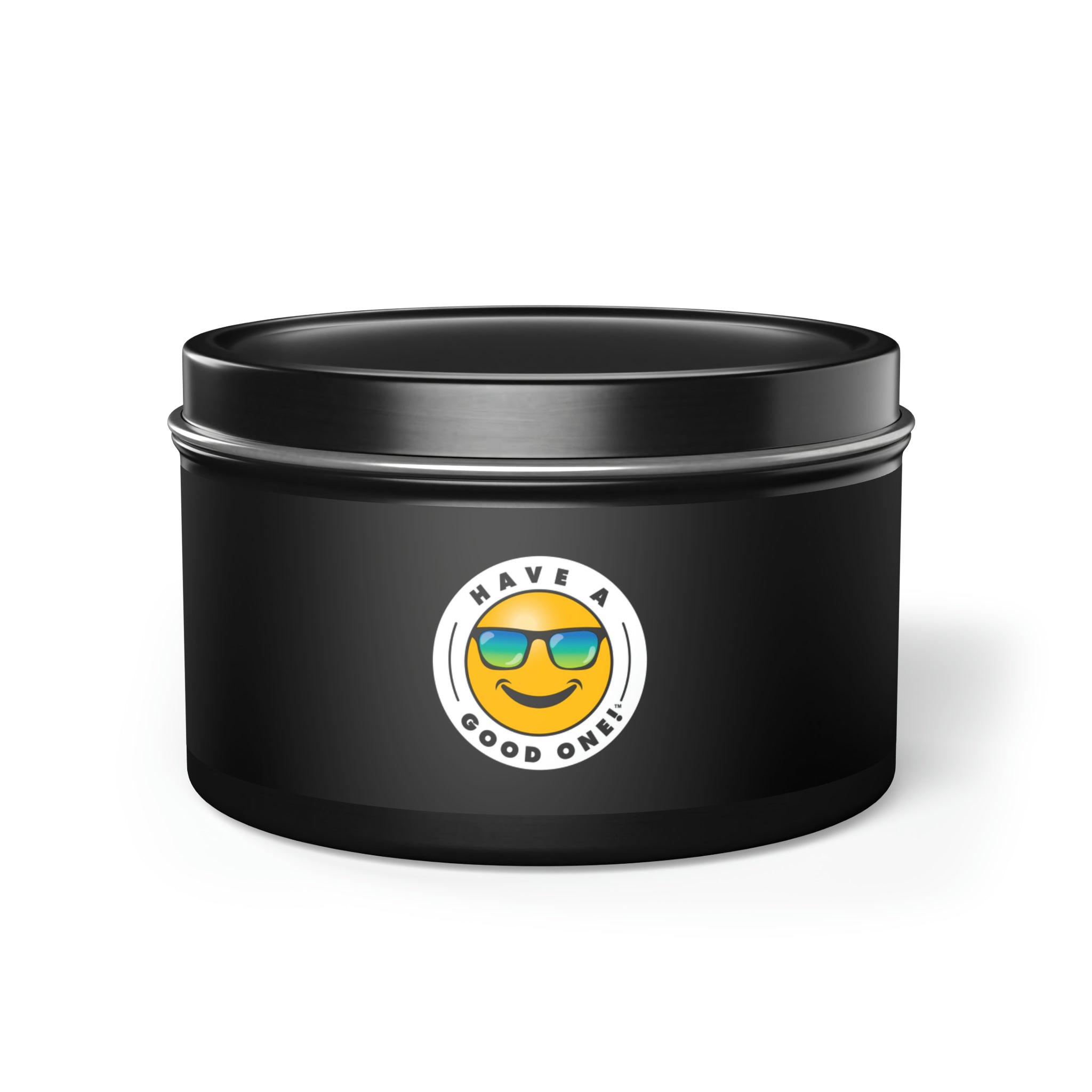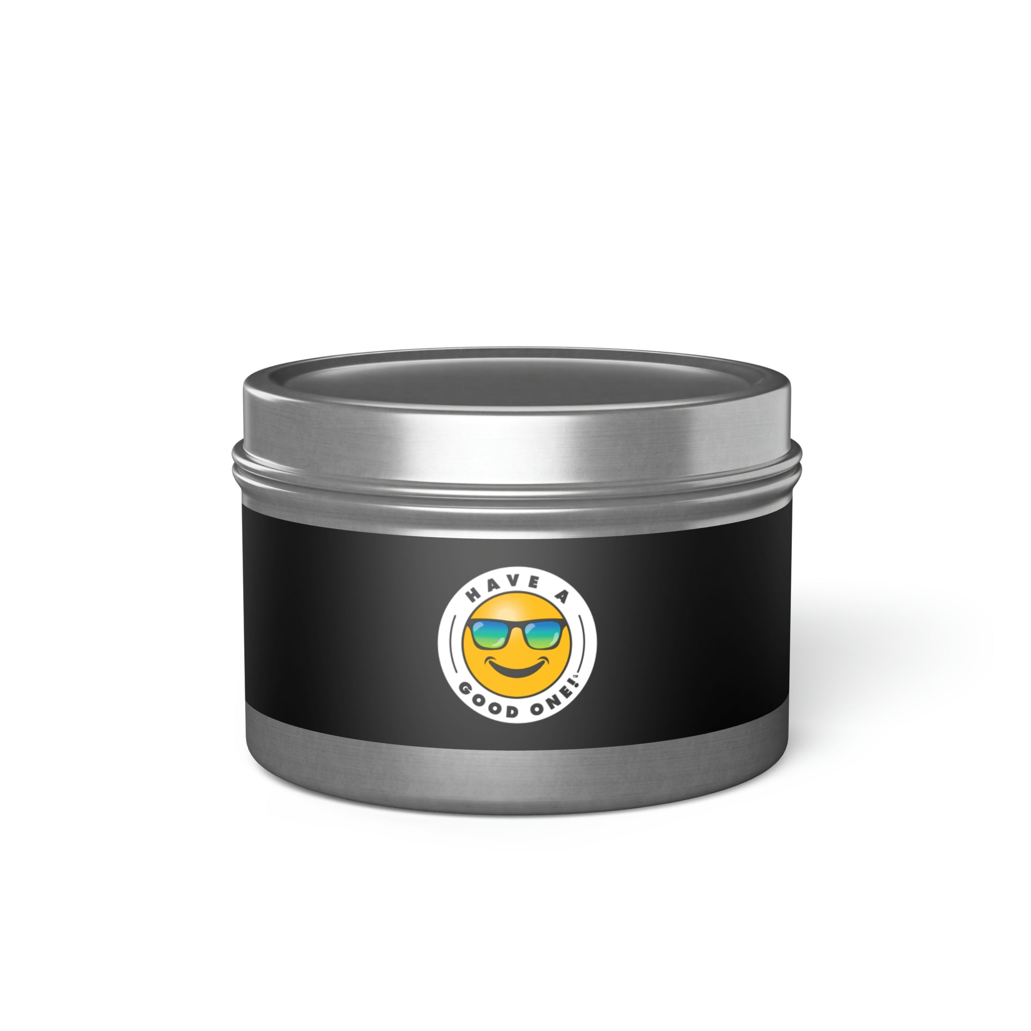 Tin Have A Good One! Candles With Lid - Black Color With Blue Green Have A Good One Logo