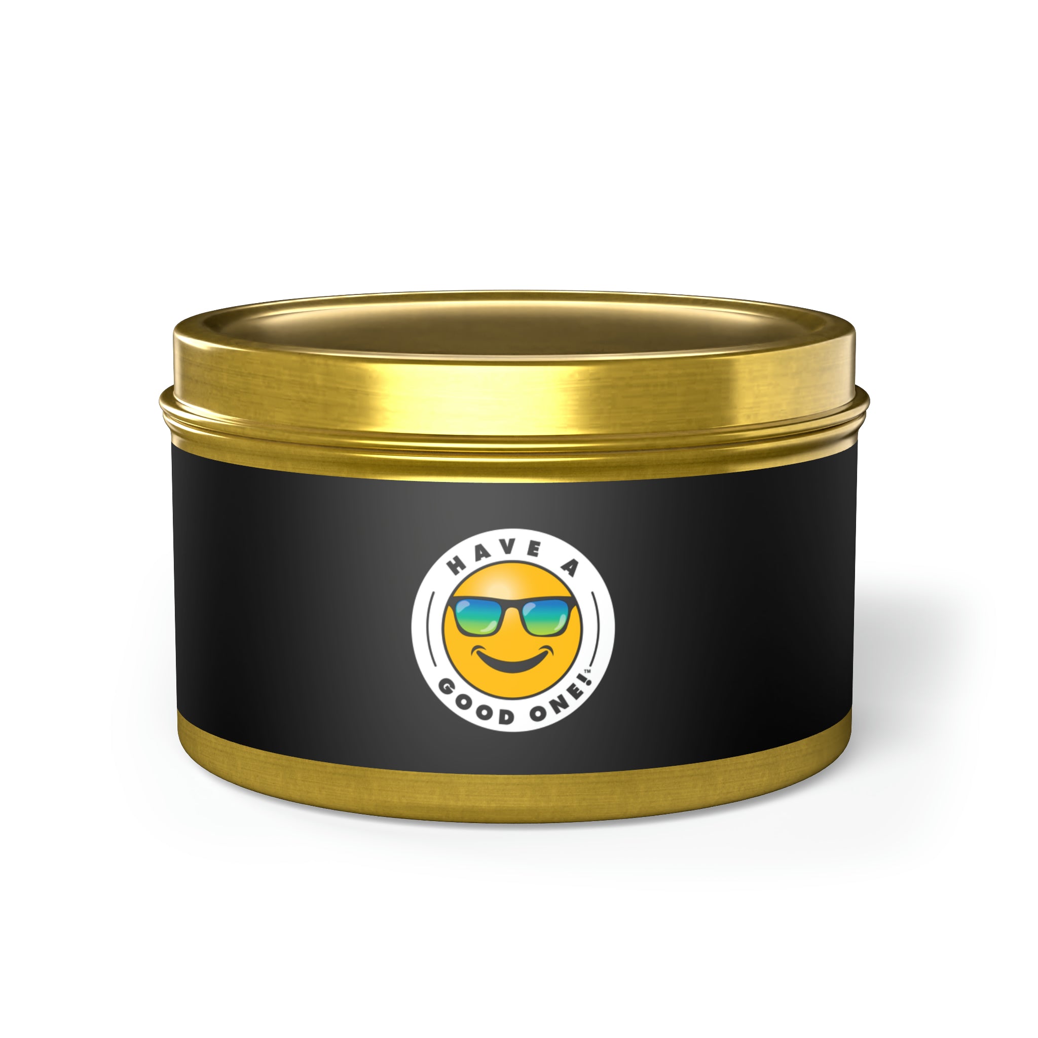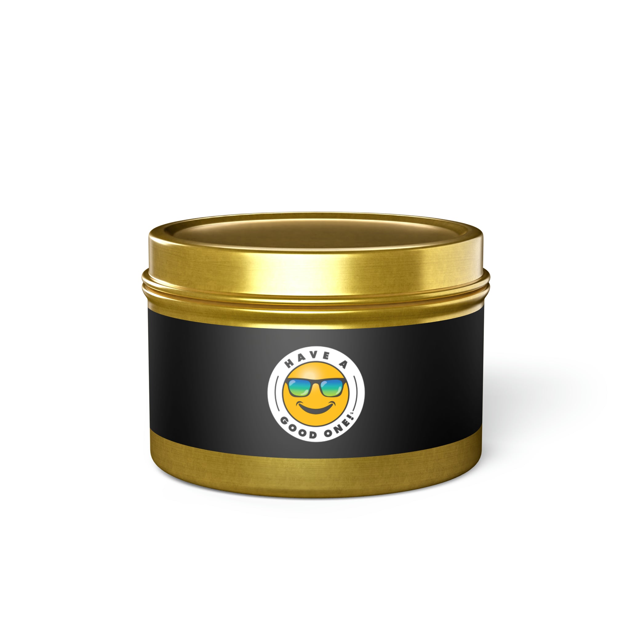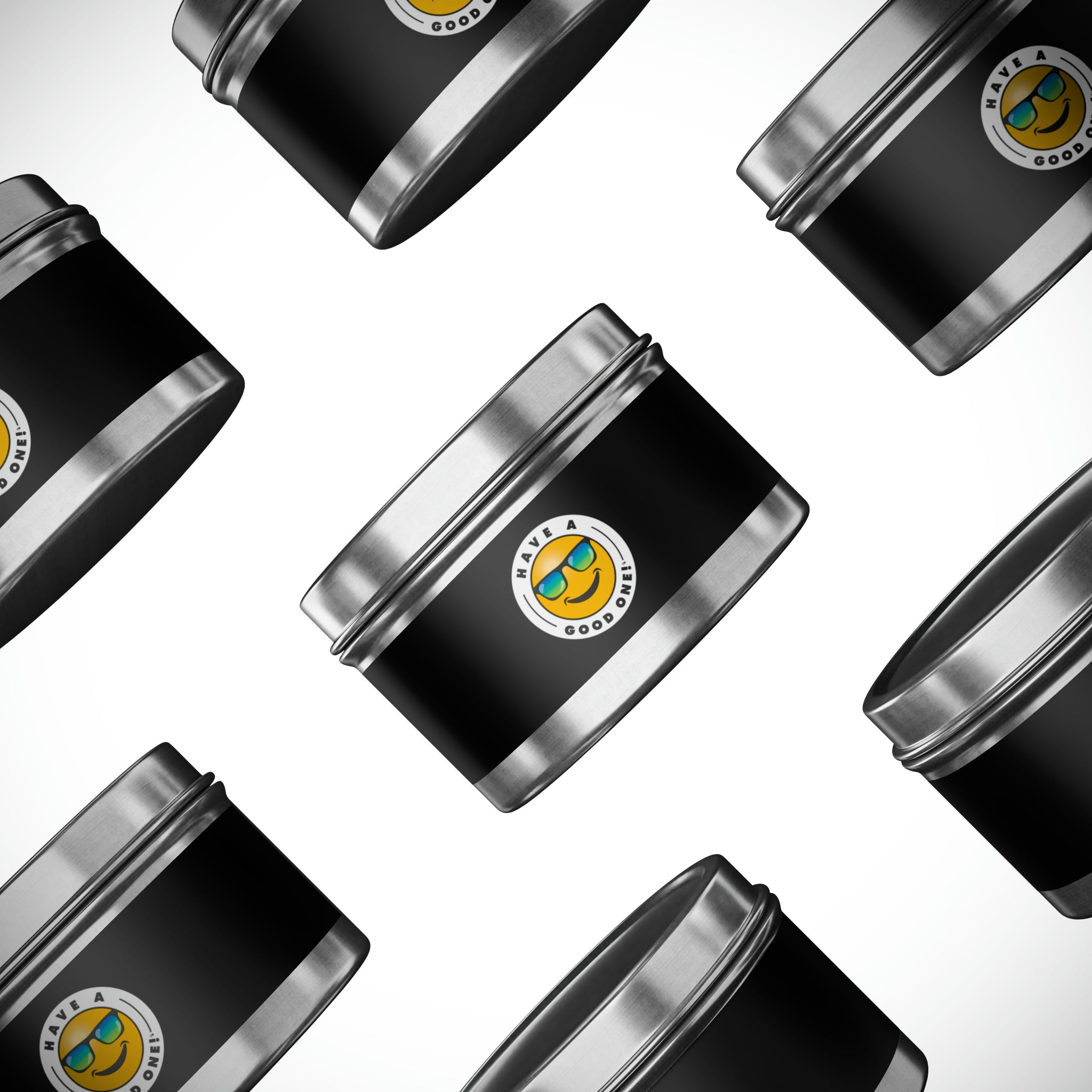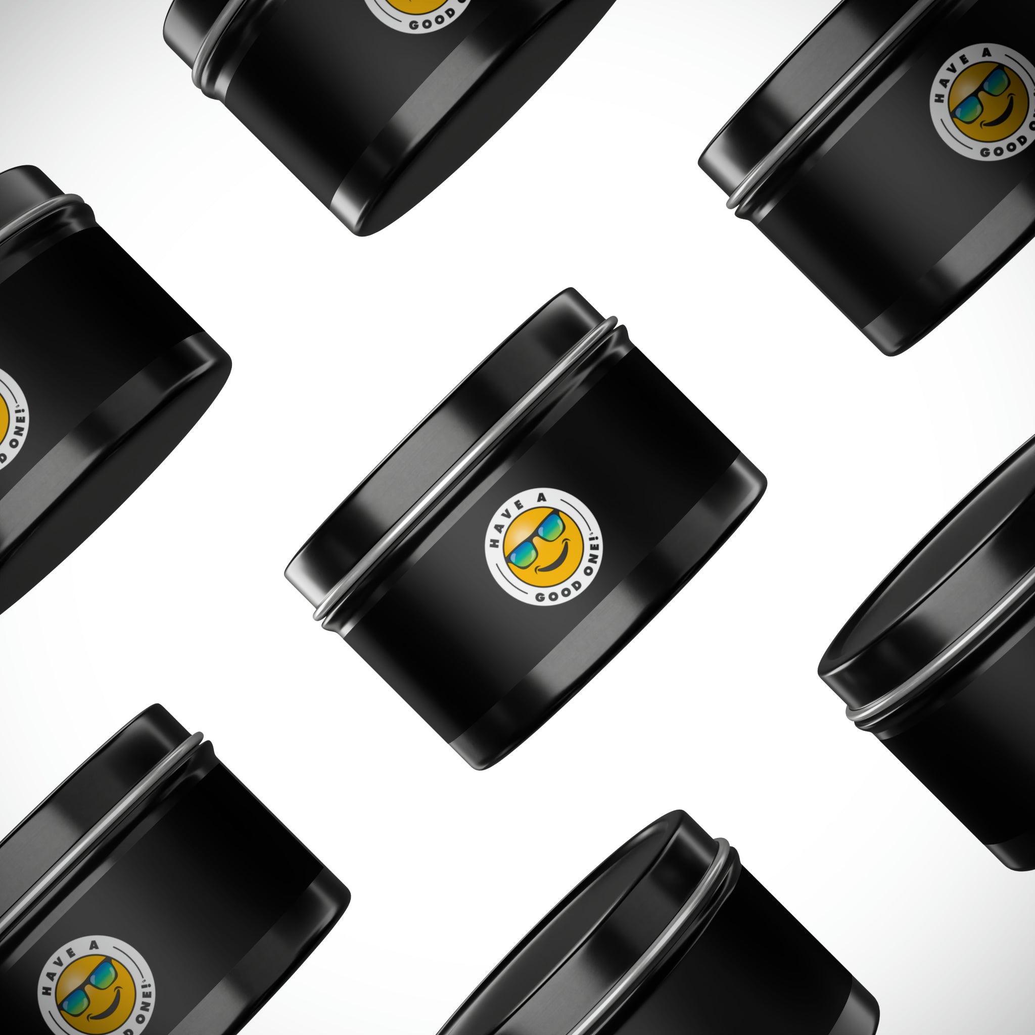 Tin Have A Good One! Candles With Lid - Black Color With Blue Green Have A Good One Logo