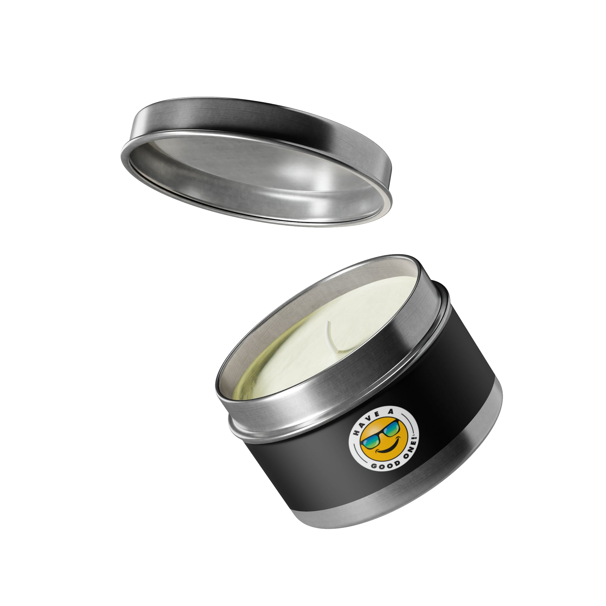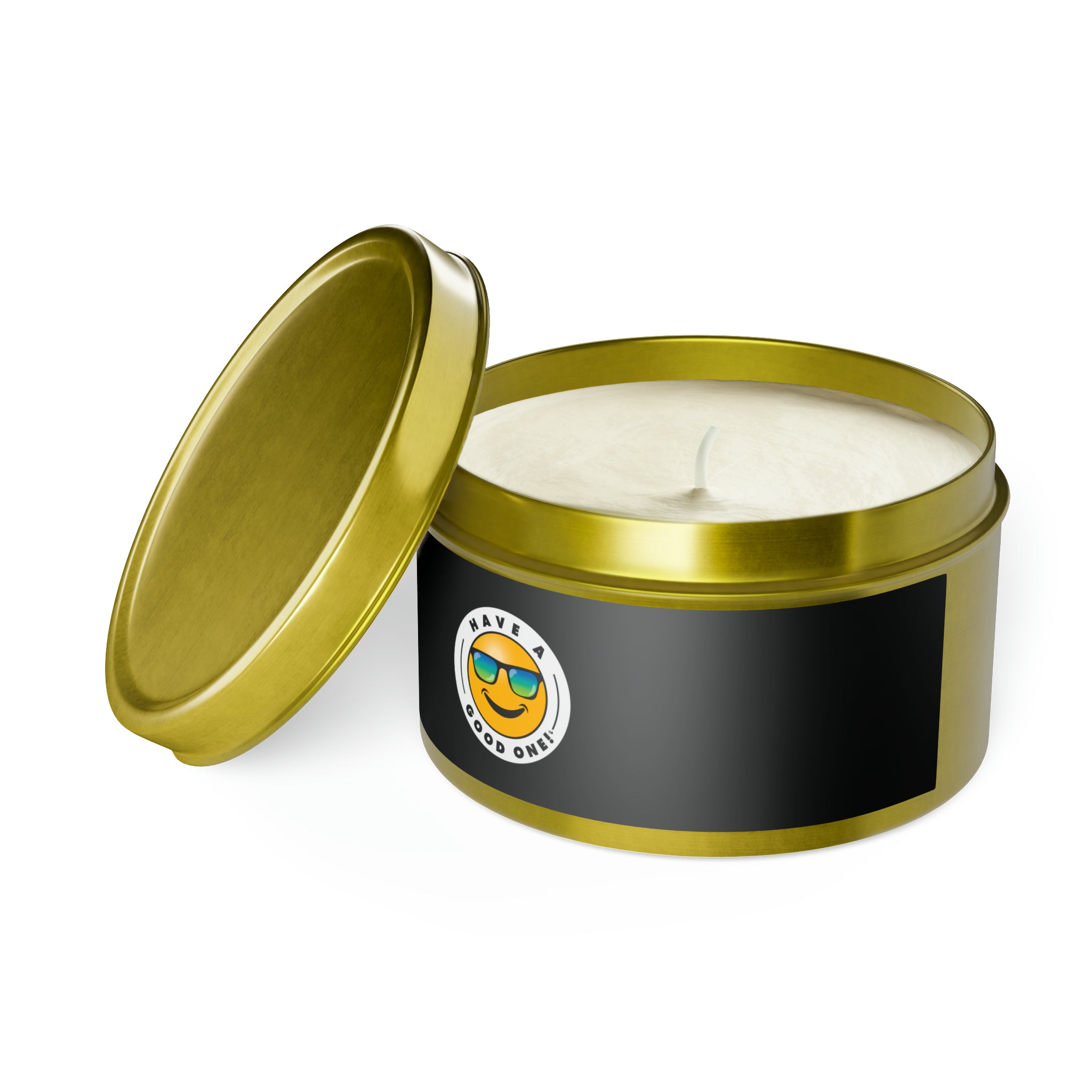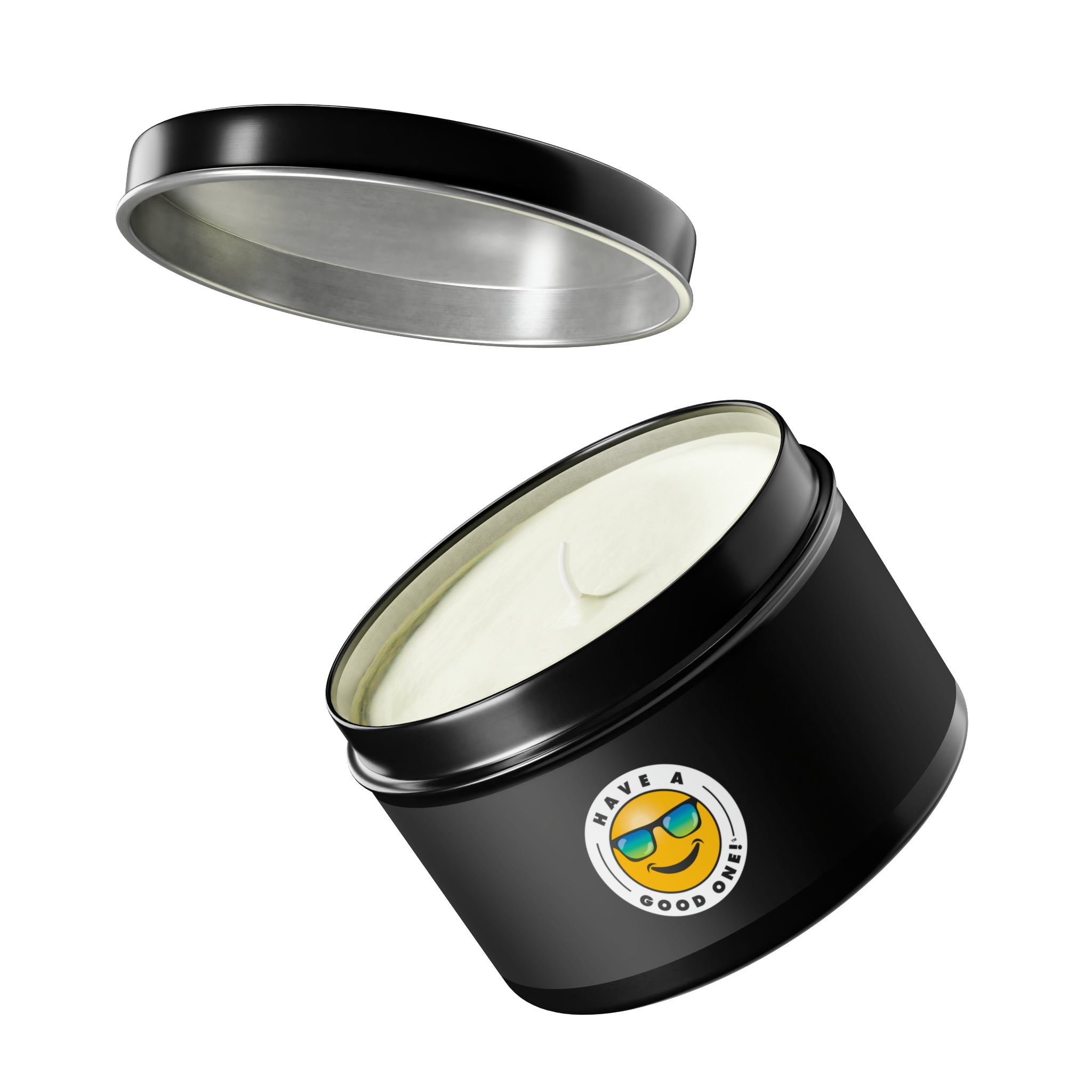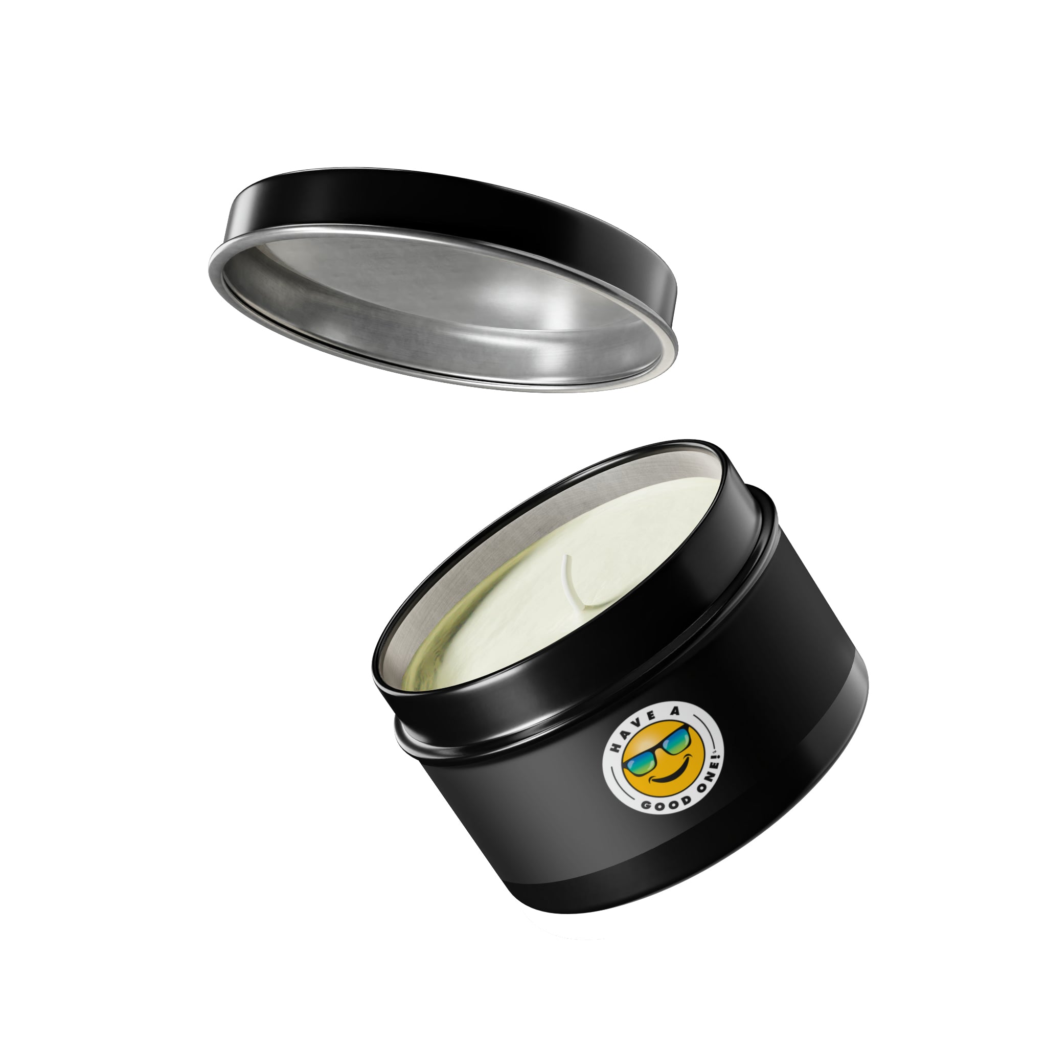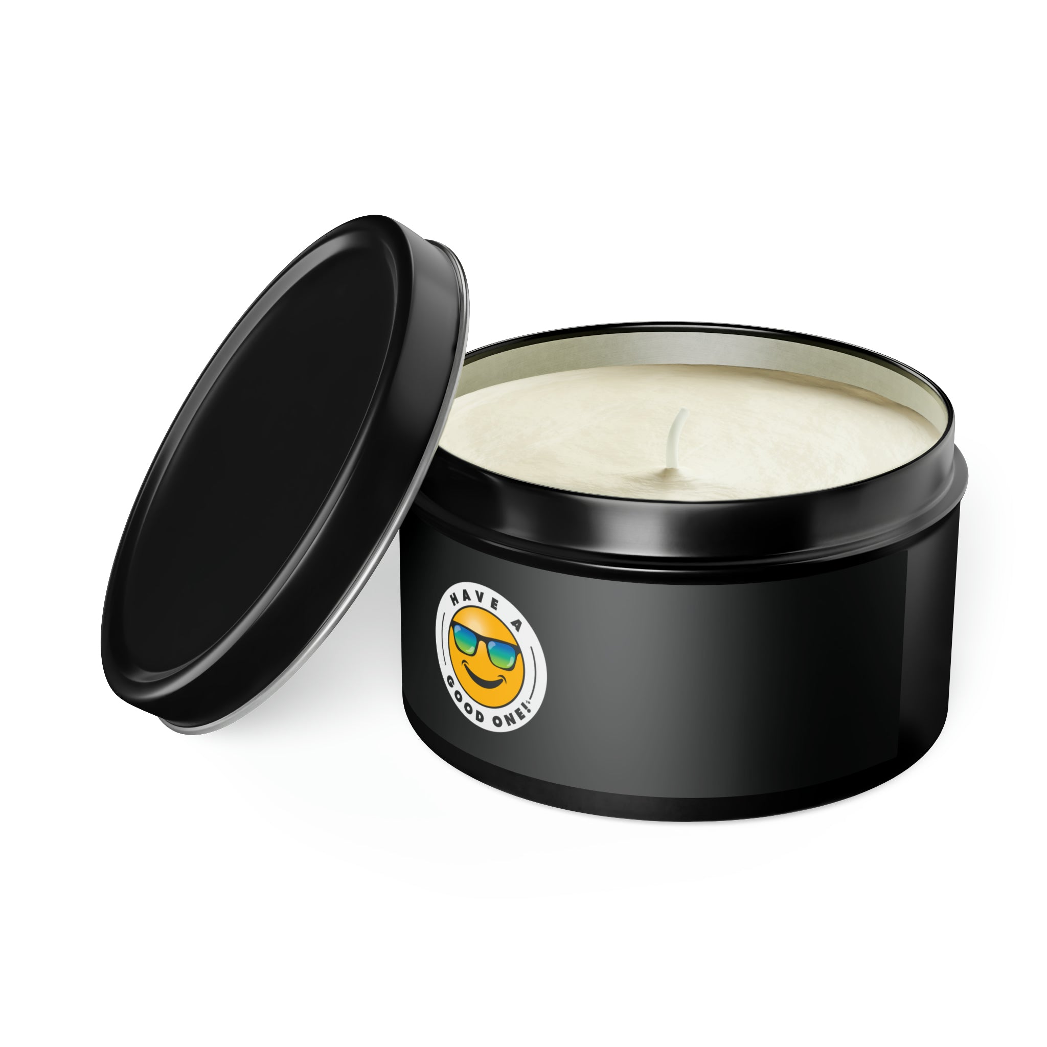 Tin Have A Good One! Candles With Lid - Black Color With Blue Green Have A Good One Logo