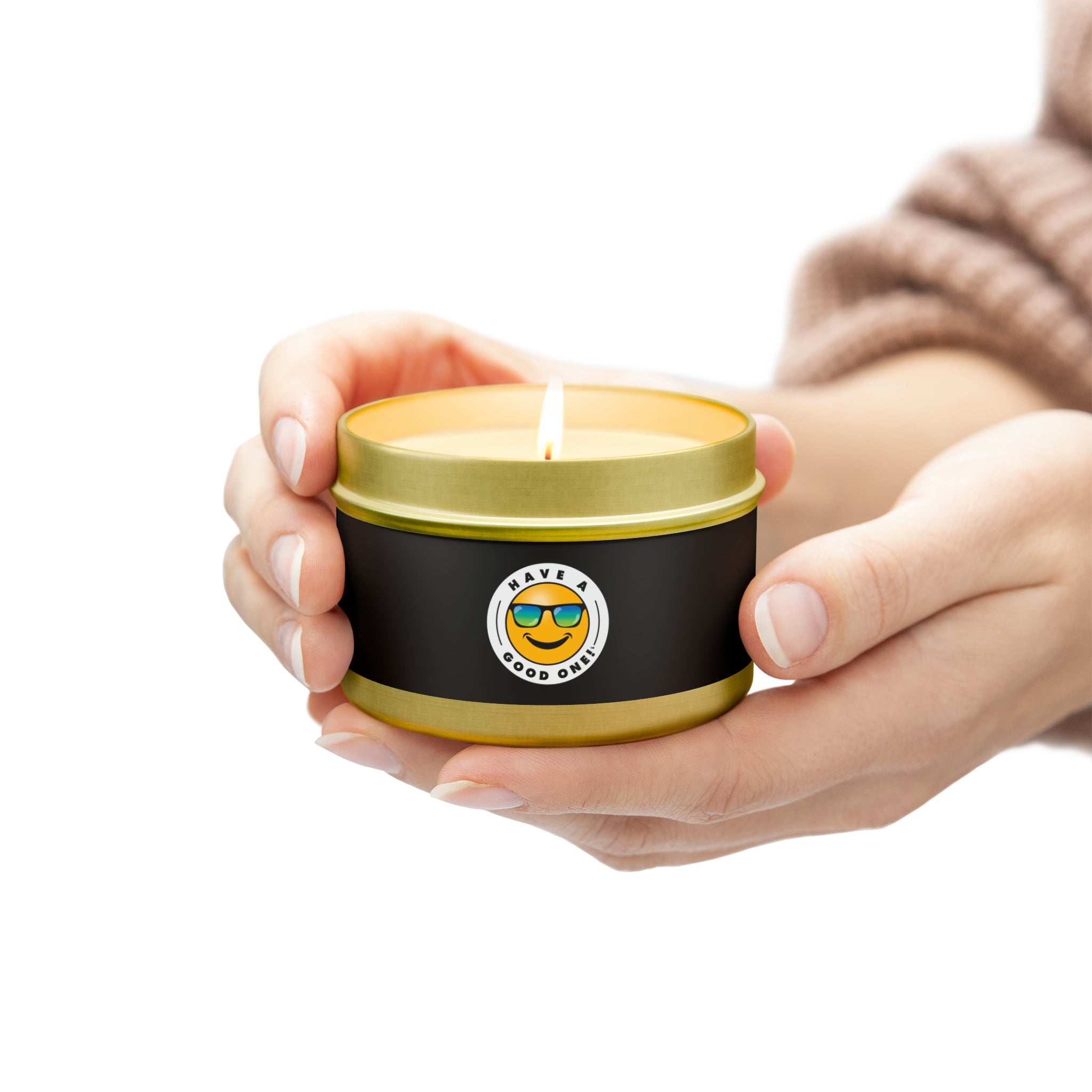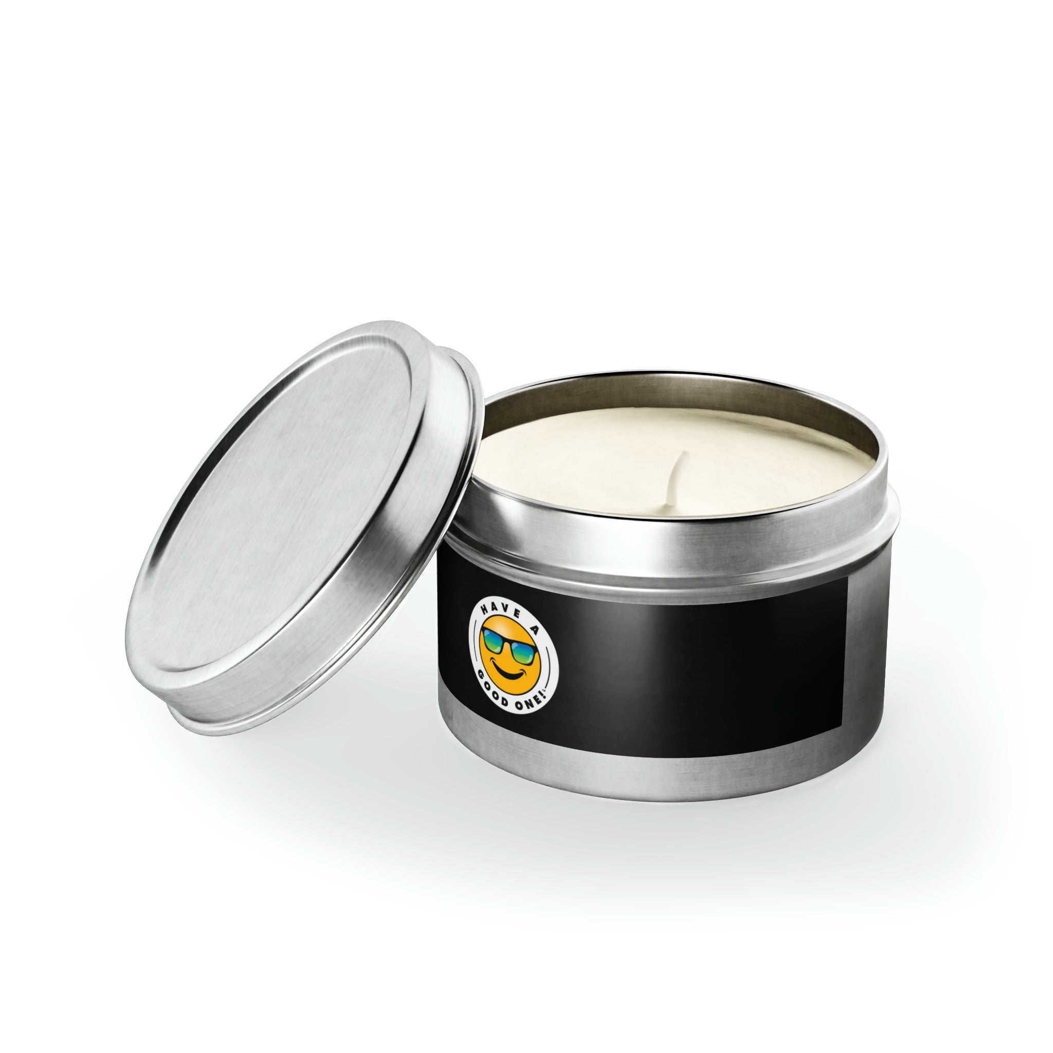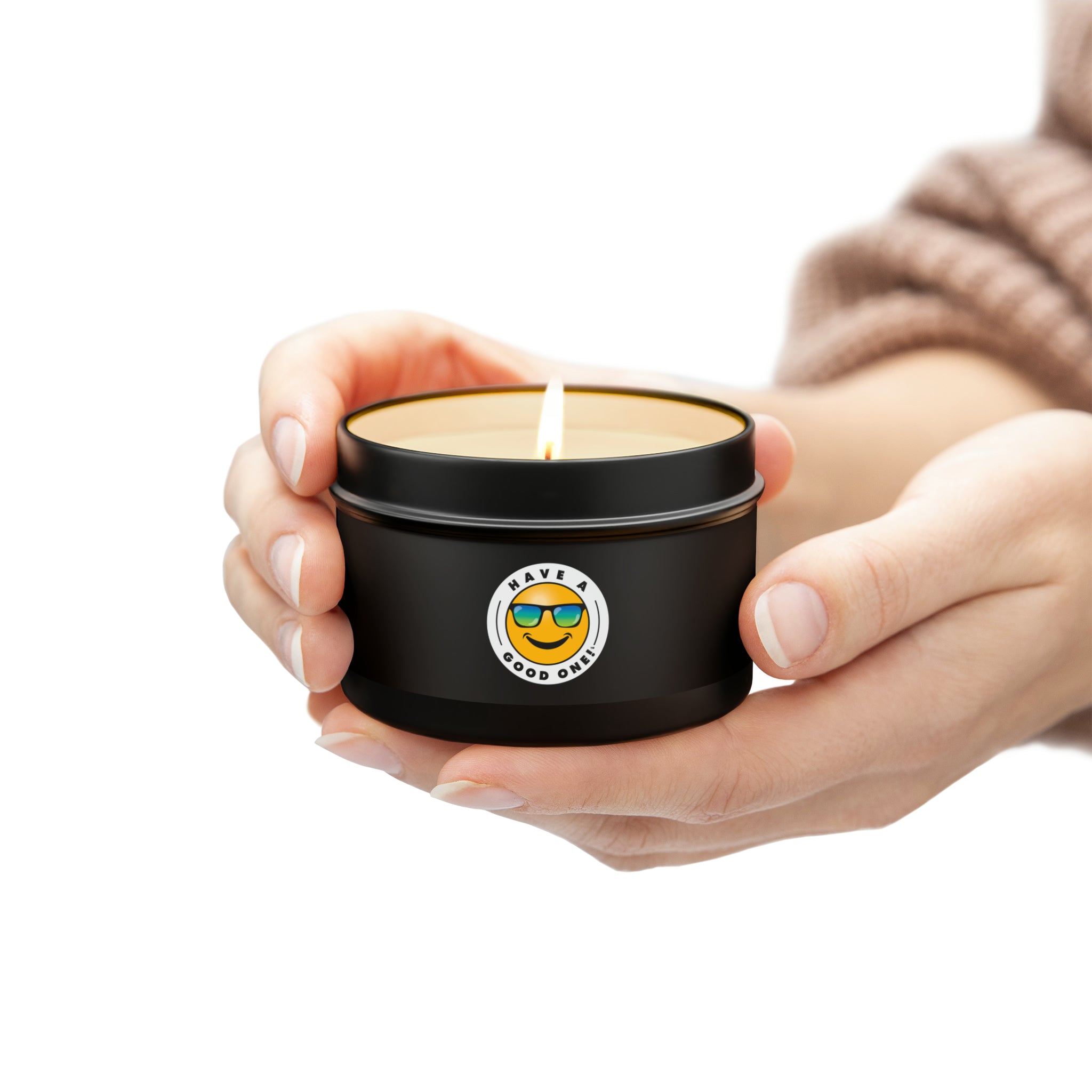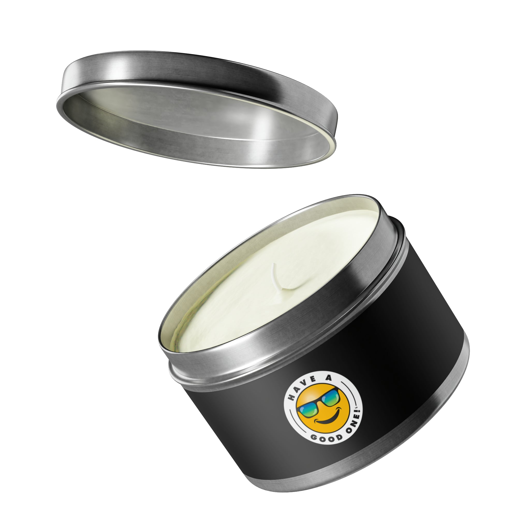 Tin Have A Good One! Candles With Lid - Black Color With Blue Green Have A Good One Logo