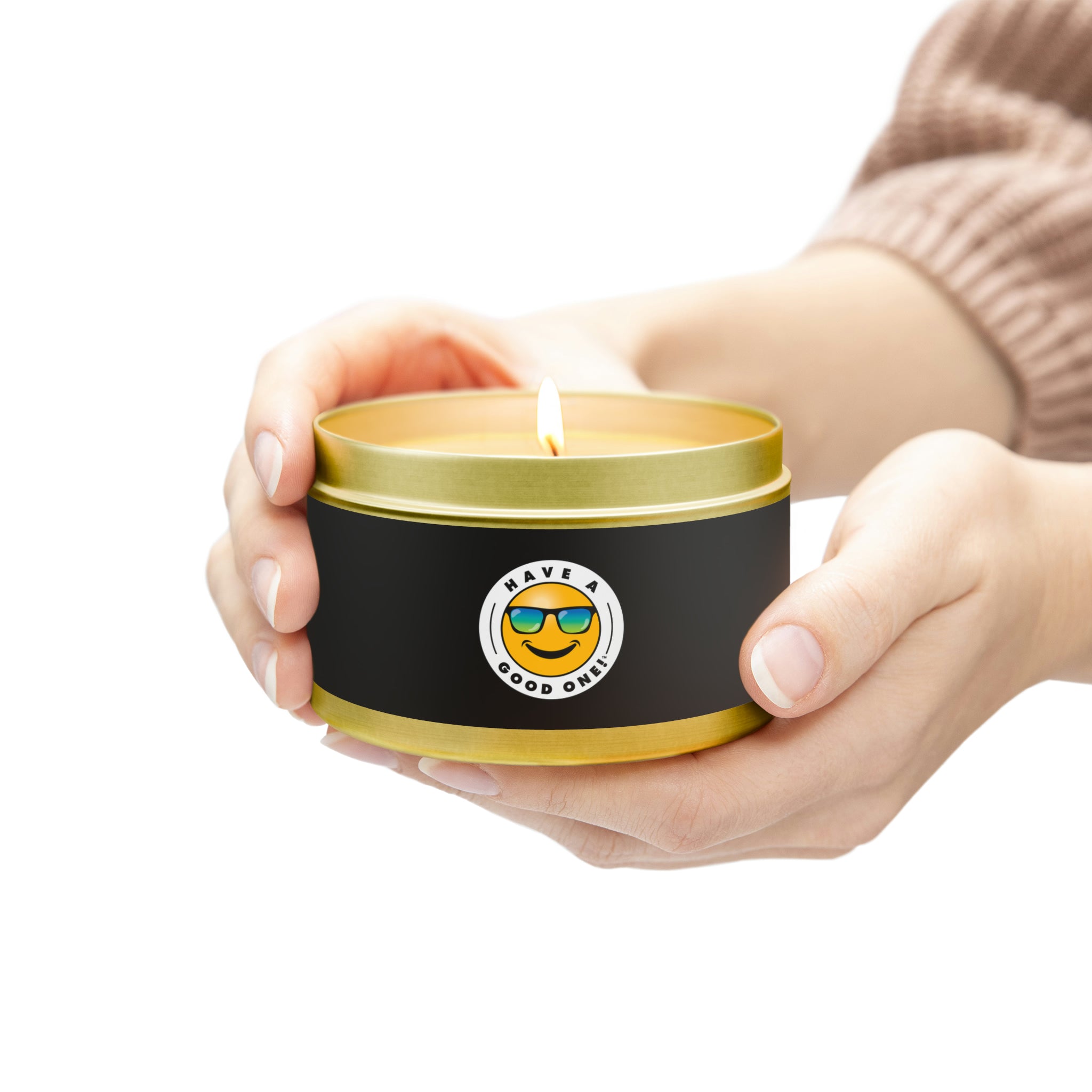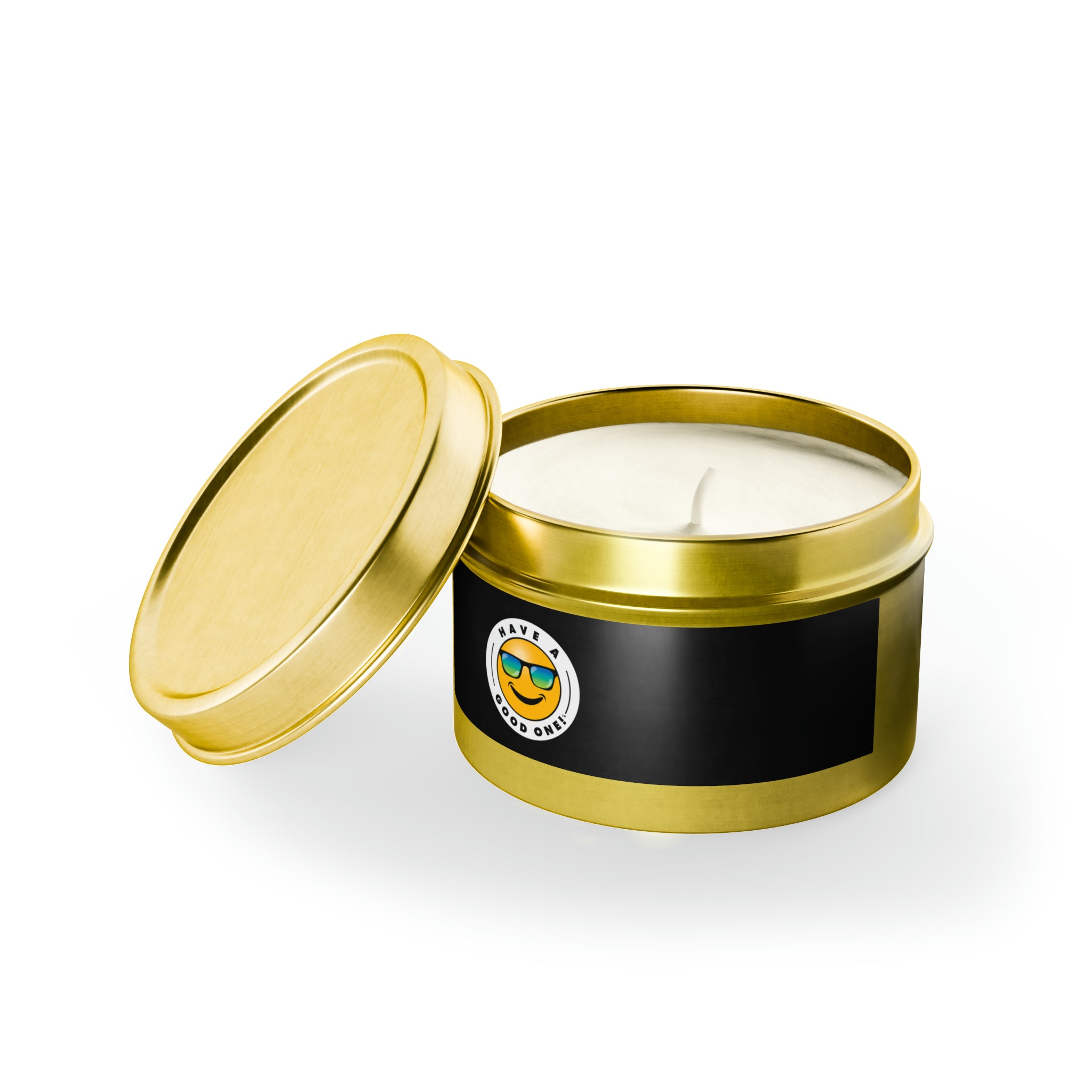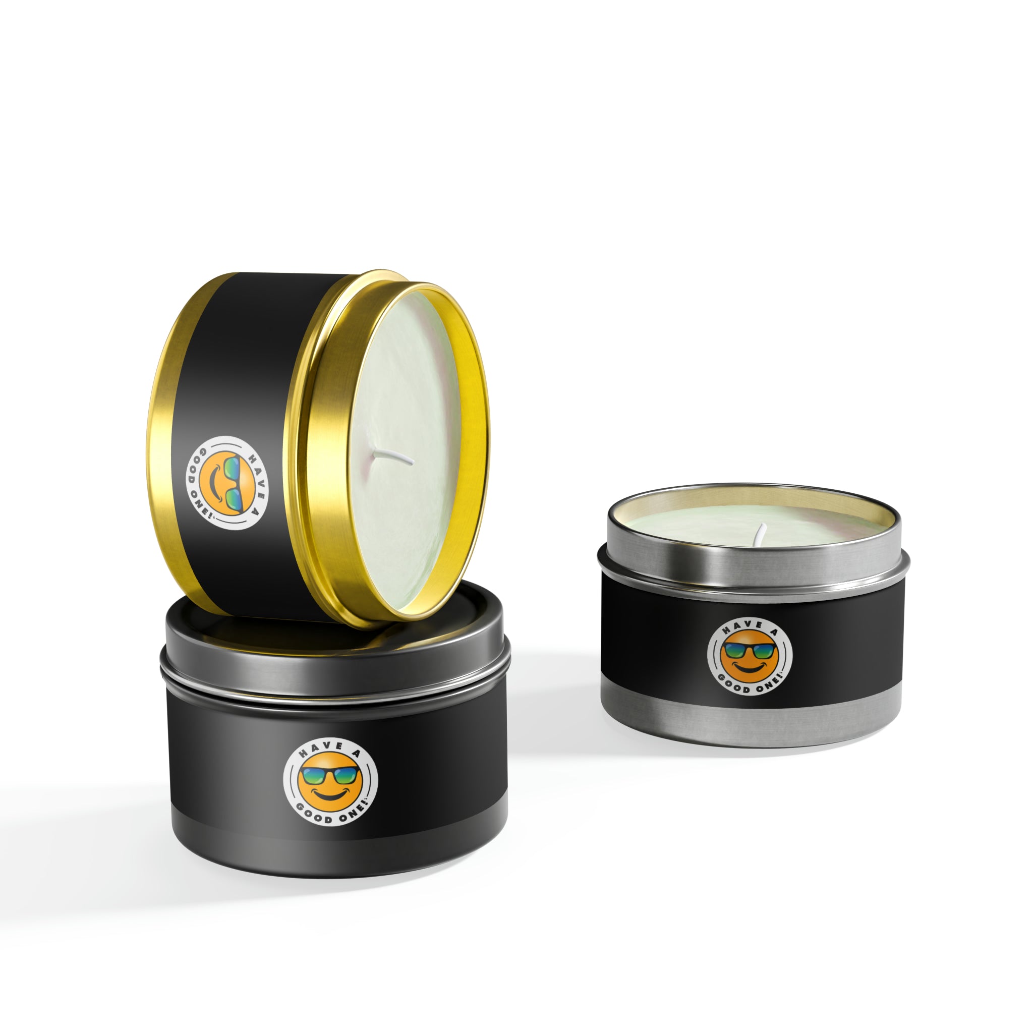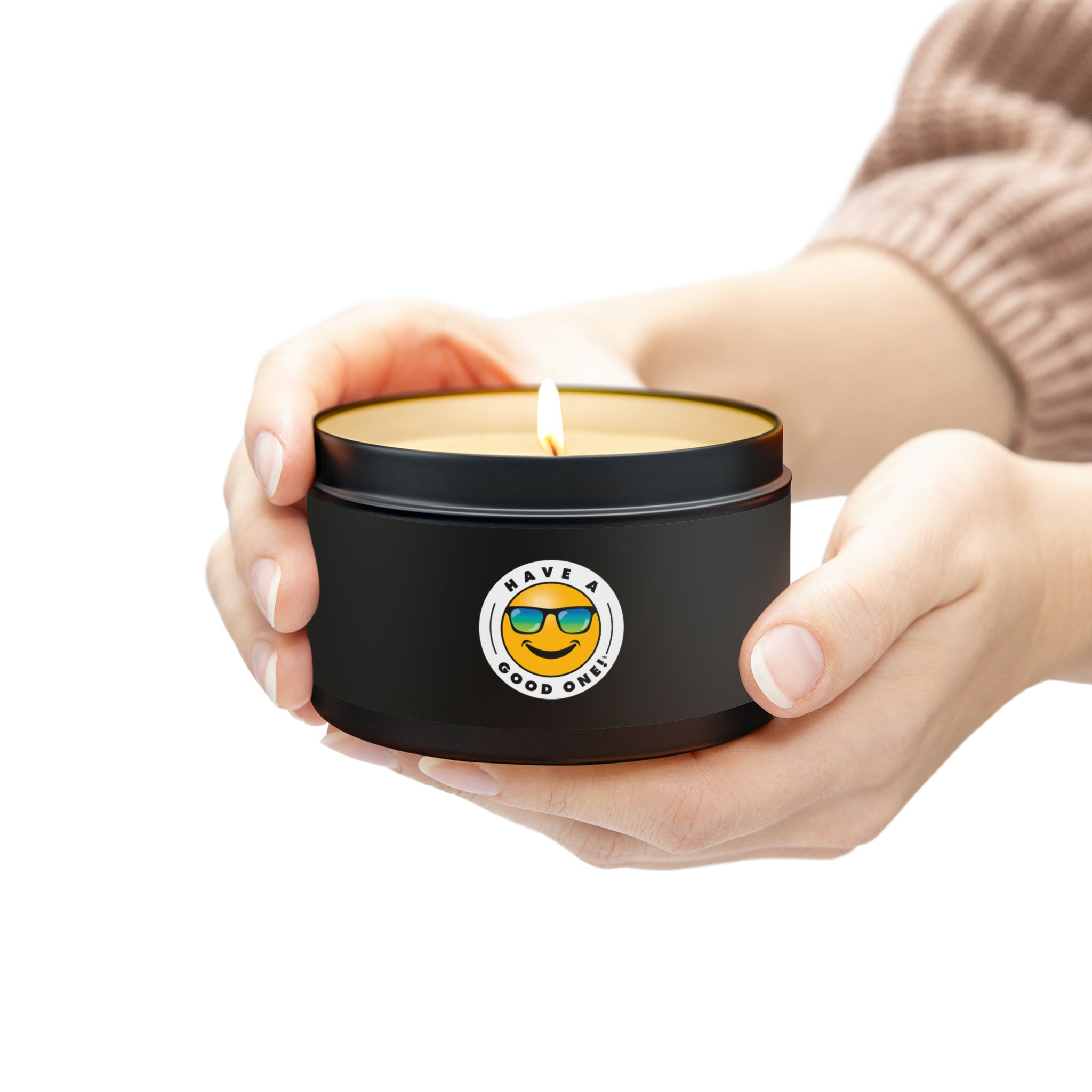 Tin Have A Good One! Candles With Lid - Black Color With Blue Green Have A Good One Logo