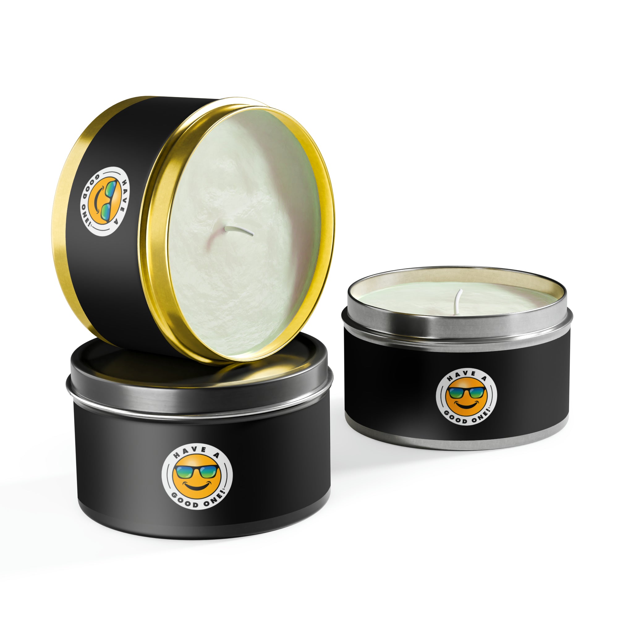 These candles are a truly a special treat for aromatherapy enthusiasts! Each candle comes in its own tin with matching lid. Available in 4oz and 8oz tins, our candles are all natural coconut soy wax that is made and hand-poured in the USA. All candles feature a lead and zinc-free cotton wick with an average burning time of 20 hours (4oz) and 40h (8oz). Choose between 5 captivating aromas; Evergreen, Fresh Coffee, Mango Coconut, Spa Retreat, or Vanilla Bean. The tins are available in 3 colors; gold, silver, or black. They are great for travel too. These candles are sure to set the mood in any room for any occasion. Enjoy the fragrant scent and warm ambience anywhere and you are certain to Have A Good One!