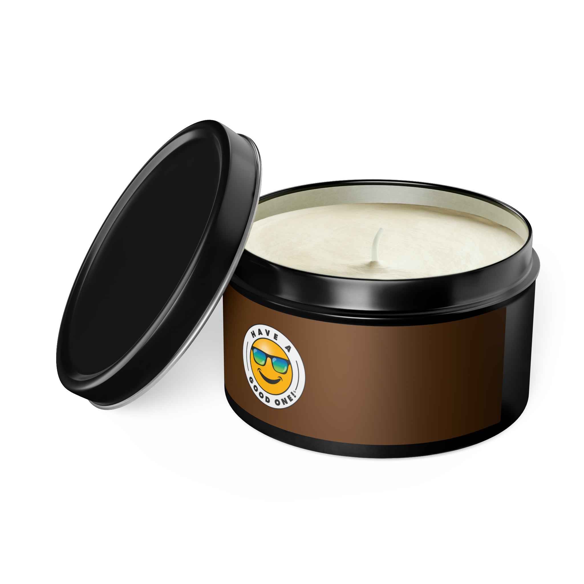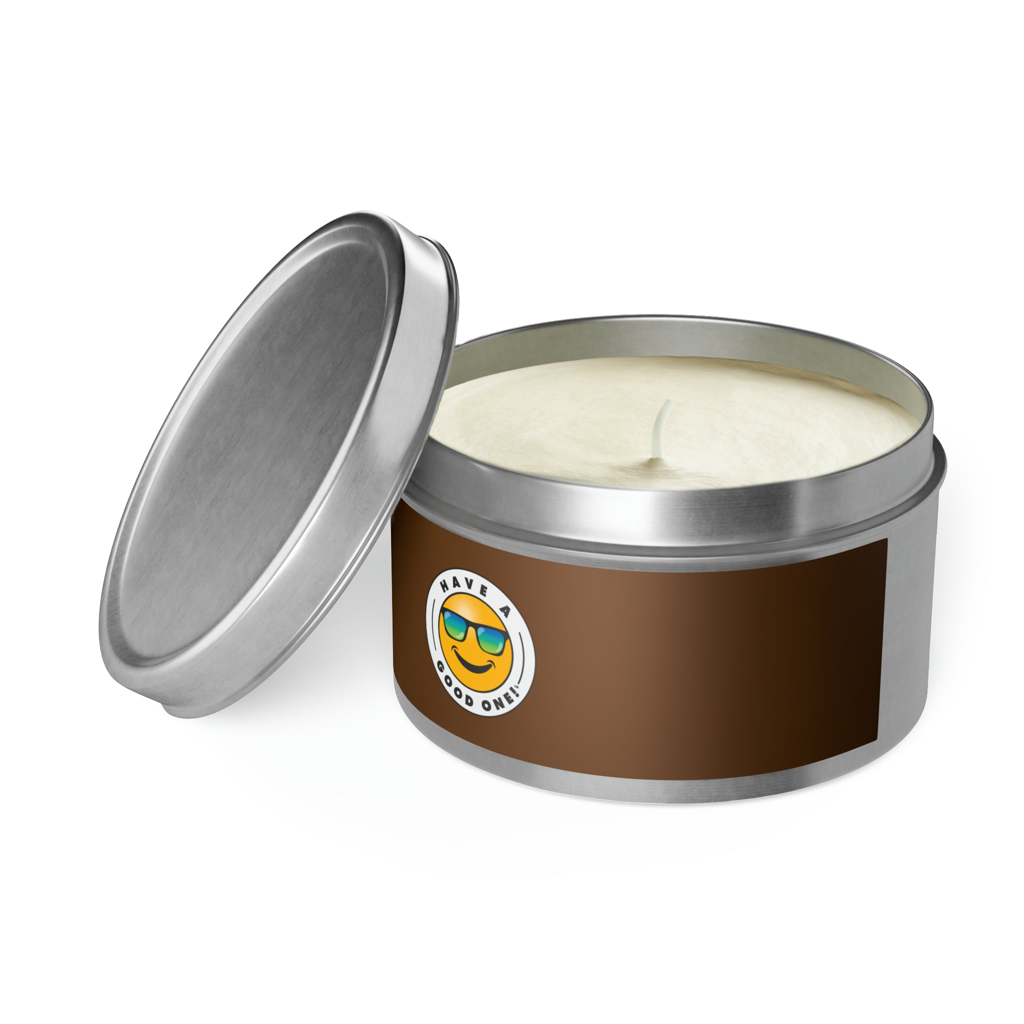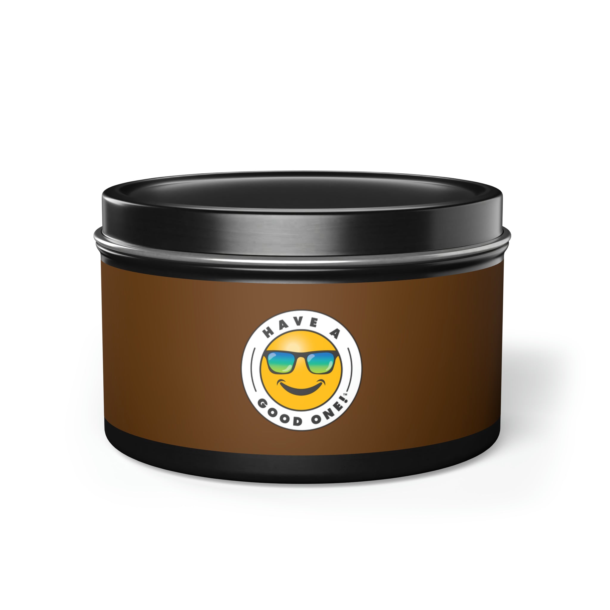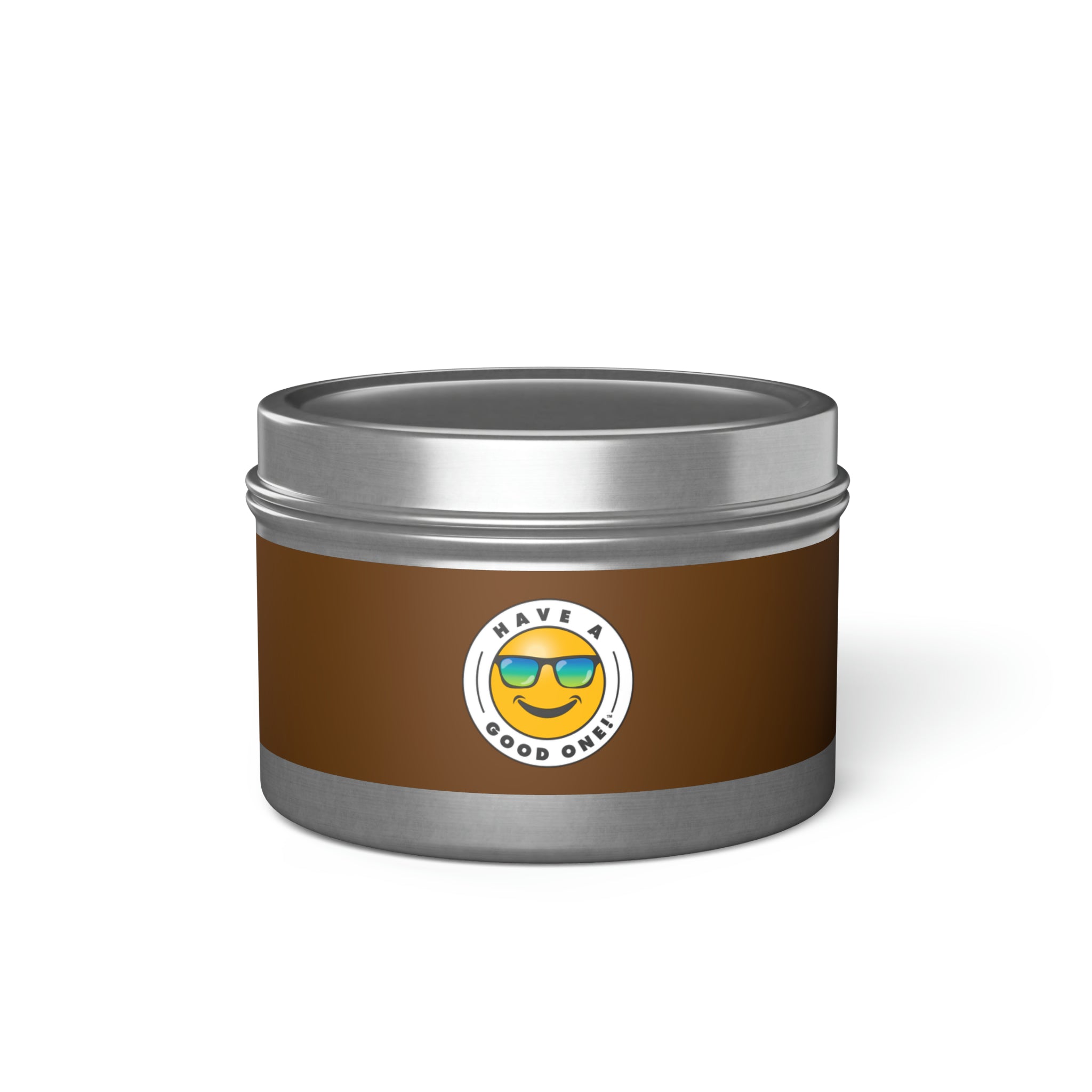 Tin Have A Good One! Candles With Lid - Brown Color With Blue Green Have A Good One Logo