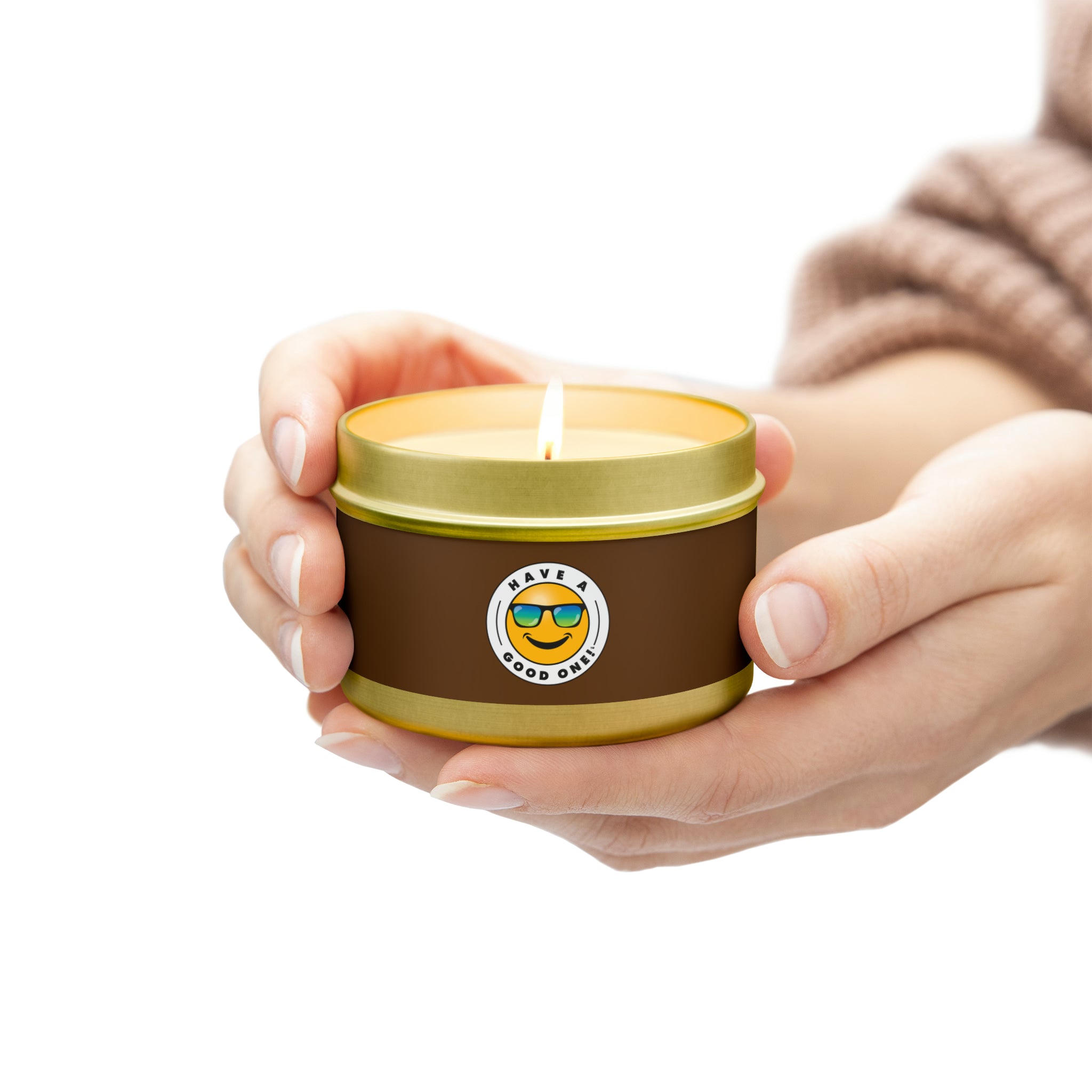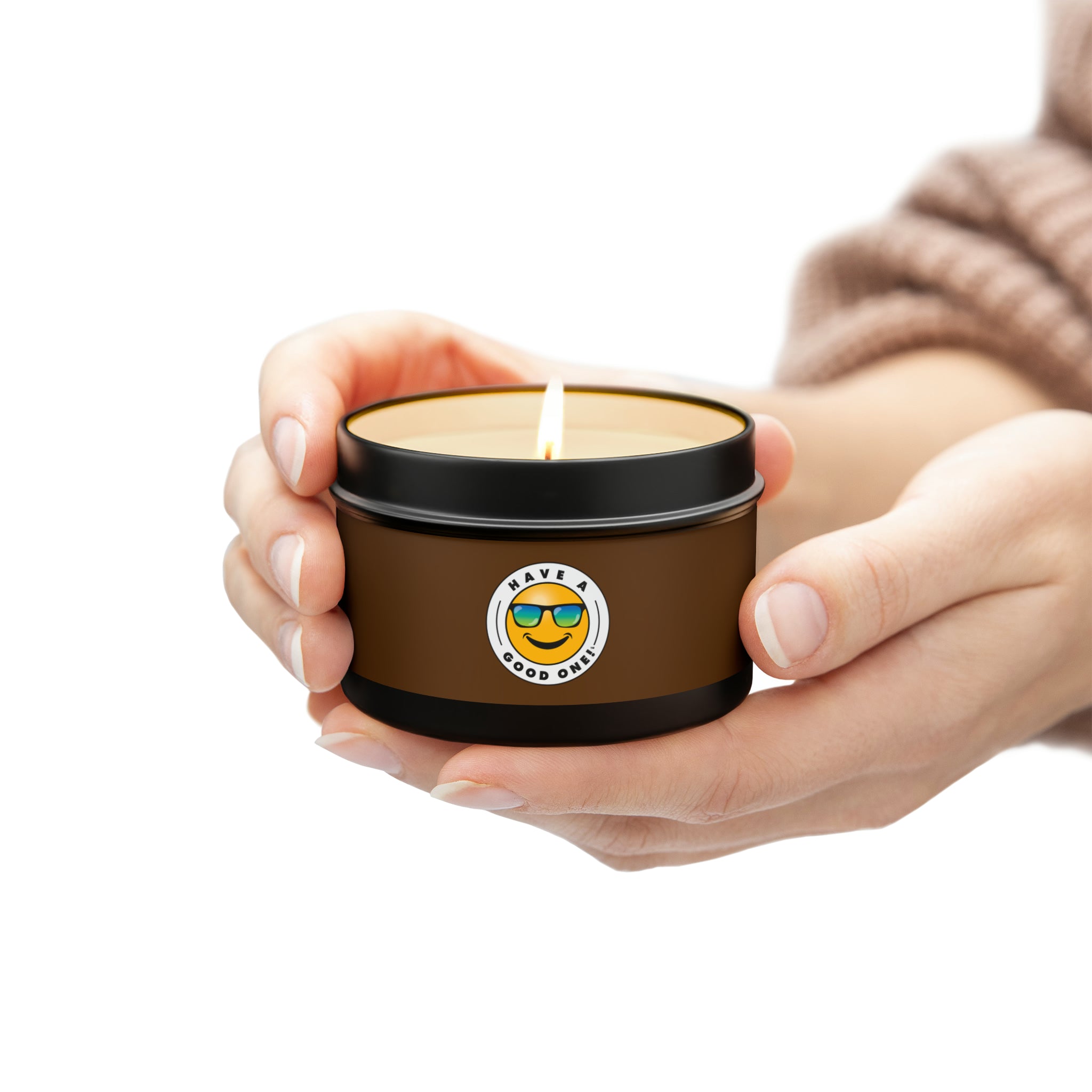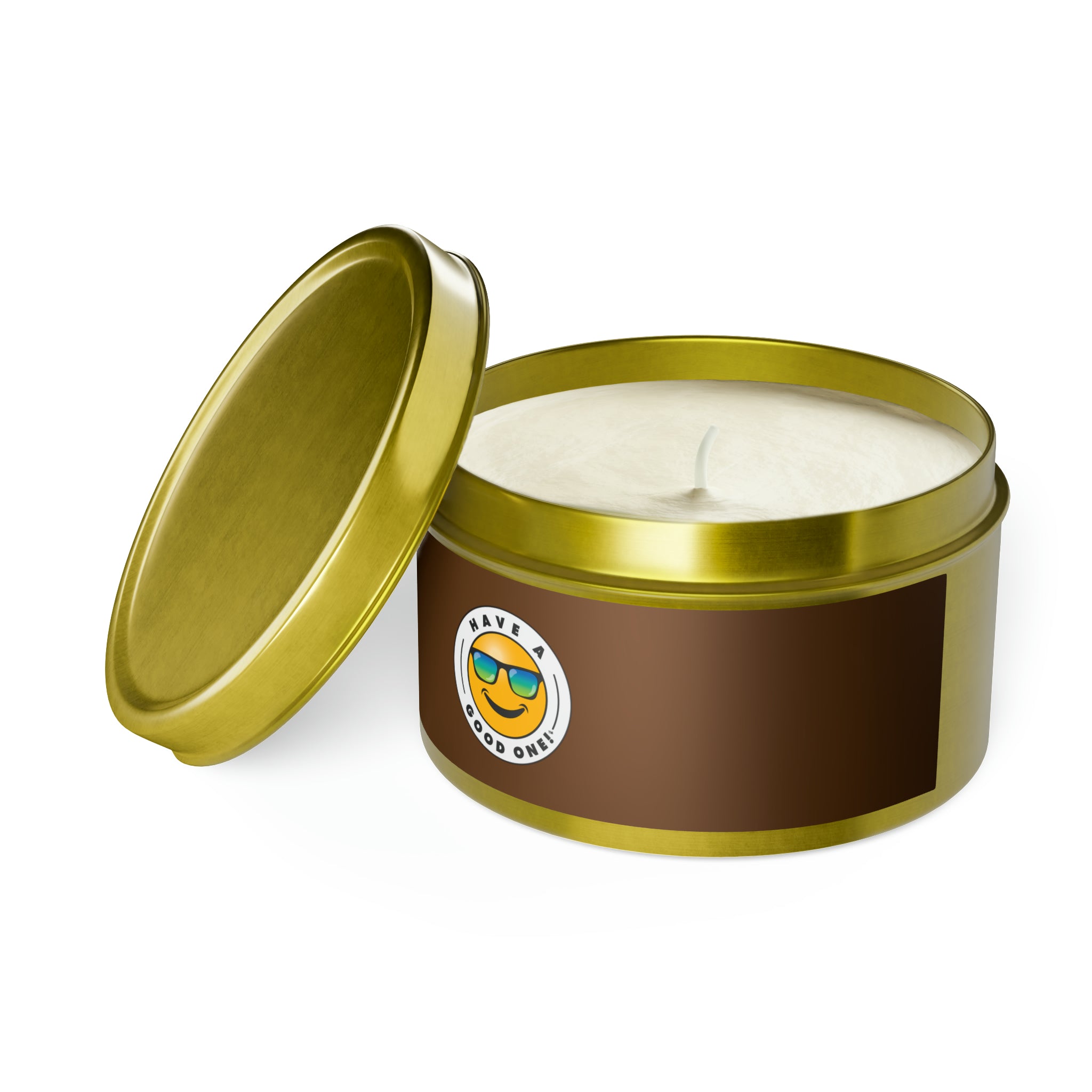 Tin Have A Good One! Candles With Lid - Brown Color With Blue Green Have A Good One Logo