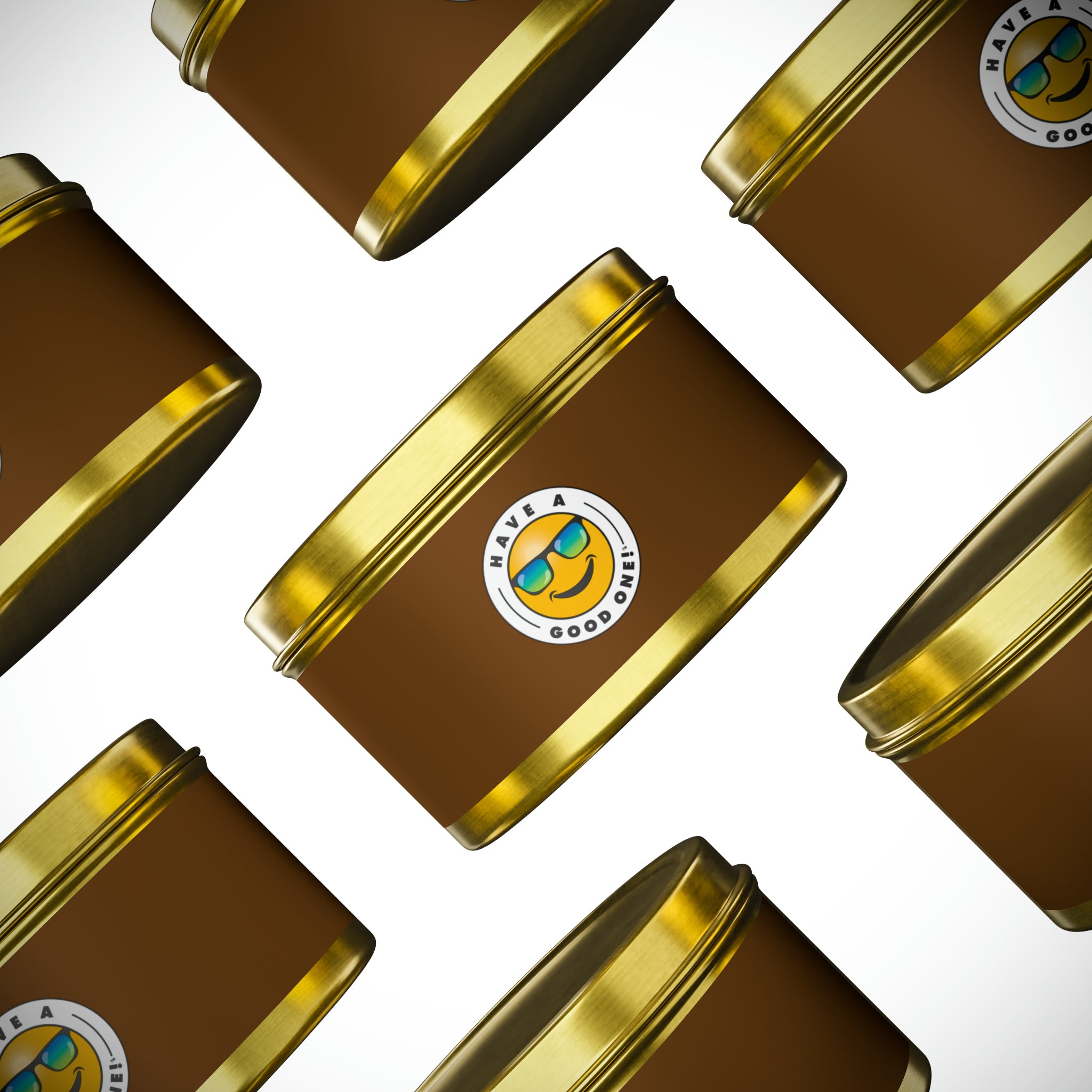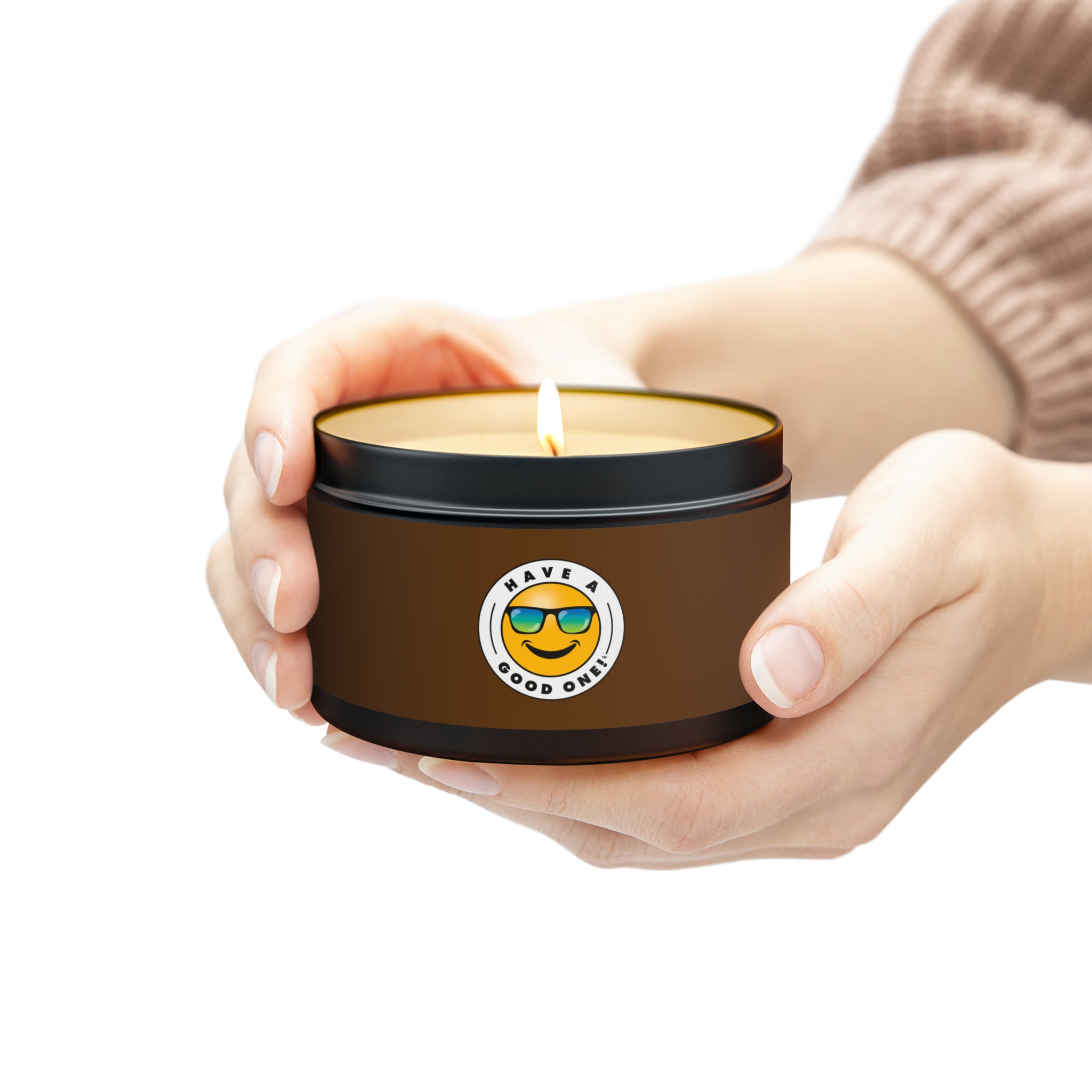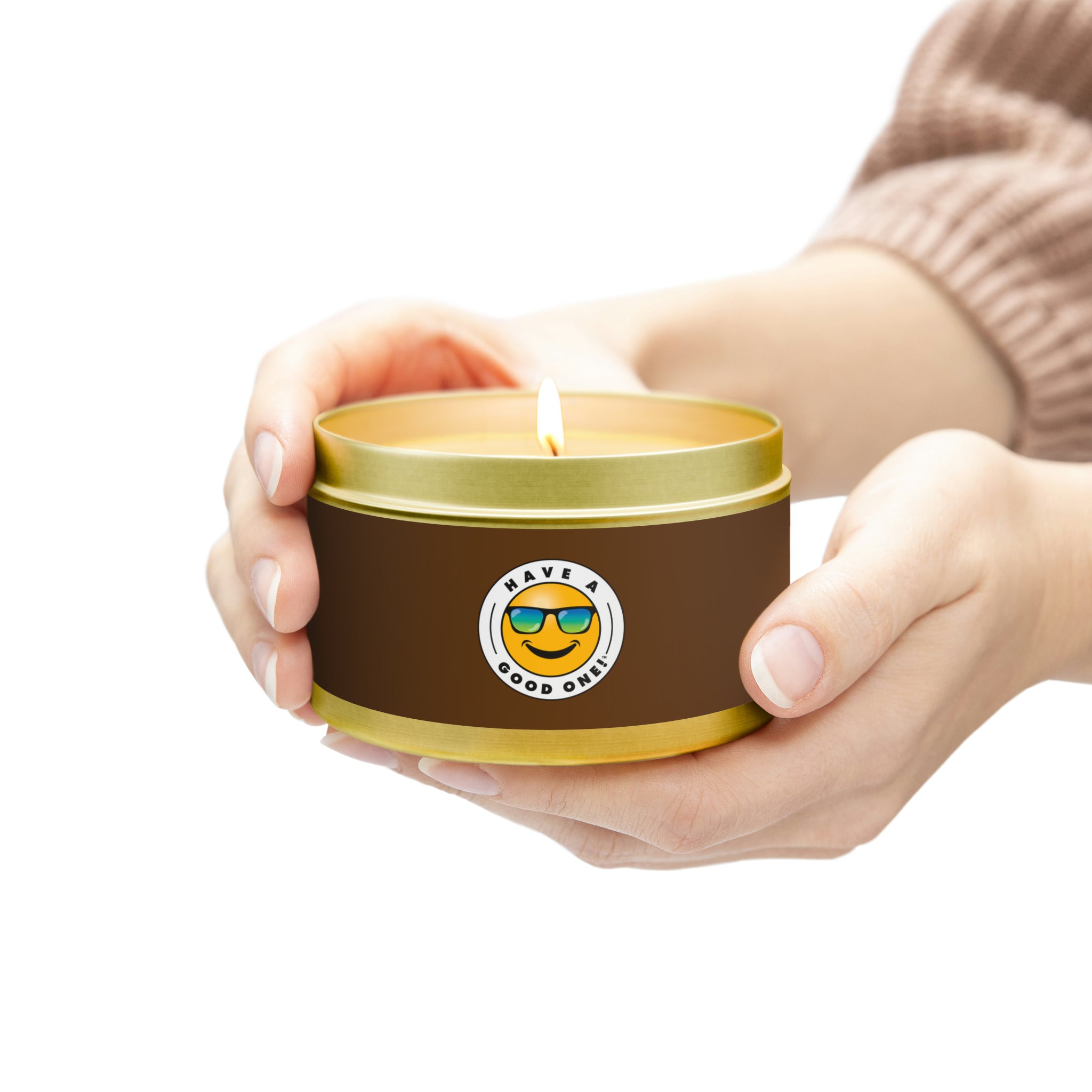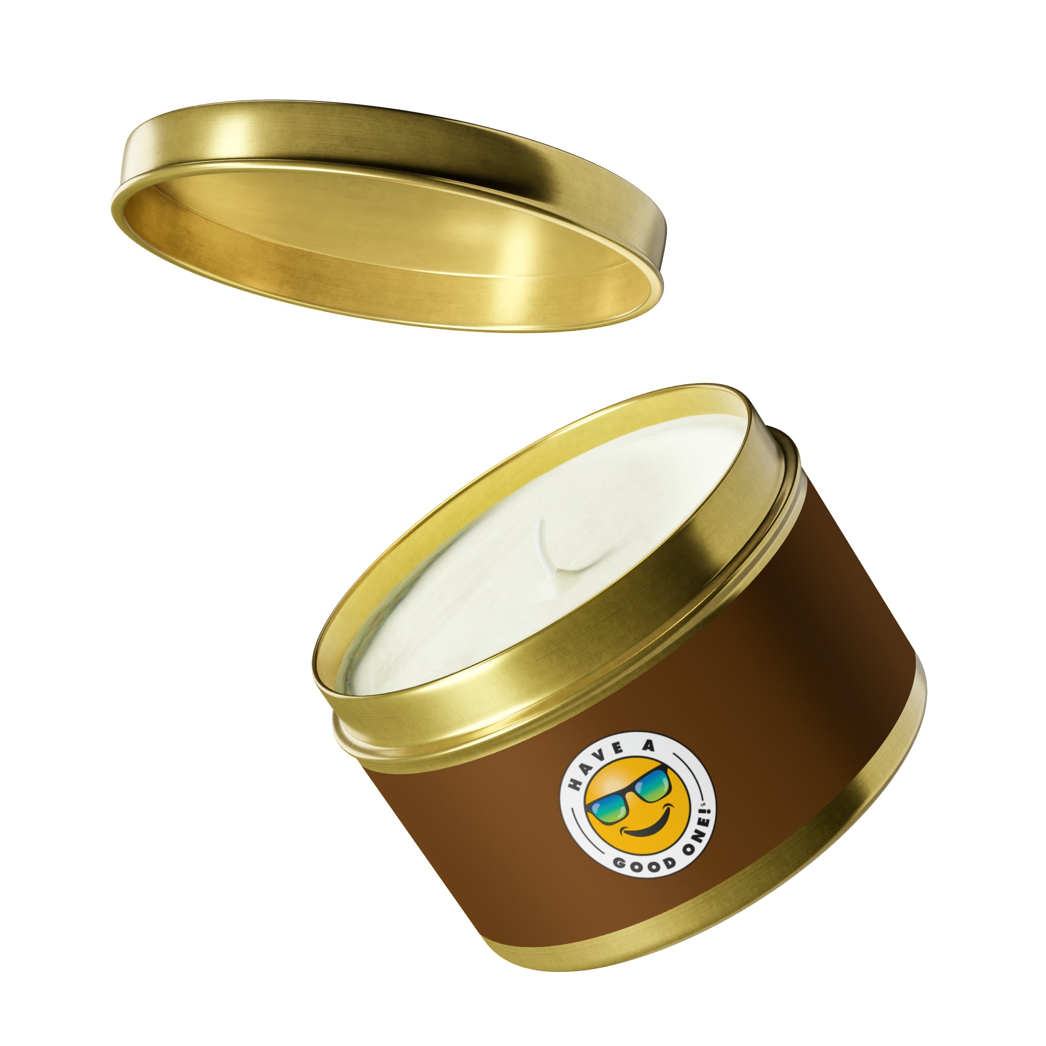 Tin Have A Good One! Candles With Lid - Brown Color With Blue Green Have A Good One Logo