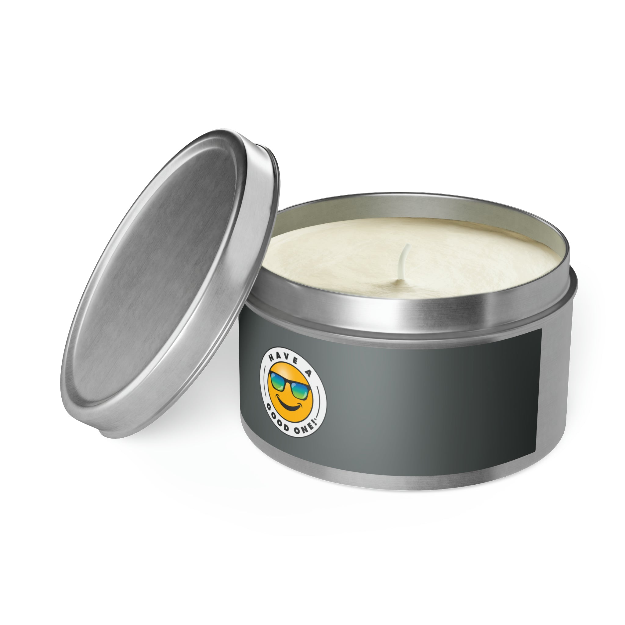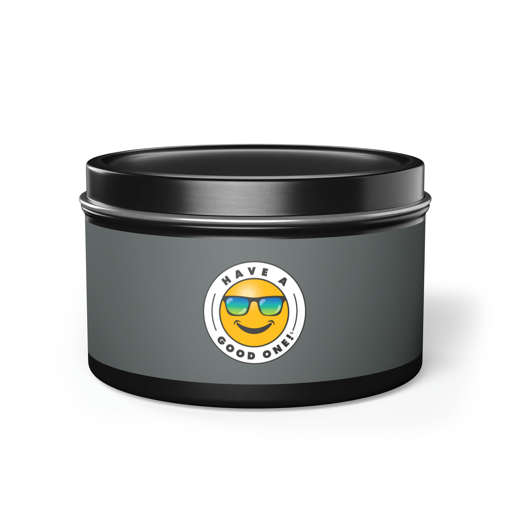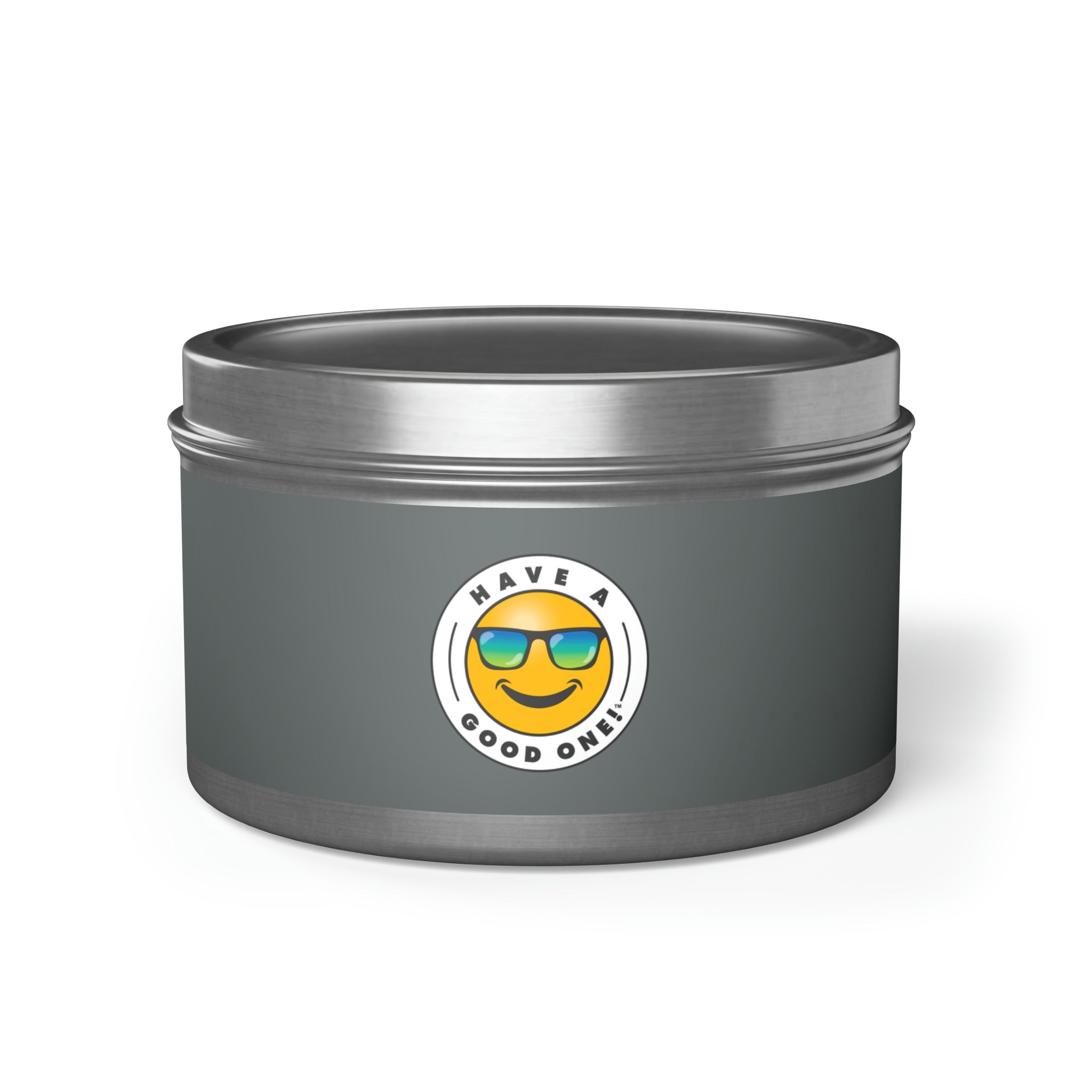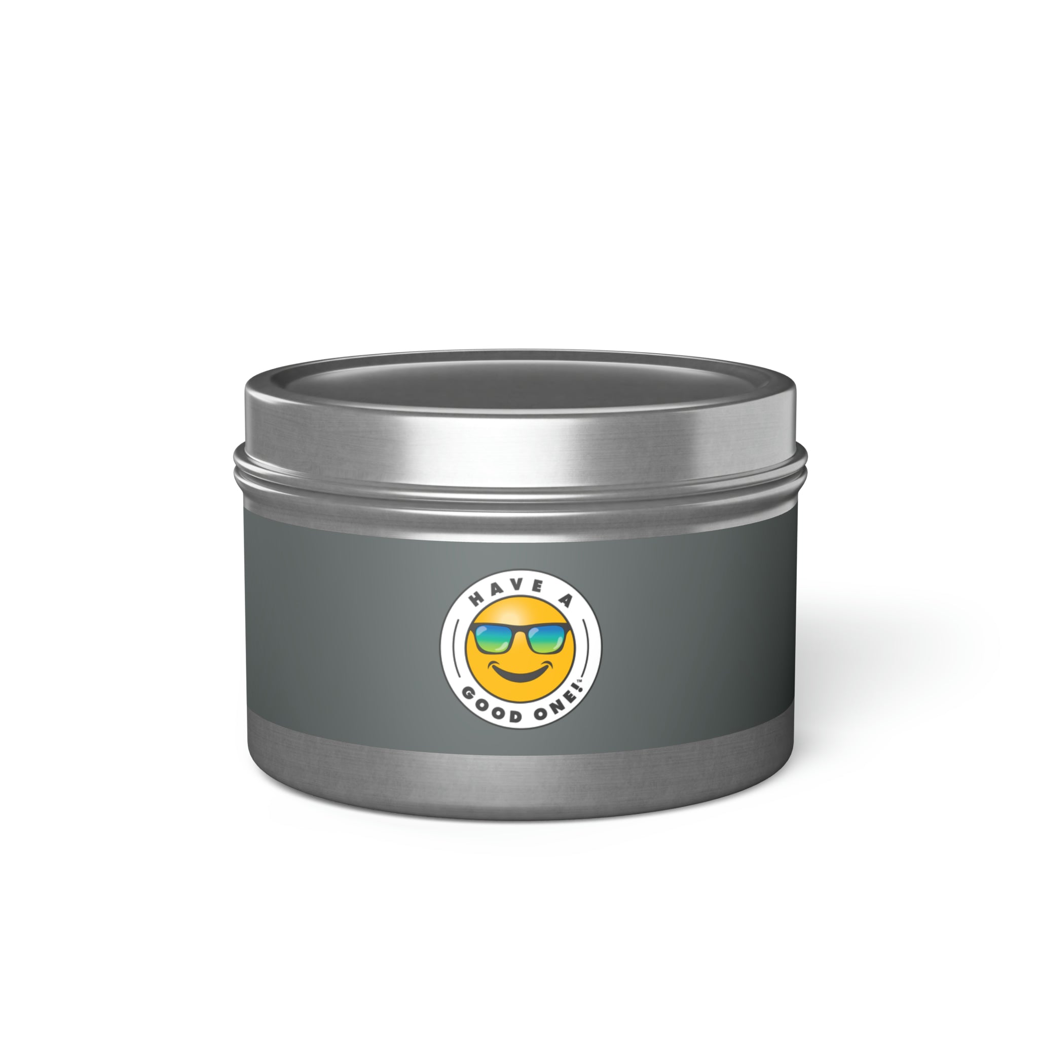 Tin Have A Good One! Candles With Lid - Dark Grey Color With Blue Green Have A Good One Logo
