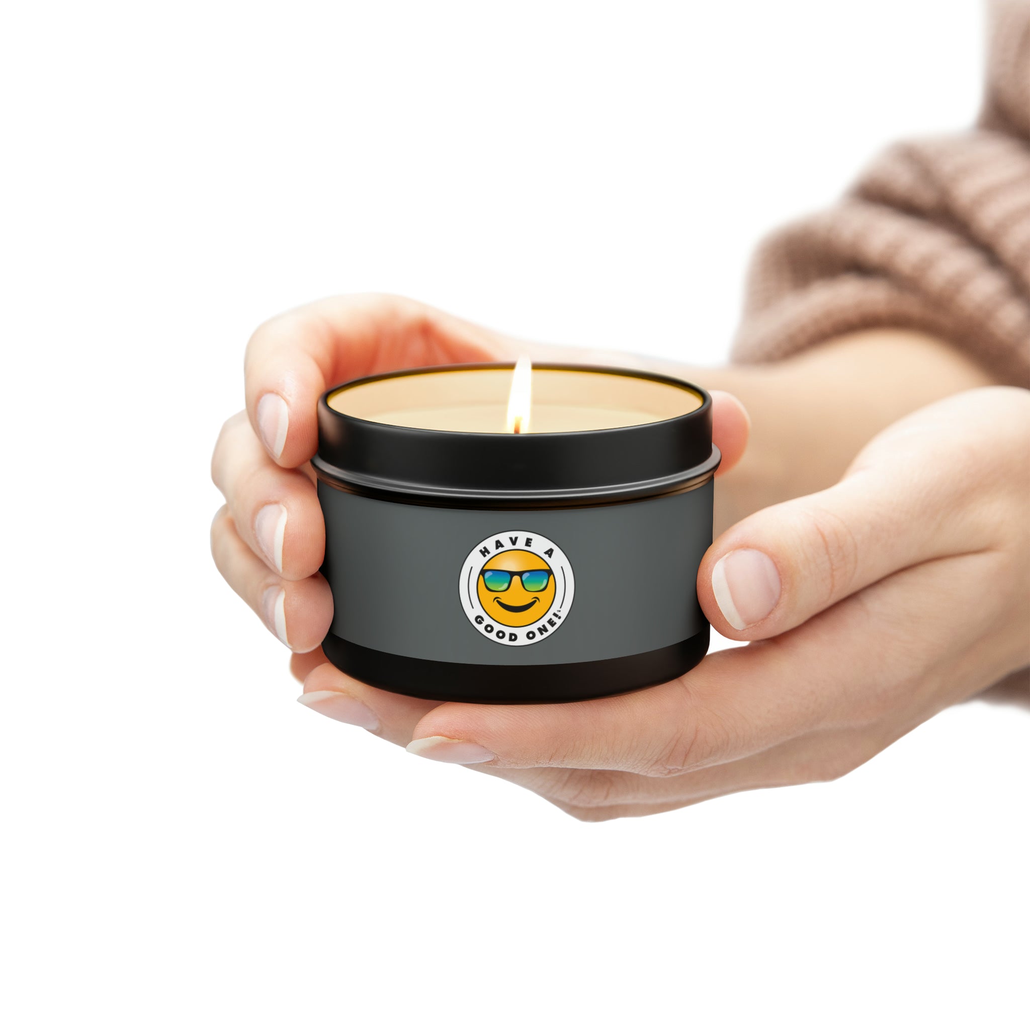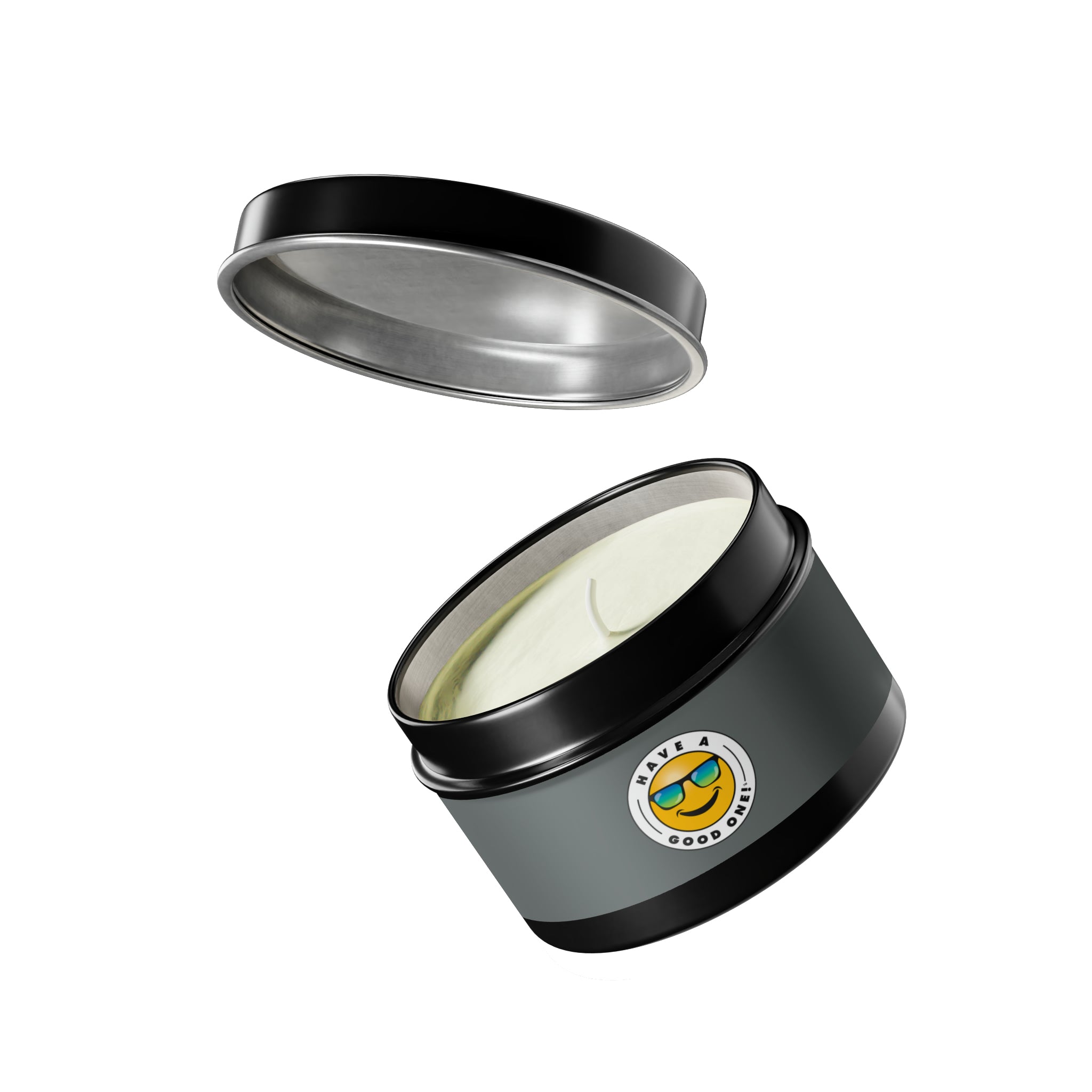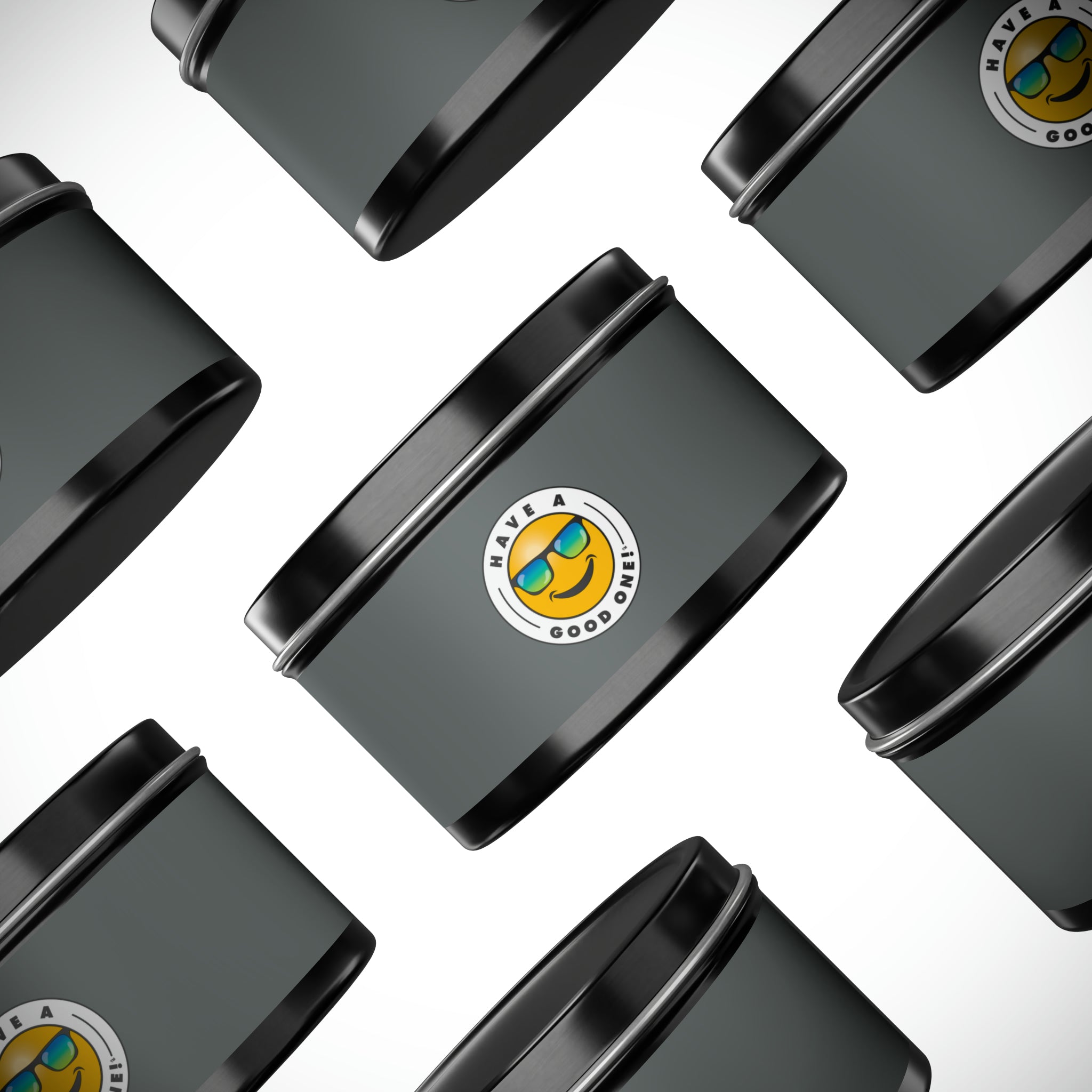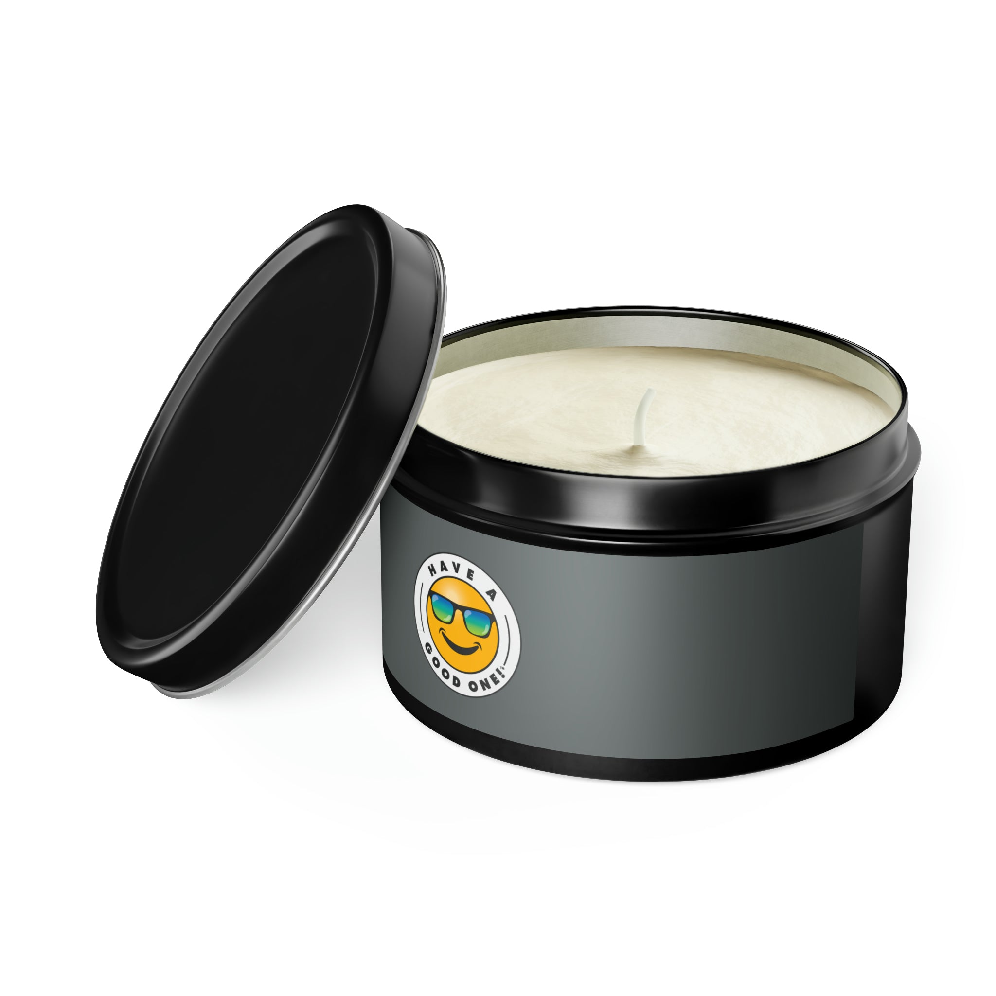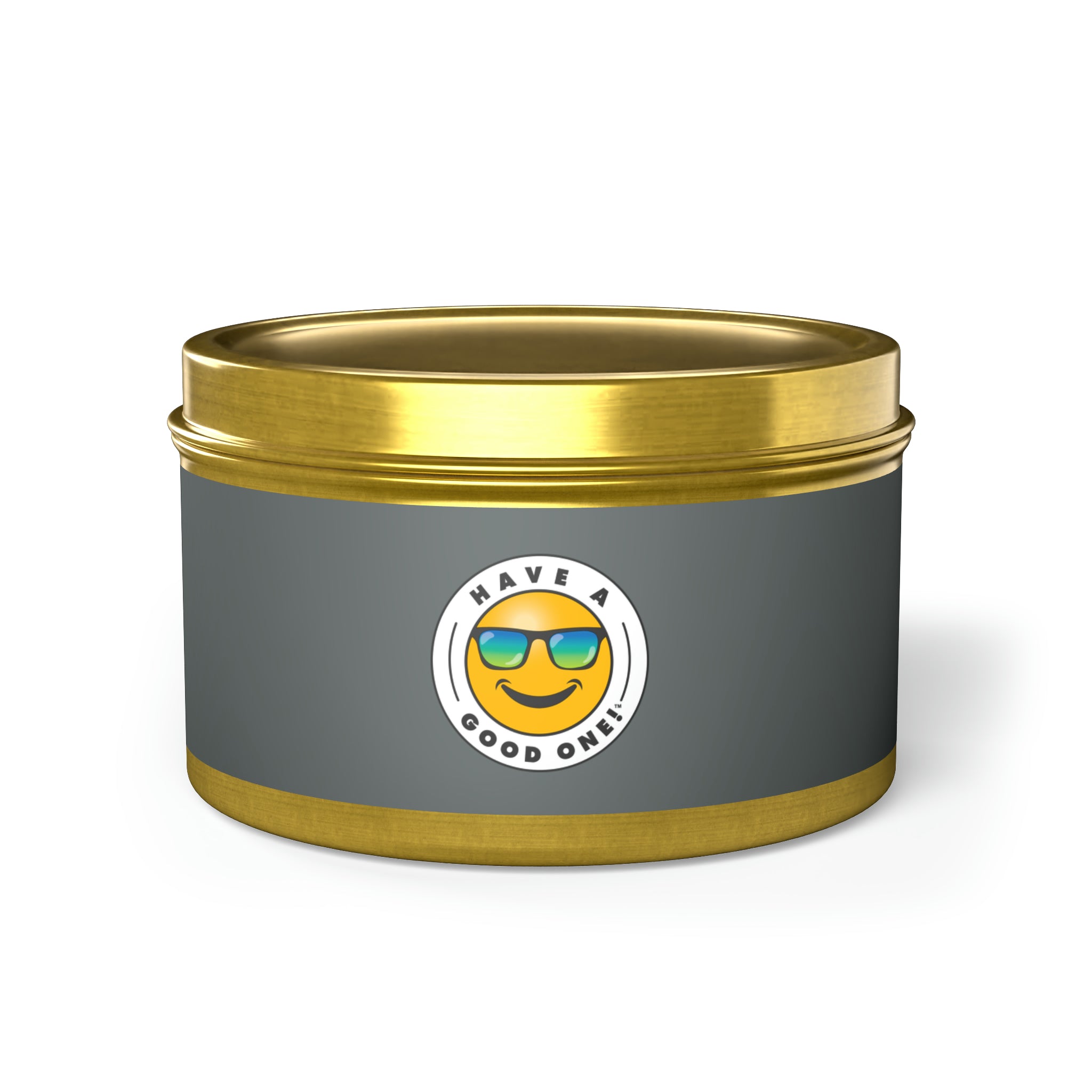 Tin Have A Good One! Candles With Lid - Dark Grey Color With Blue Green Have A Good One Logo