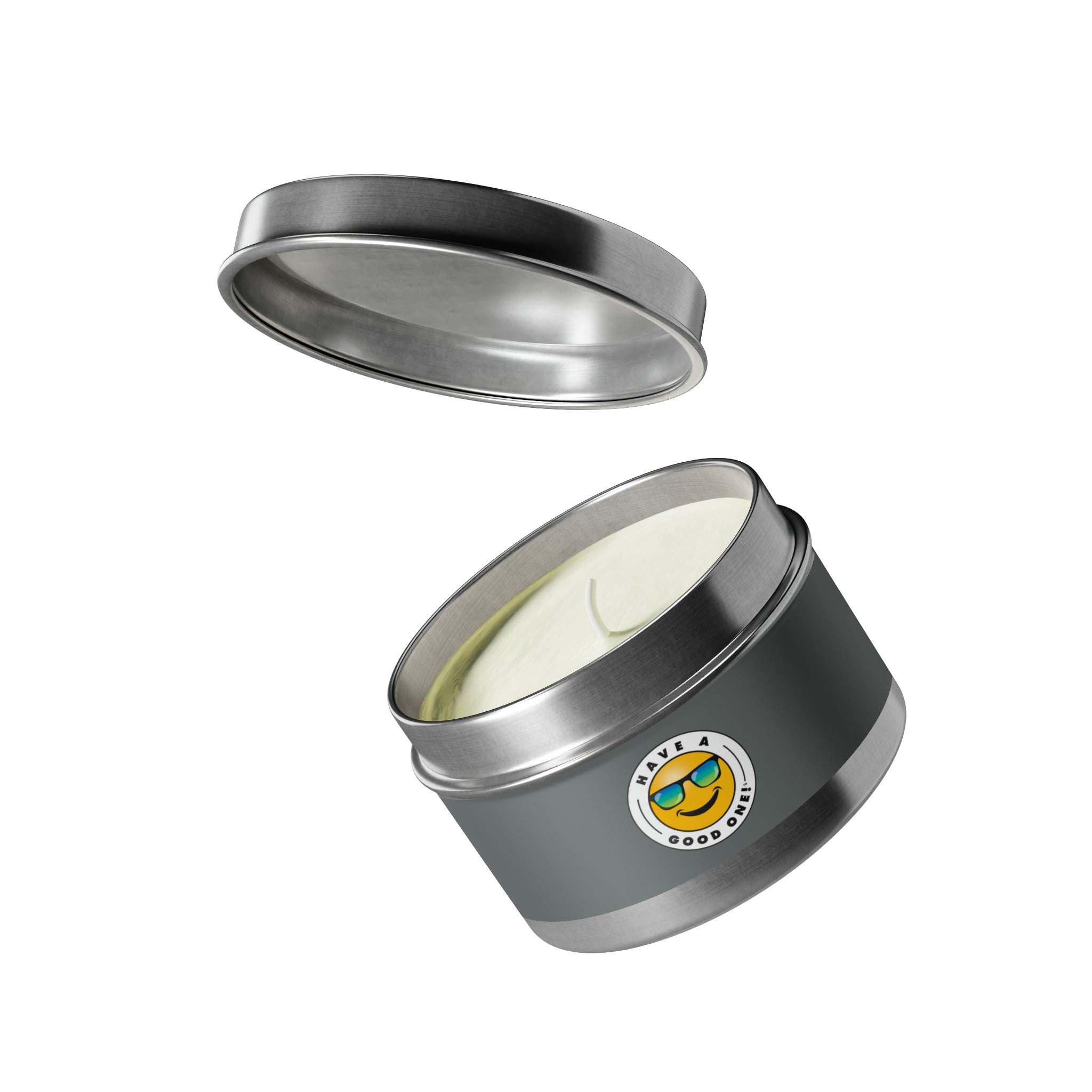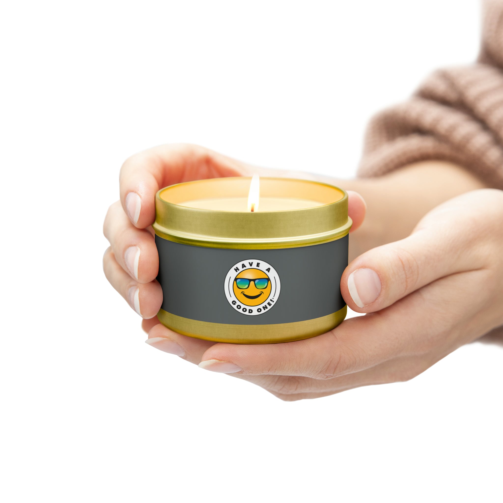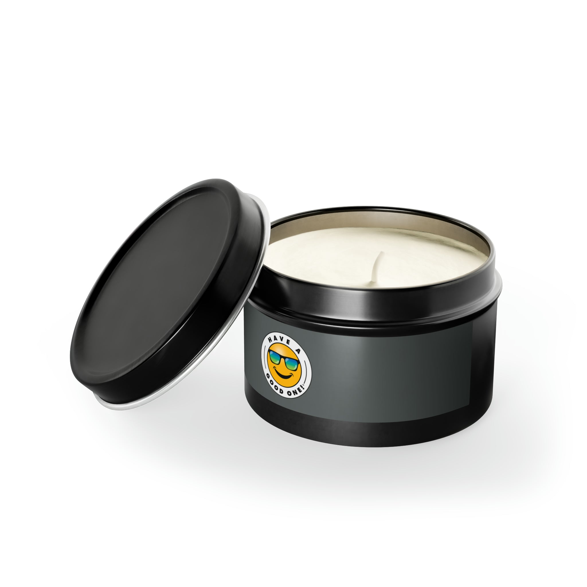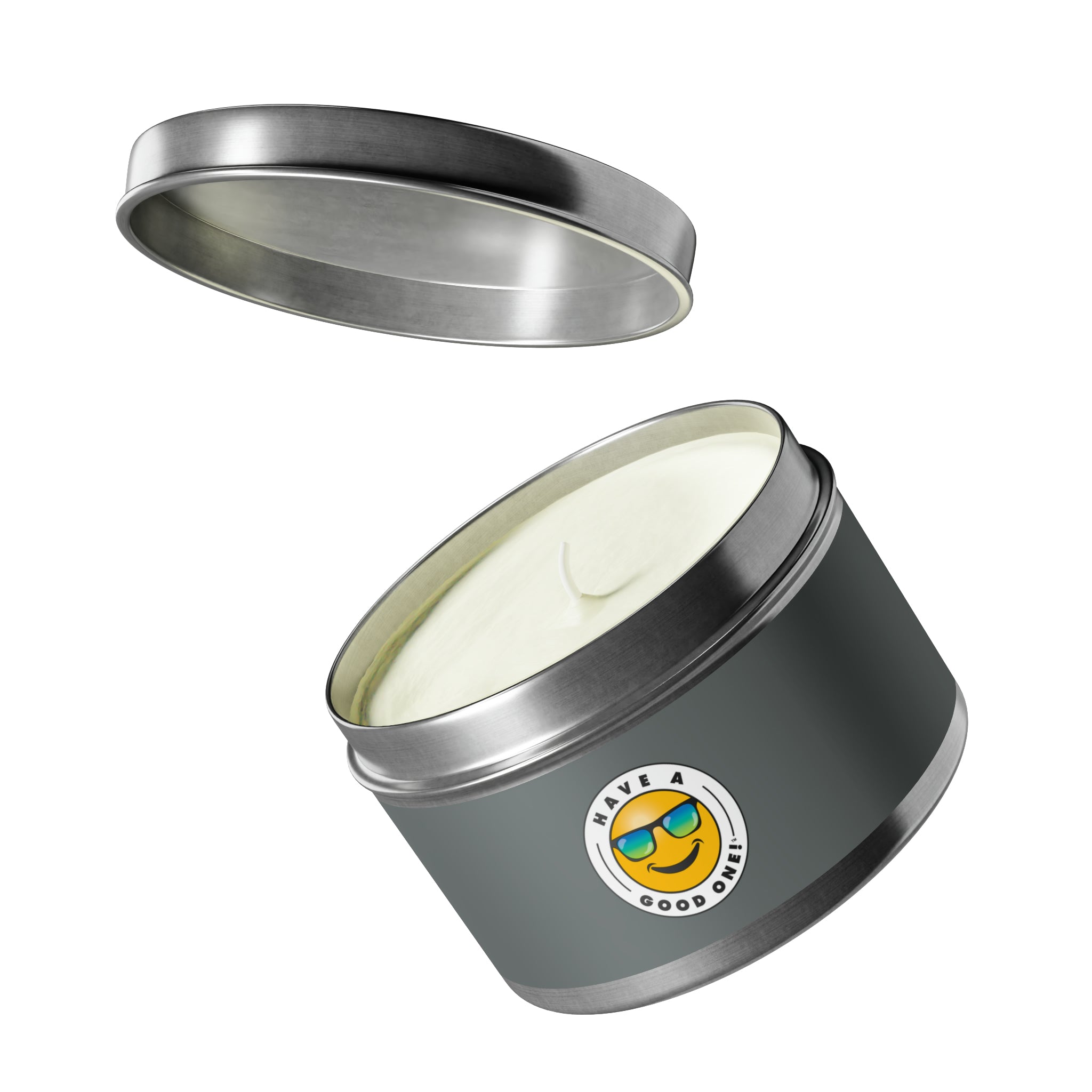 Tin Have A Good One! Candles With Lid - Dark Grey Color With Blue Green Have A Good One Logo
