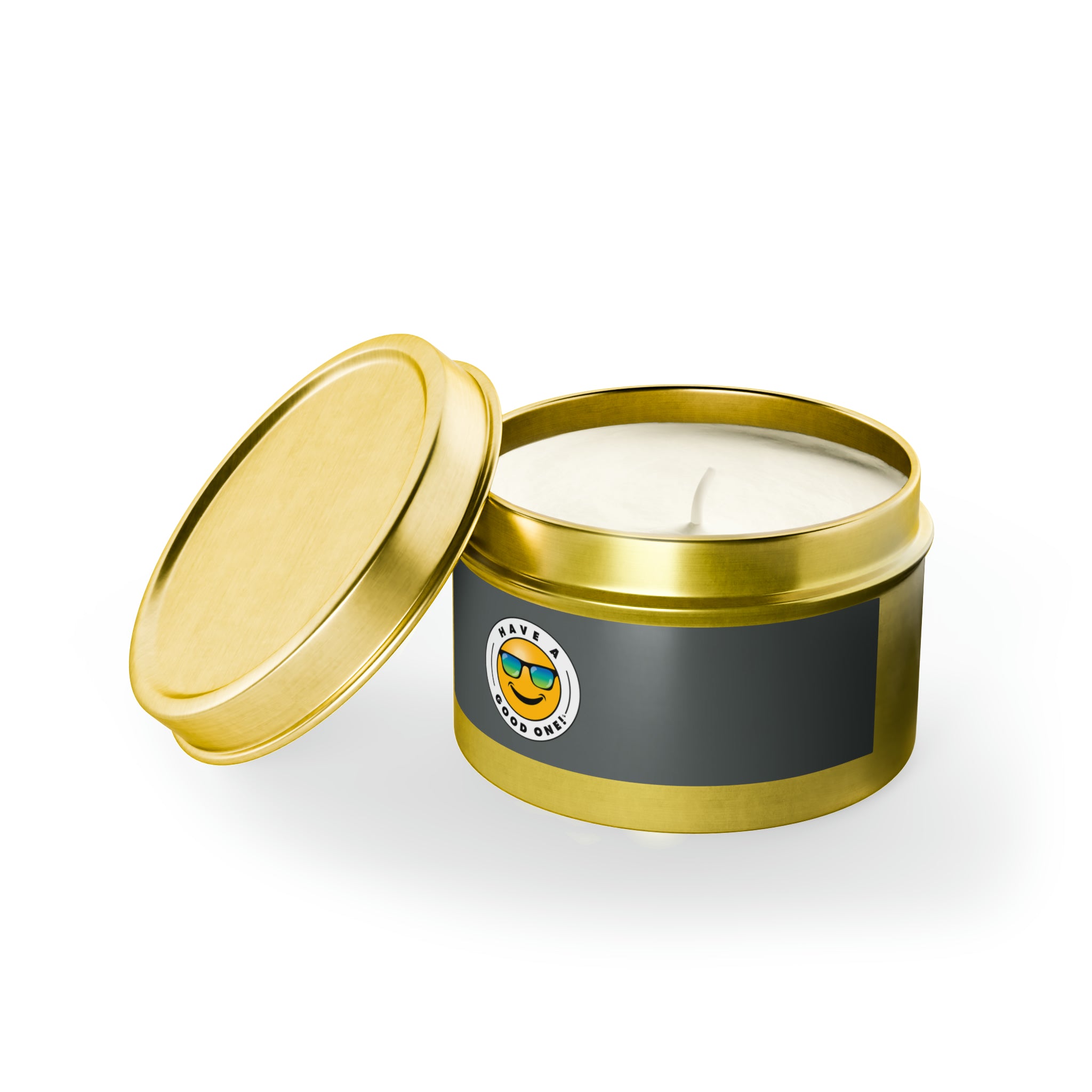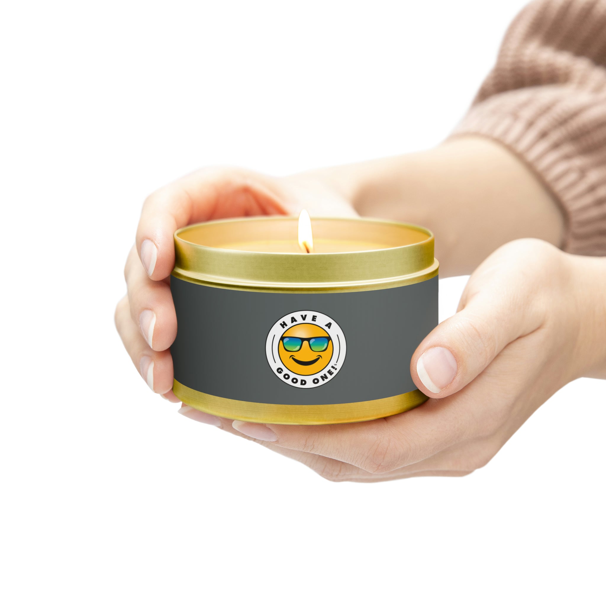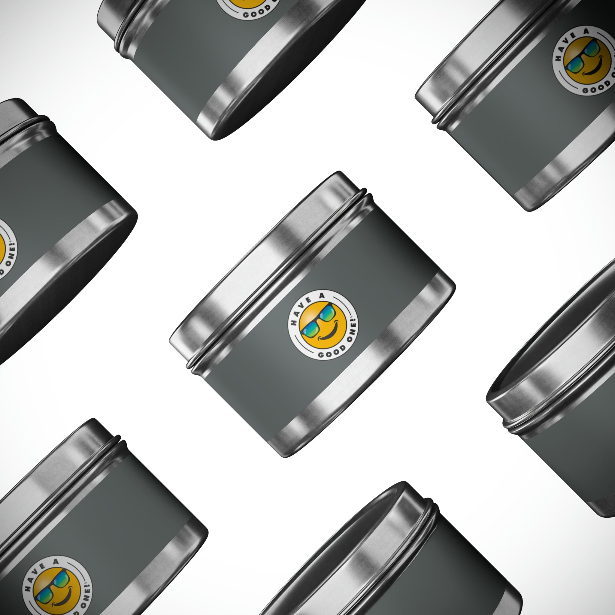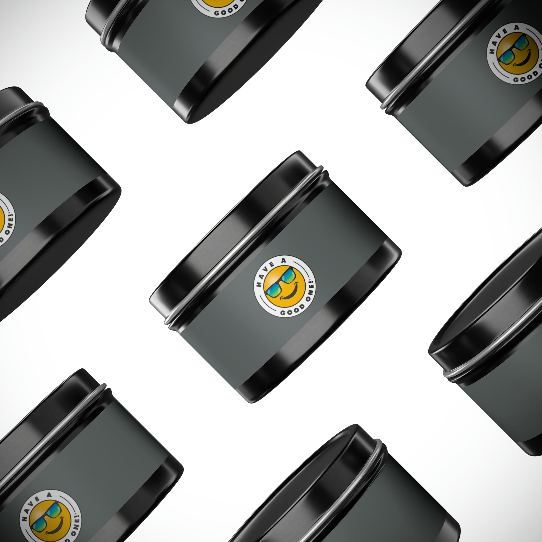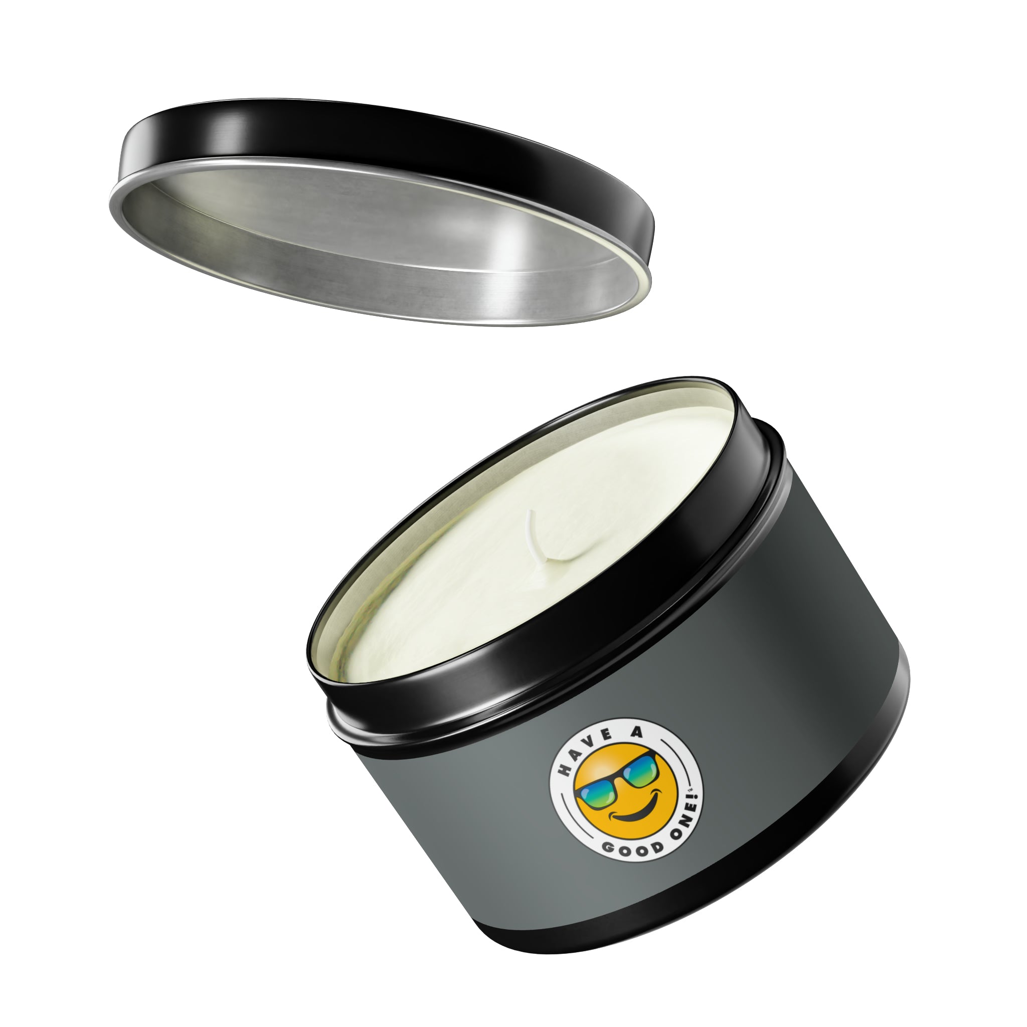 Tin Have A Good One! Candles With Lid - Dark Grey Color With Blue Green Have A Good One Logo