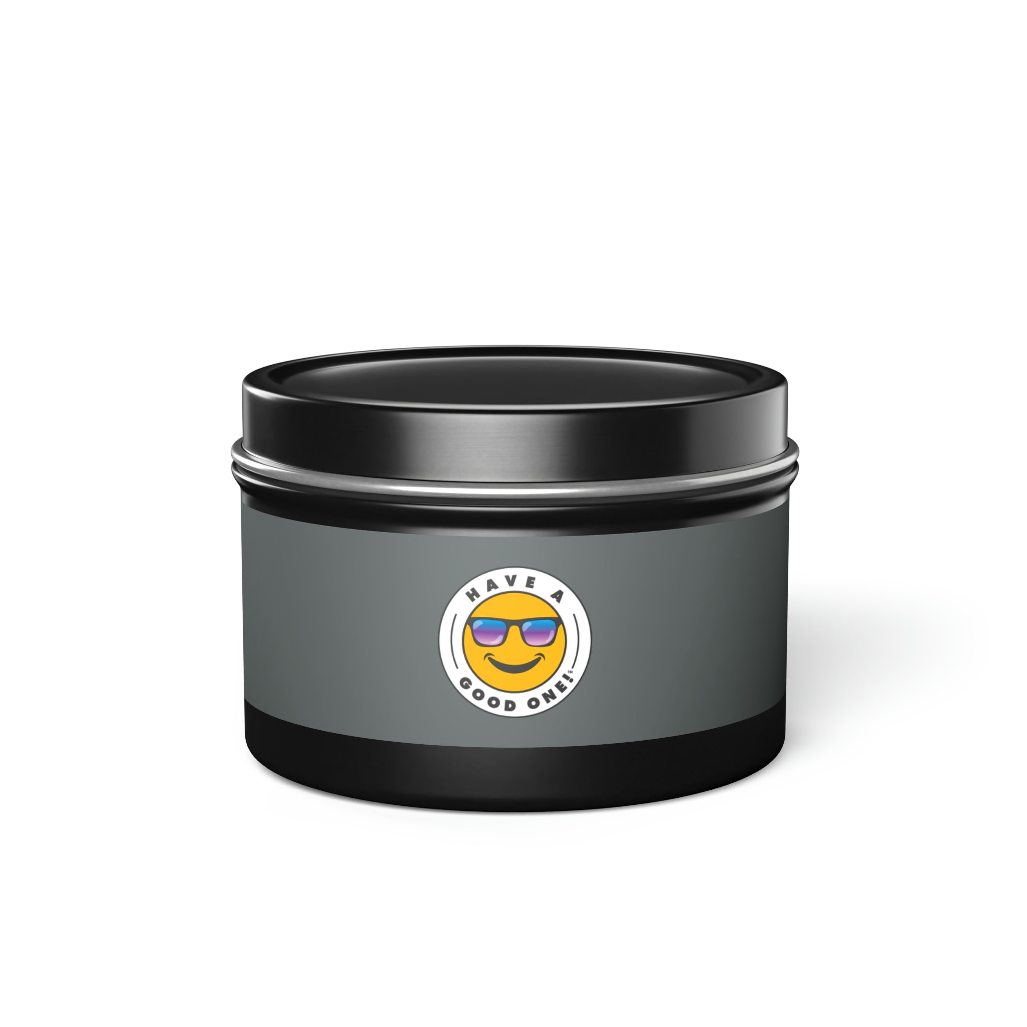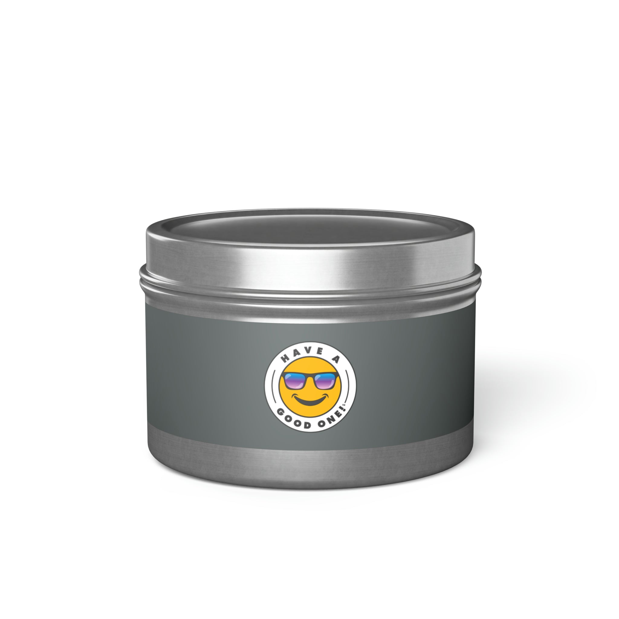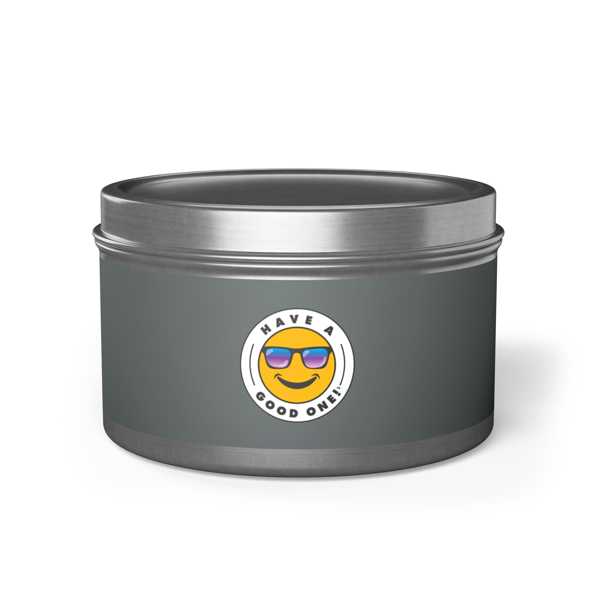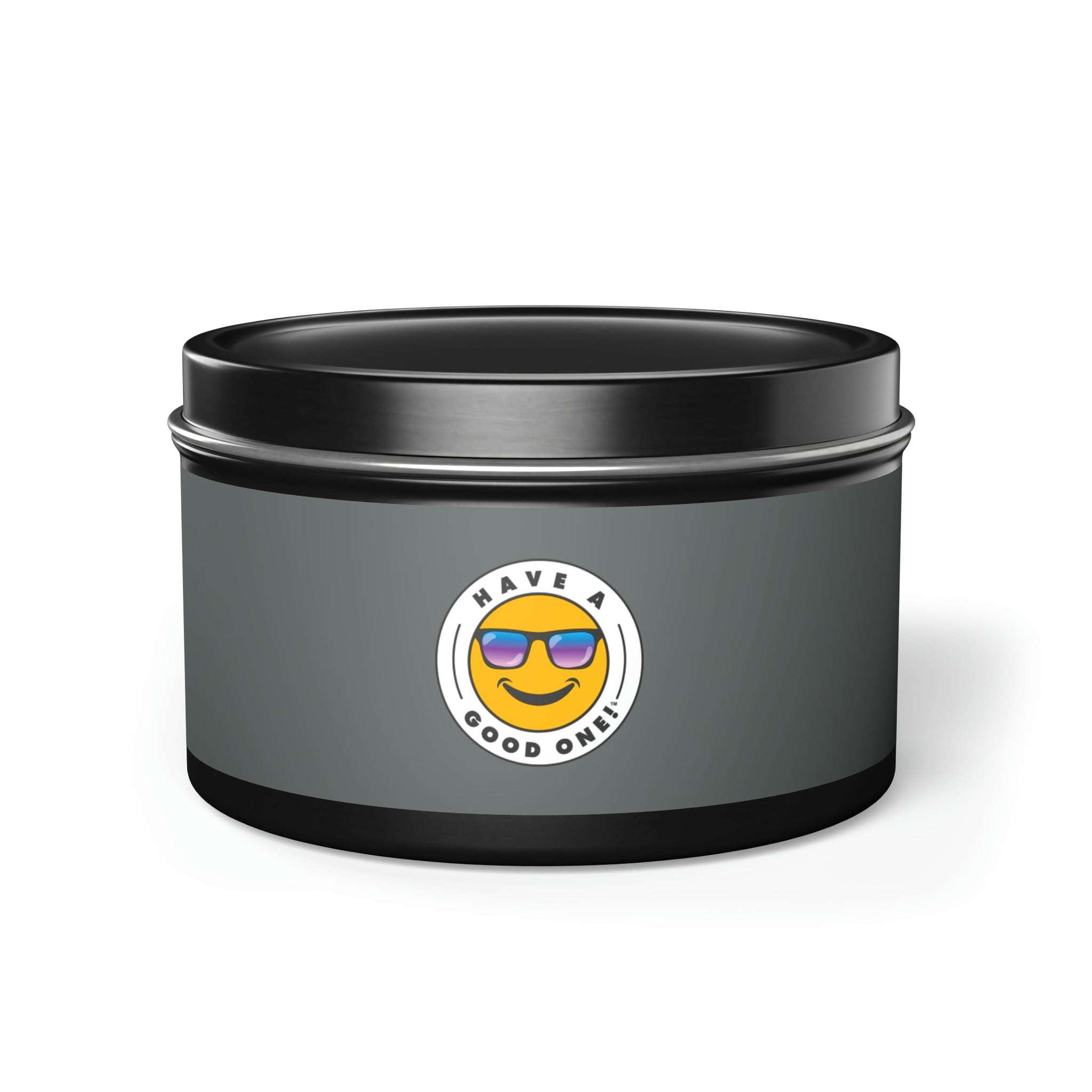 Tin Have A Good One! Candles With Lid - Dark Grey Color With Blue Purple Have A Good One Logo