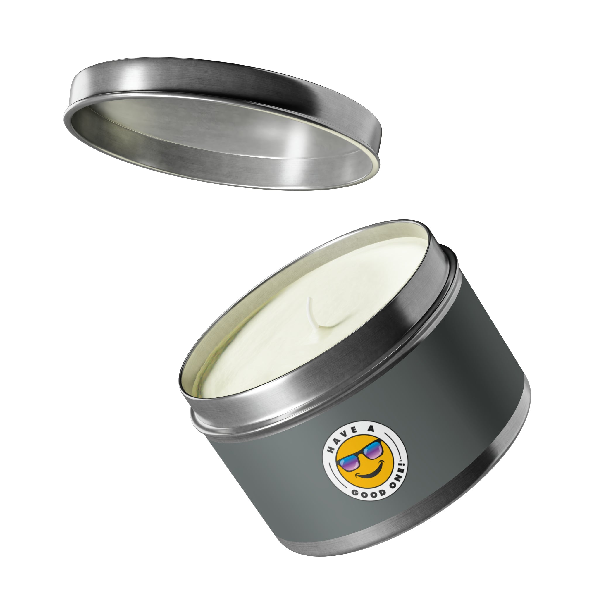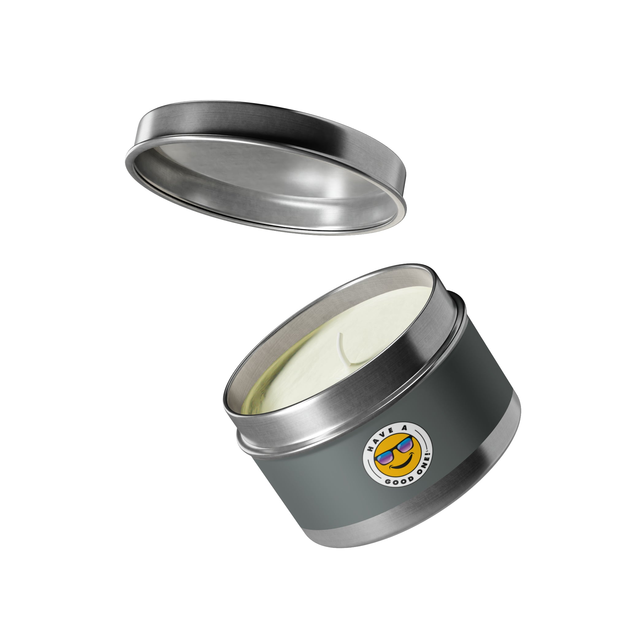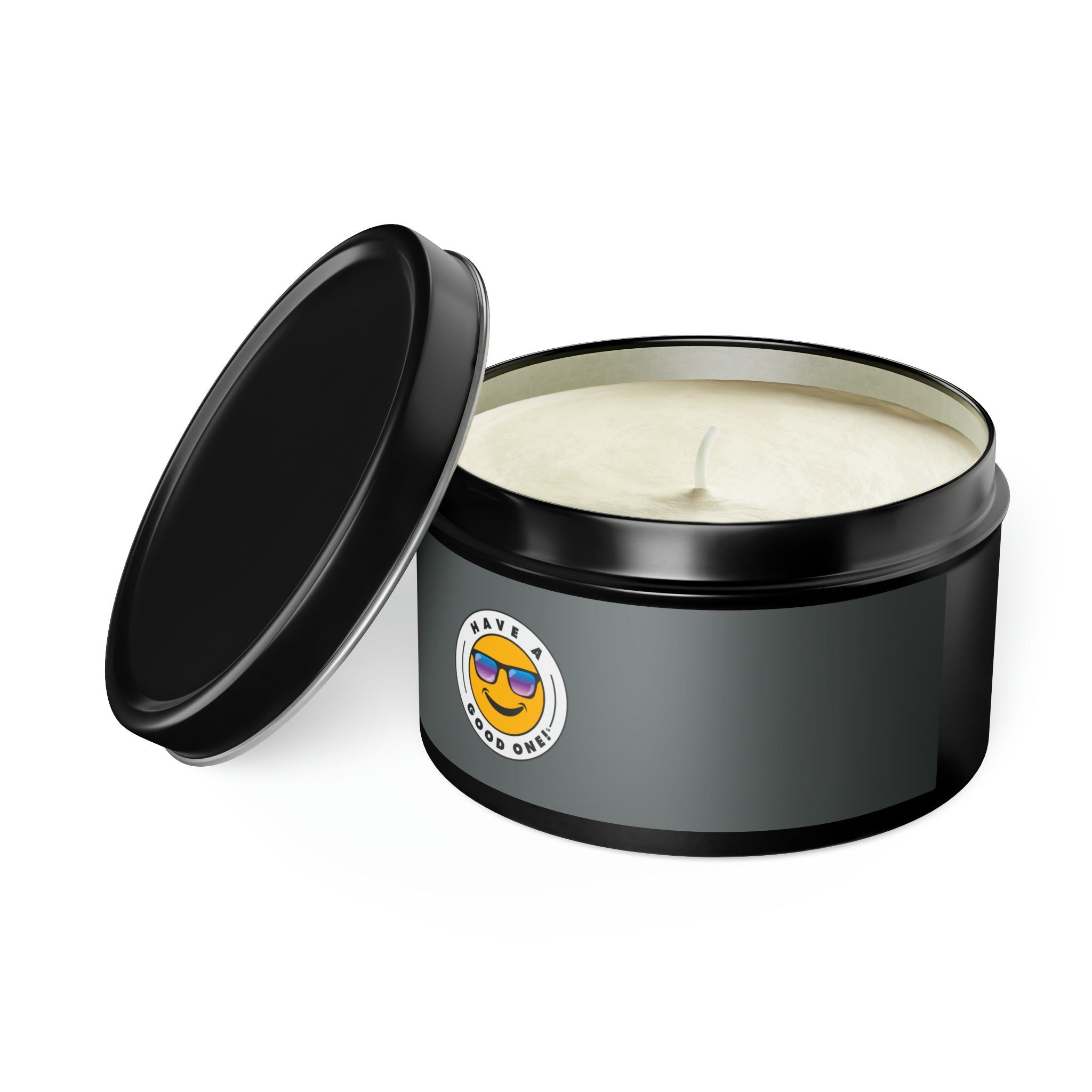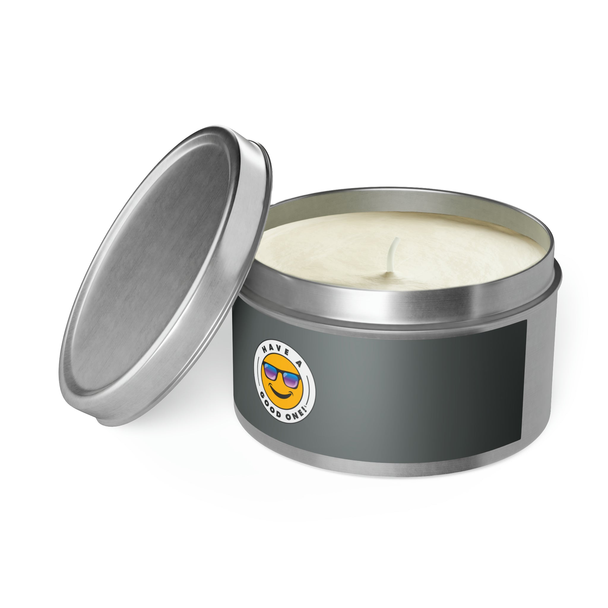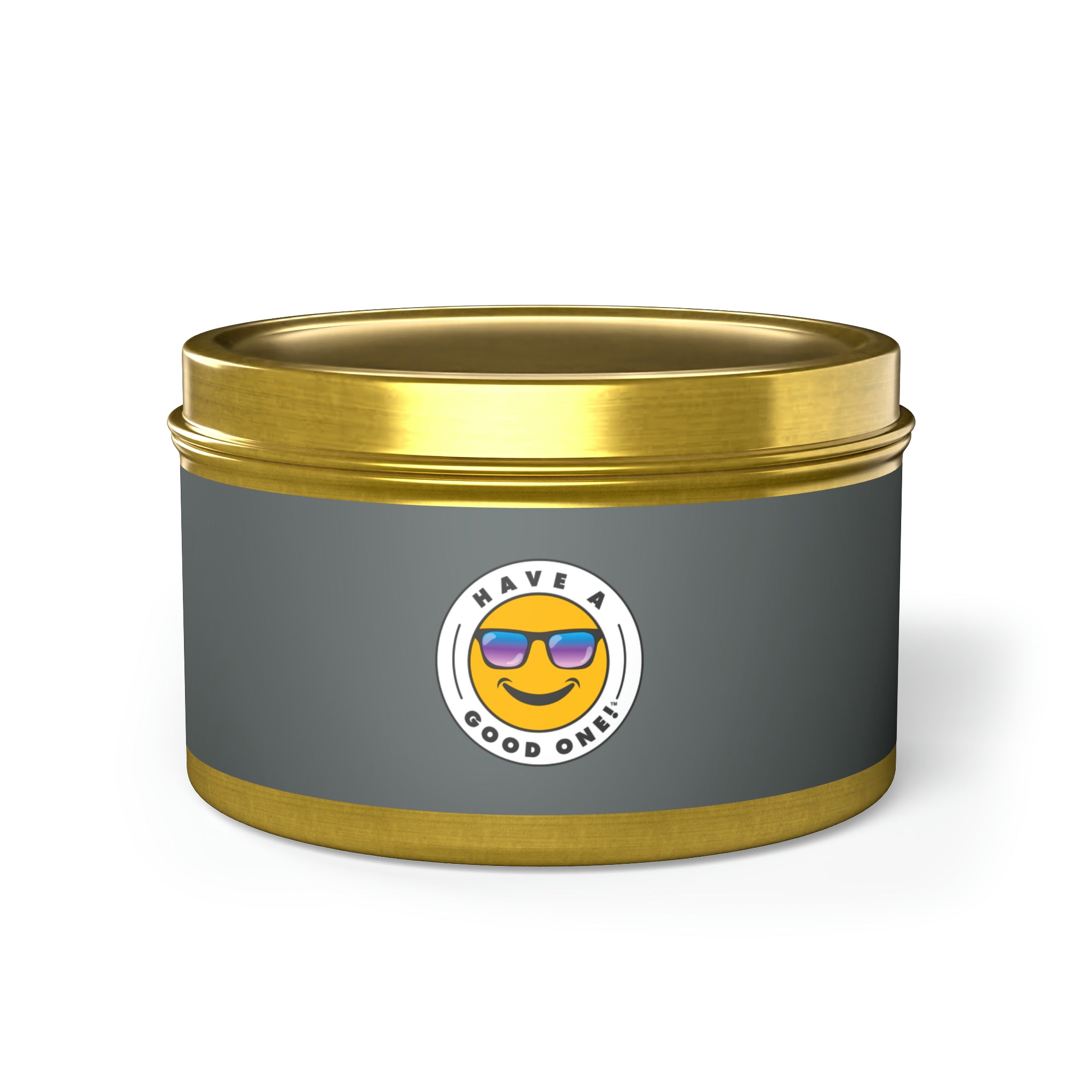 Tin Have A Good One! Candles With Lid - Dark Grey Color With Blue Purple Have A Good One Logo