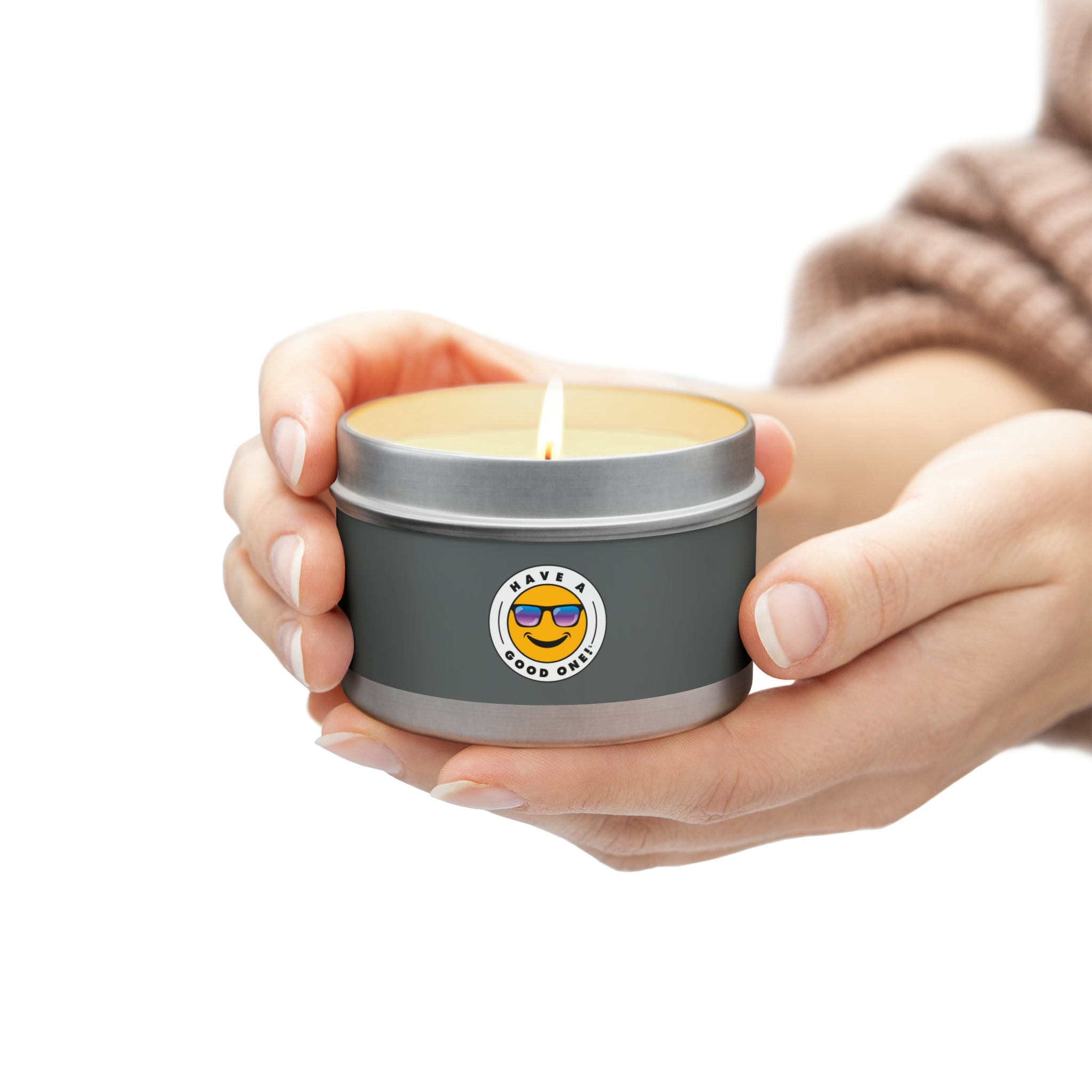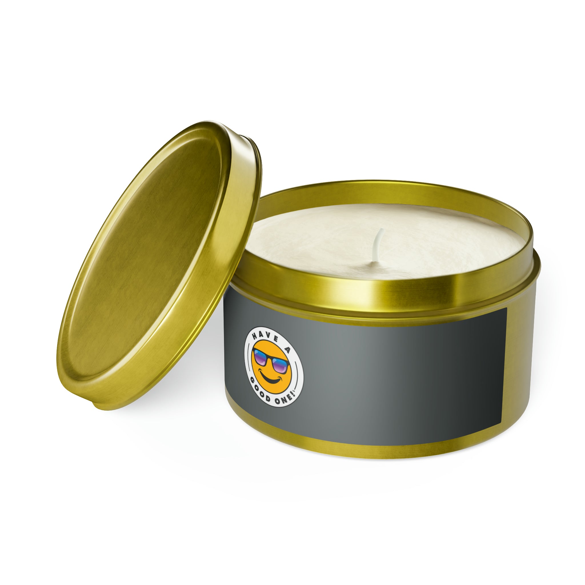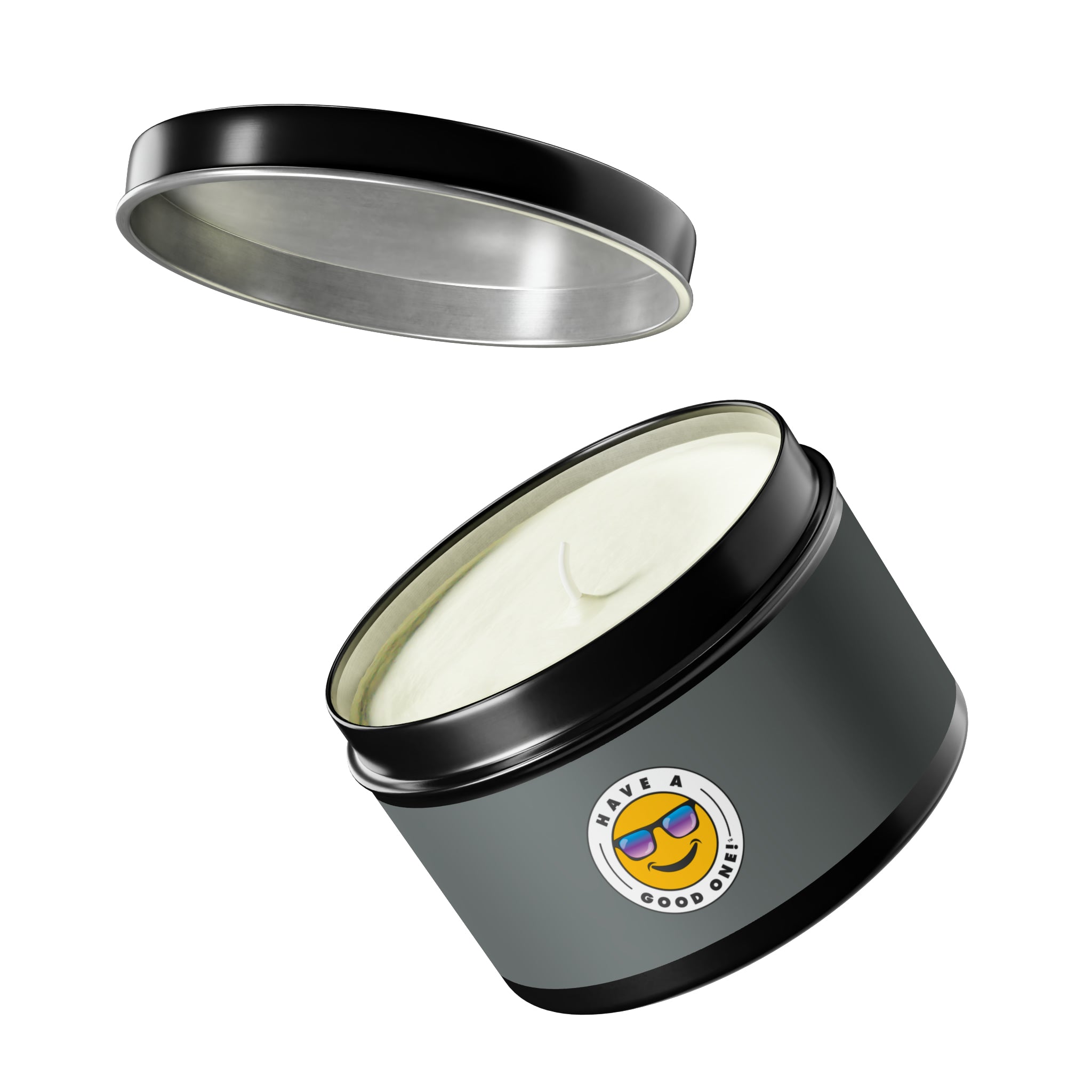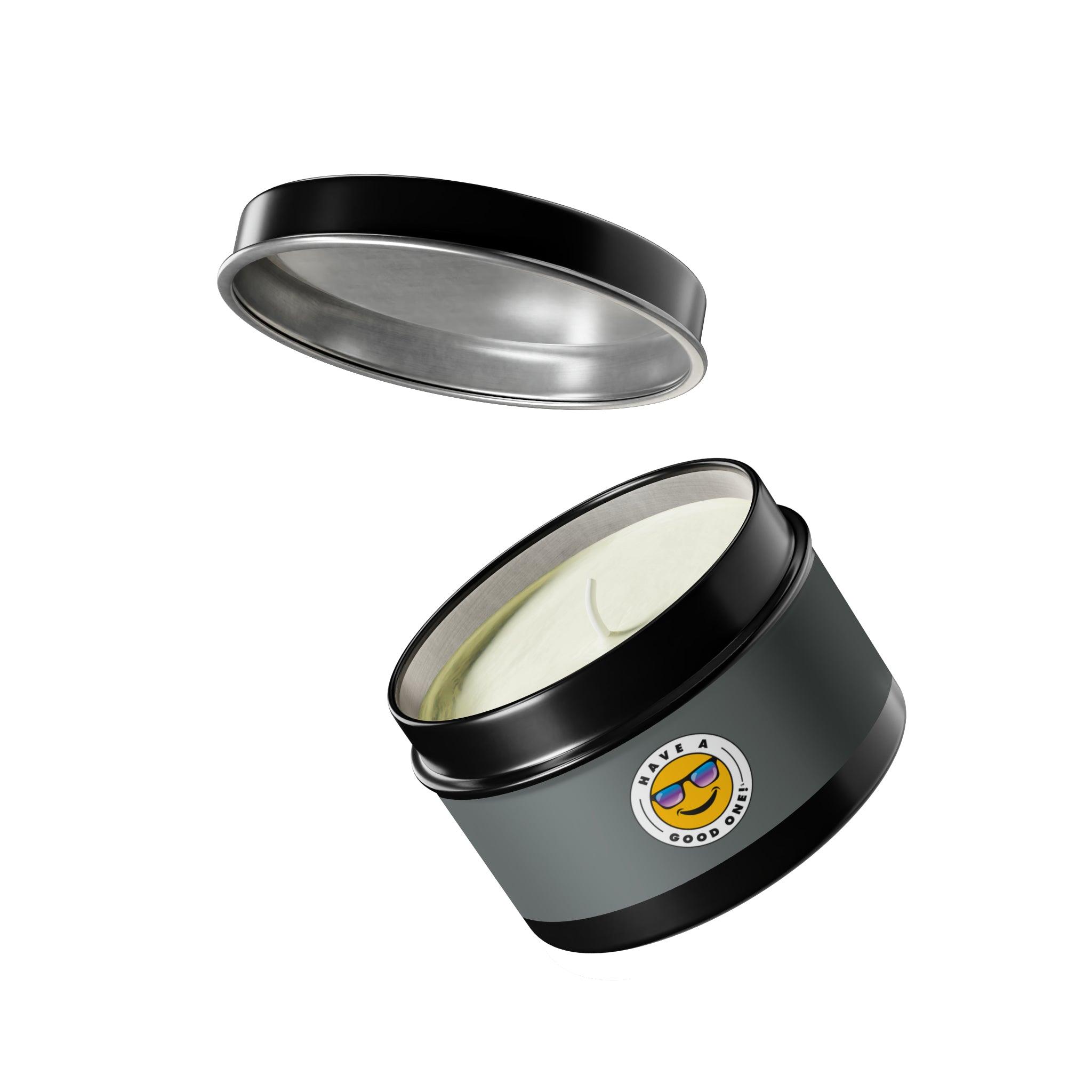 Tin Have A Good One! Candles With Lid - Dark Grey Color With Blue Purple Have A Good One Logo