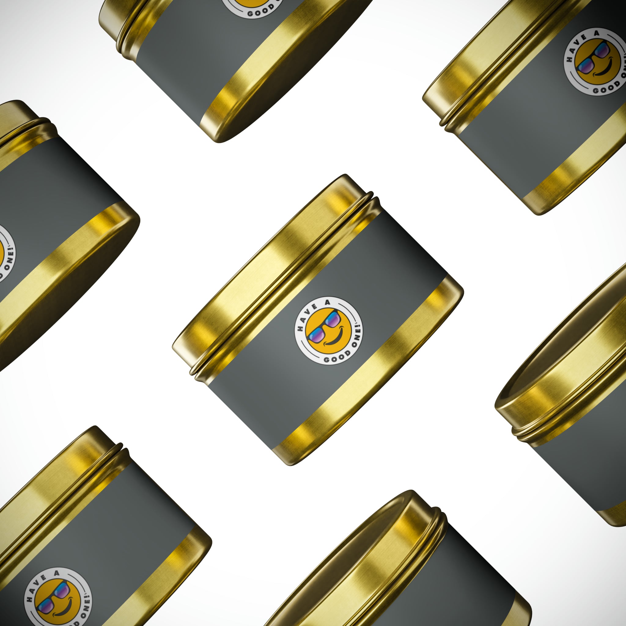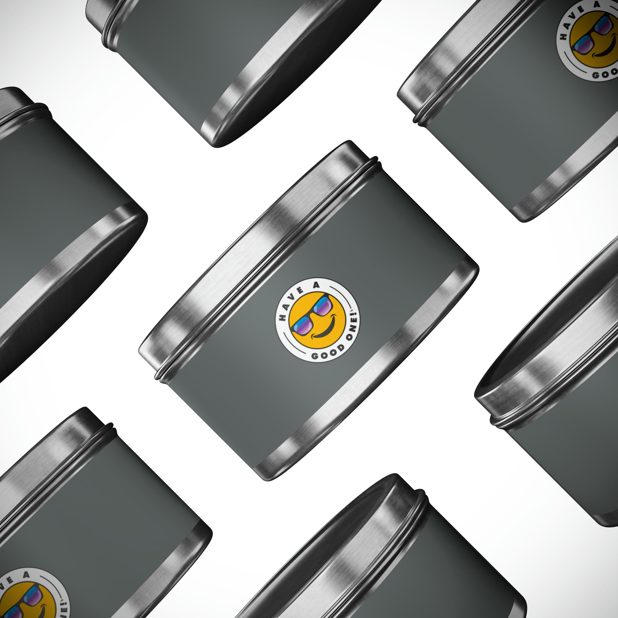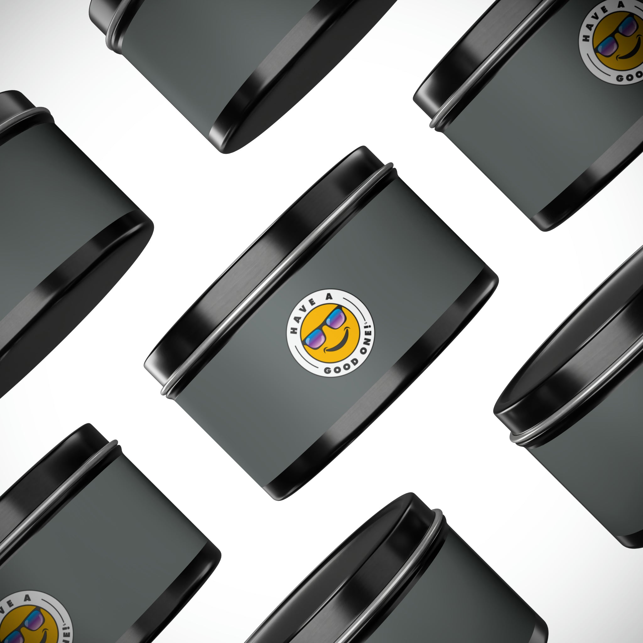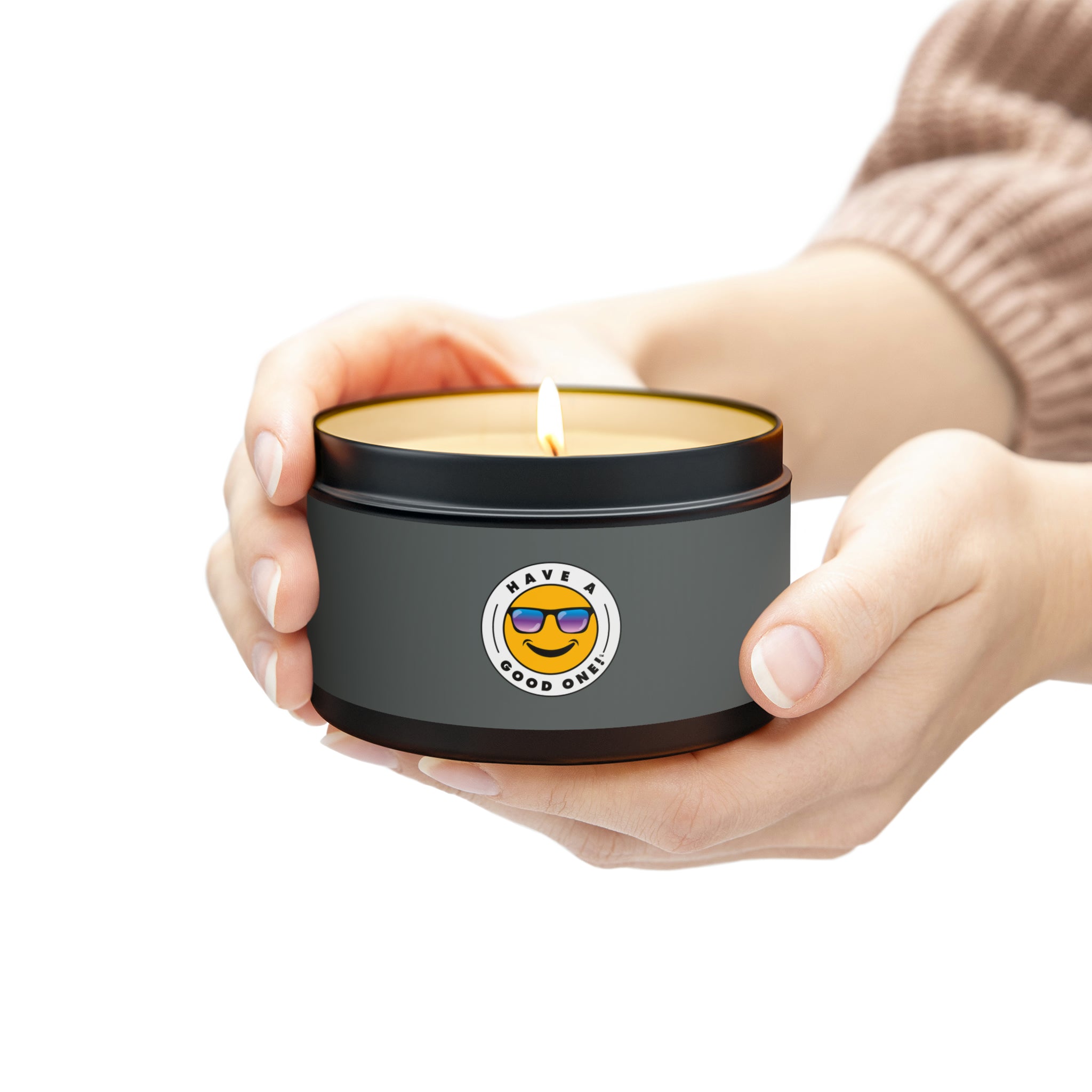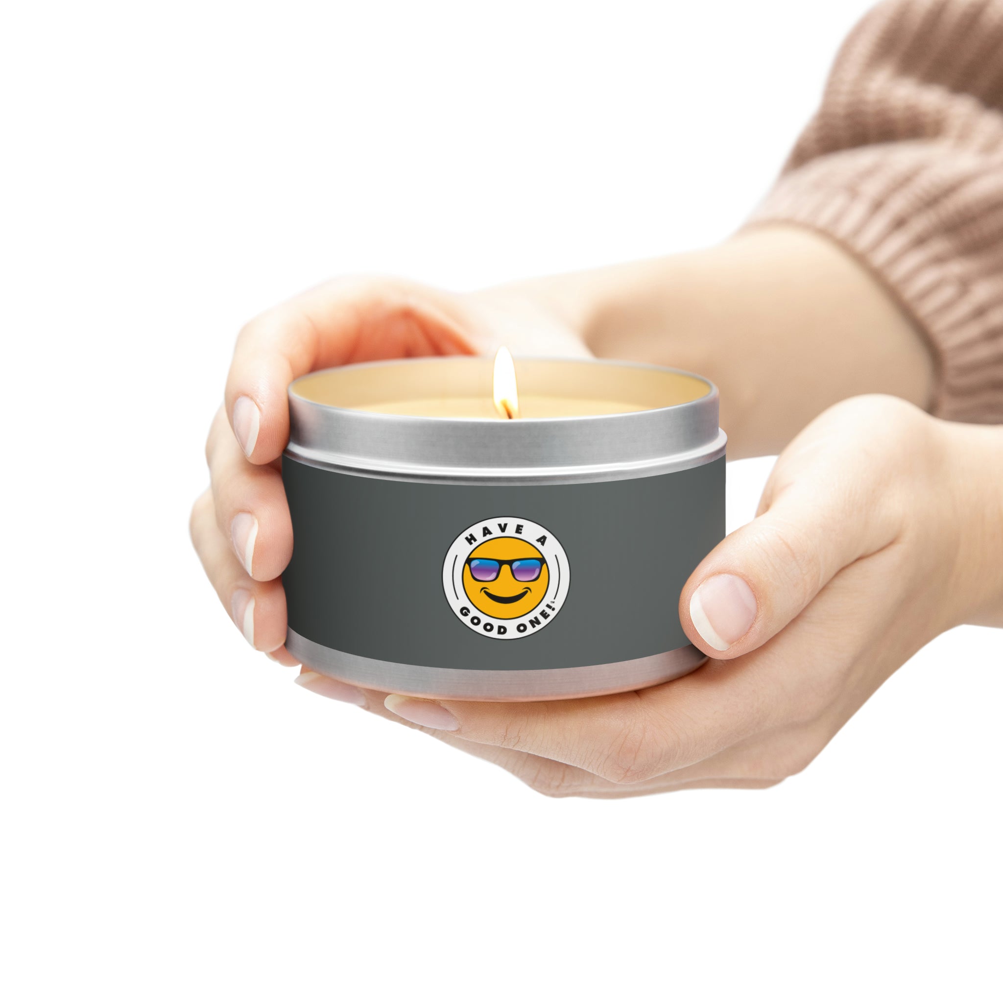 Tin Have A Good One! Candles With Lid - Dark Grey Color With Blue Purple Have A Good One Logo