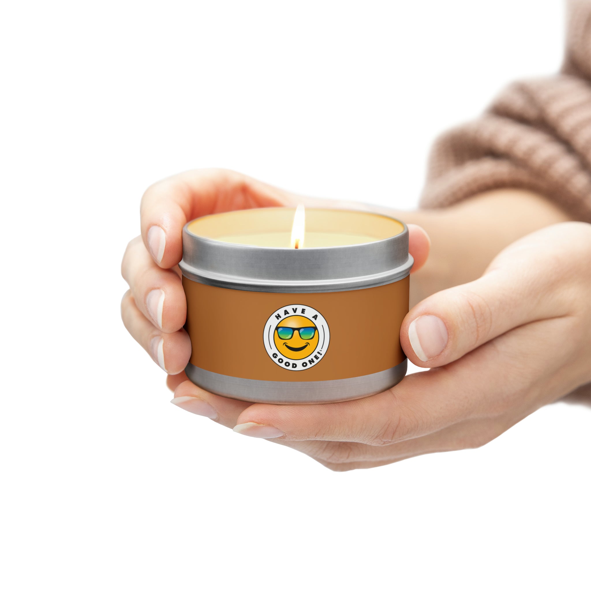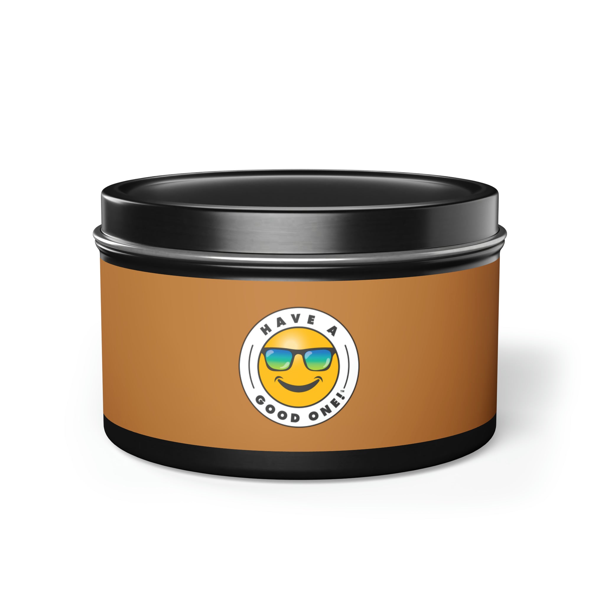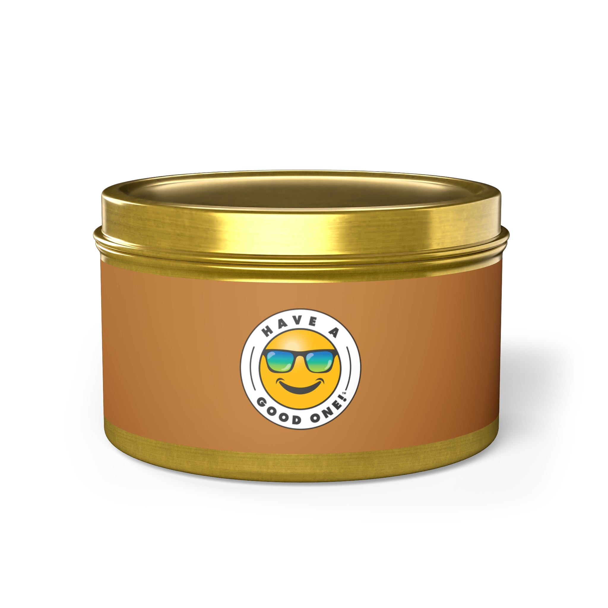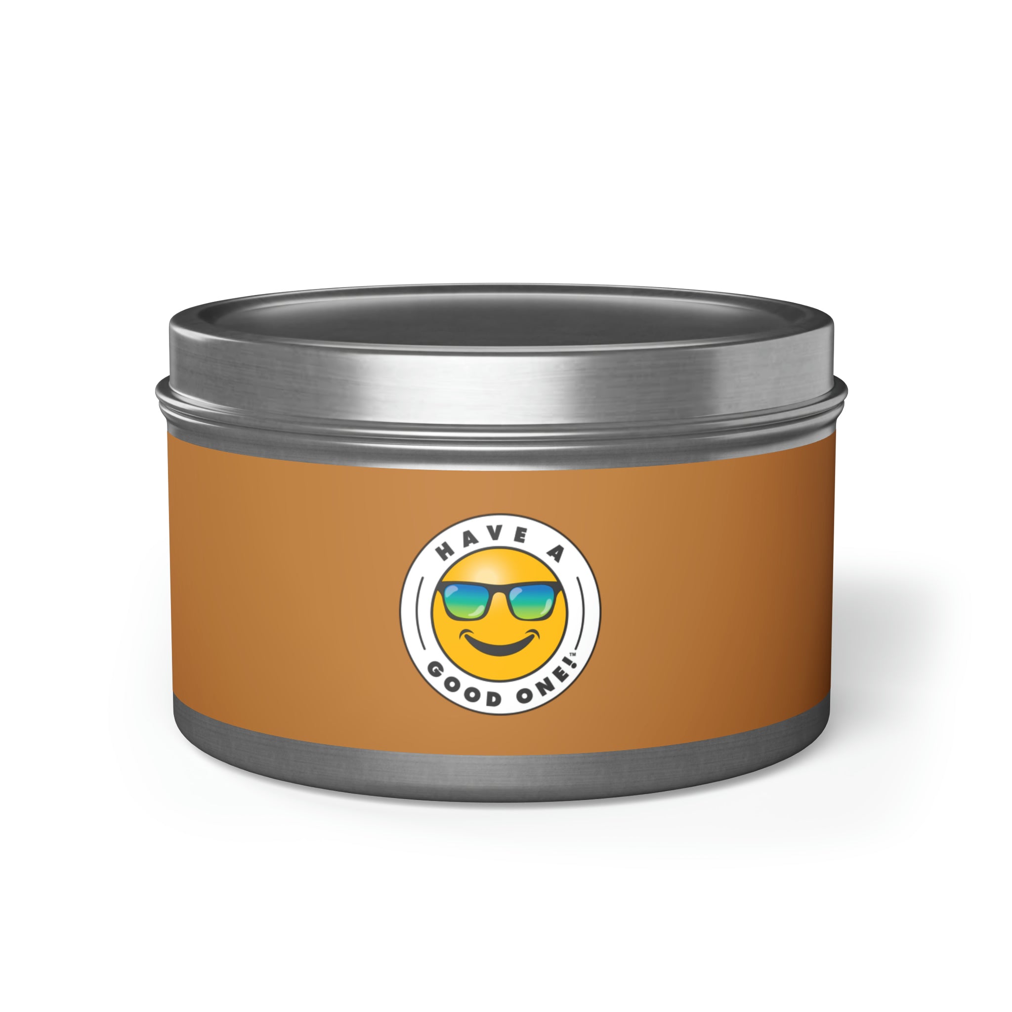 Tin Have A Good One! Candles With Lid - Light Brown Color With Blue Green Have A Good One Logo