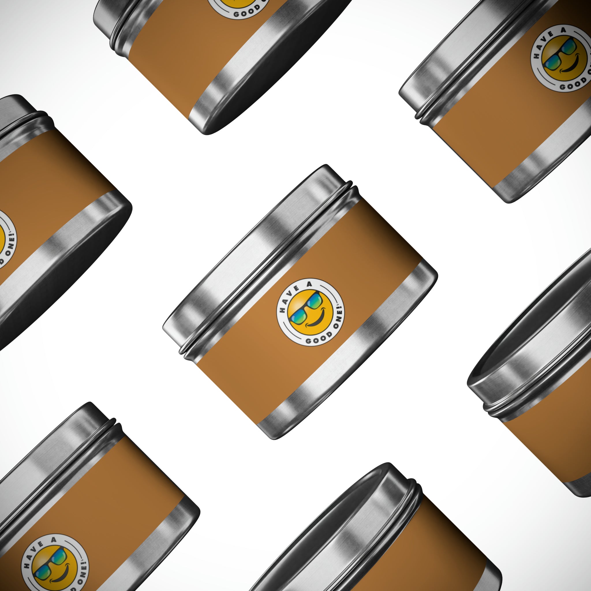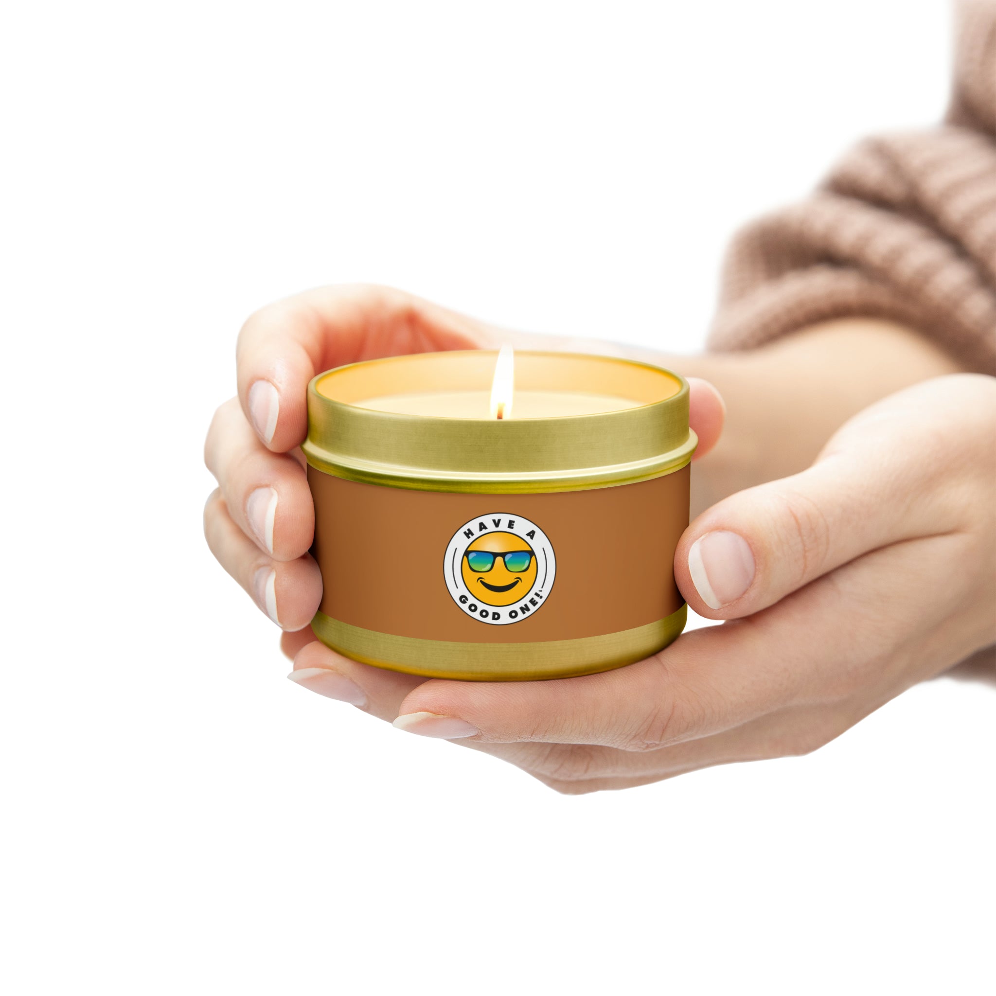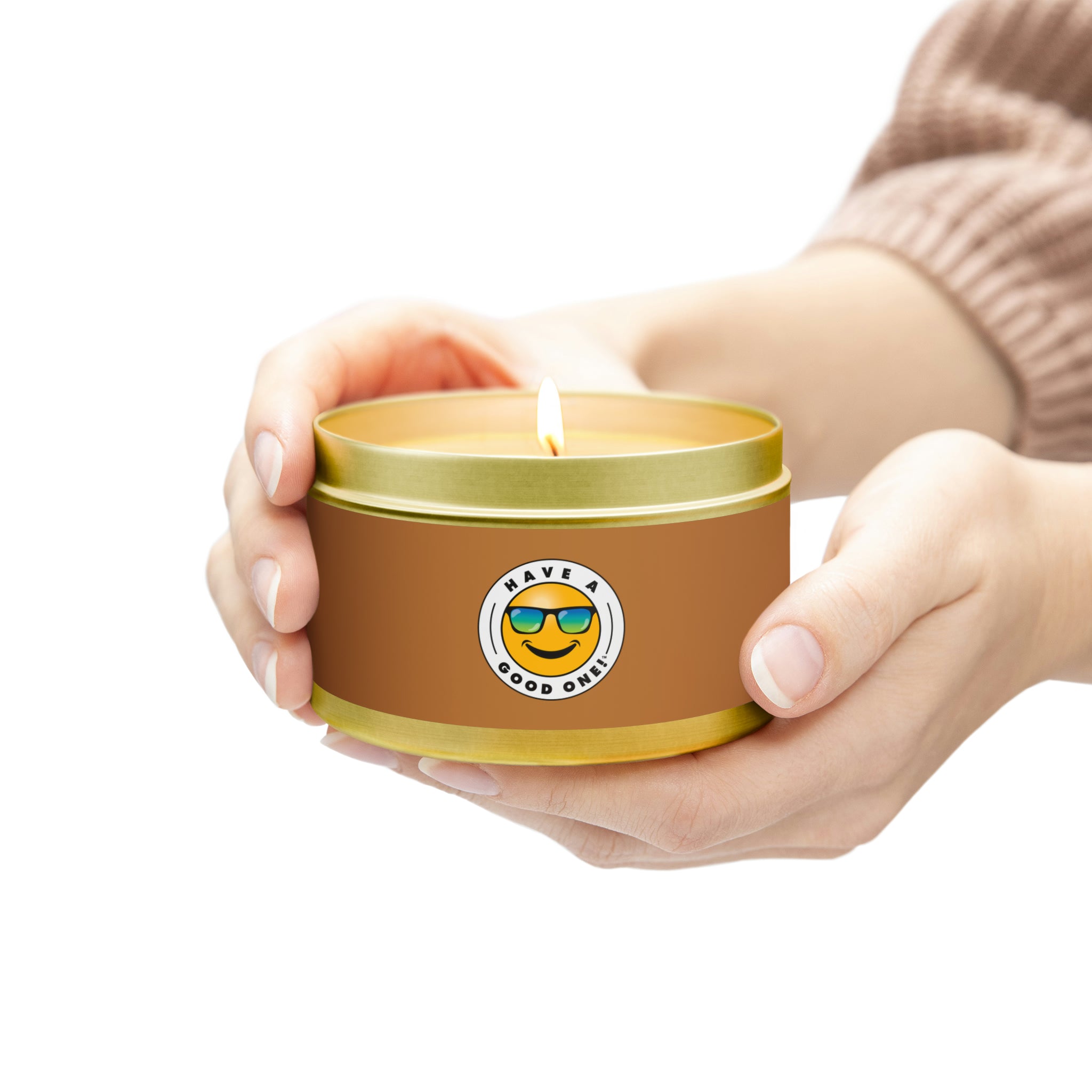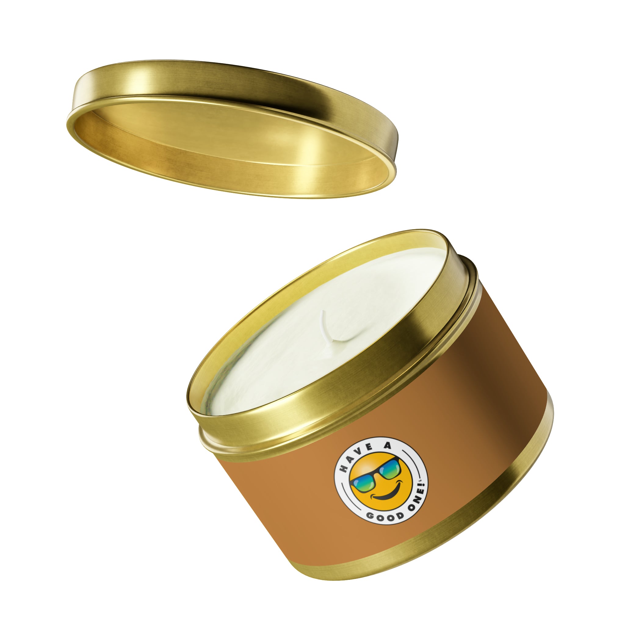 Tin Have A Good One! Candles With Lid - Light Brown Color With Blue Green Have A Good One Logo