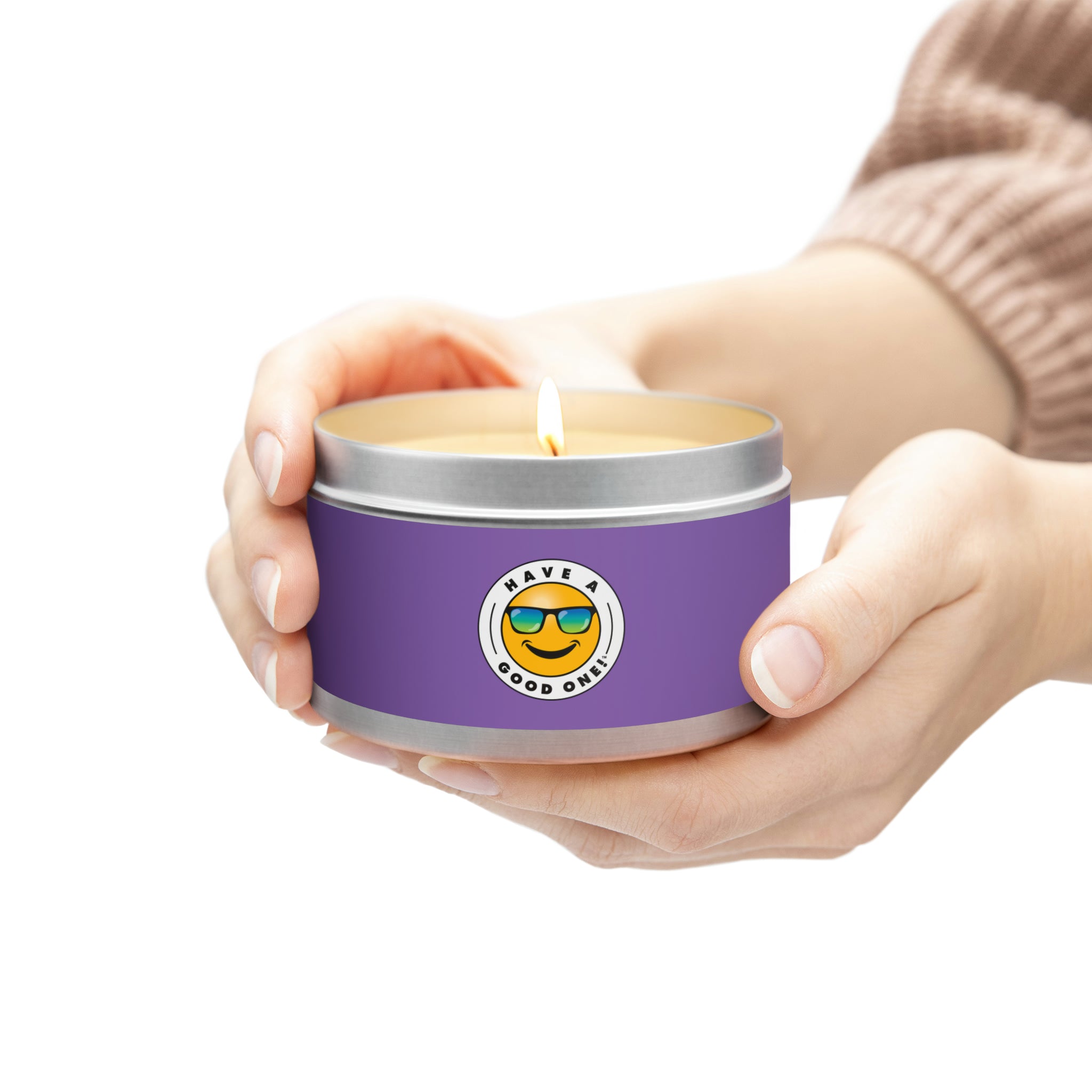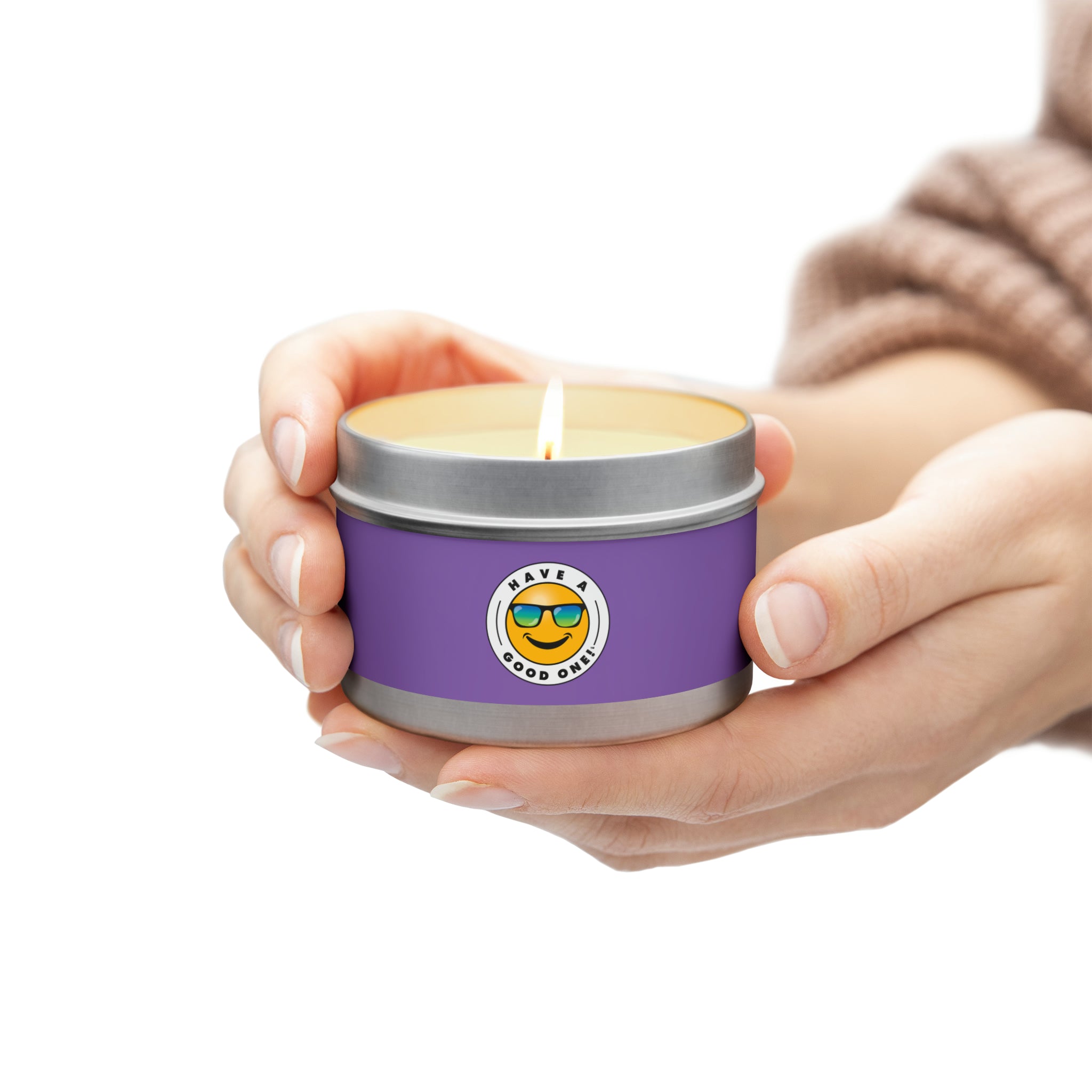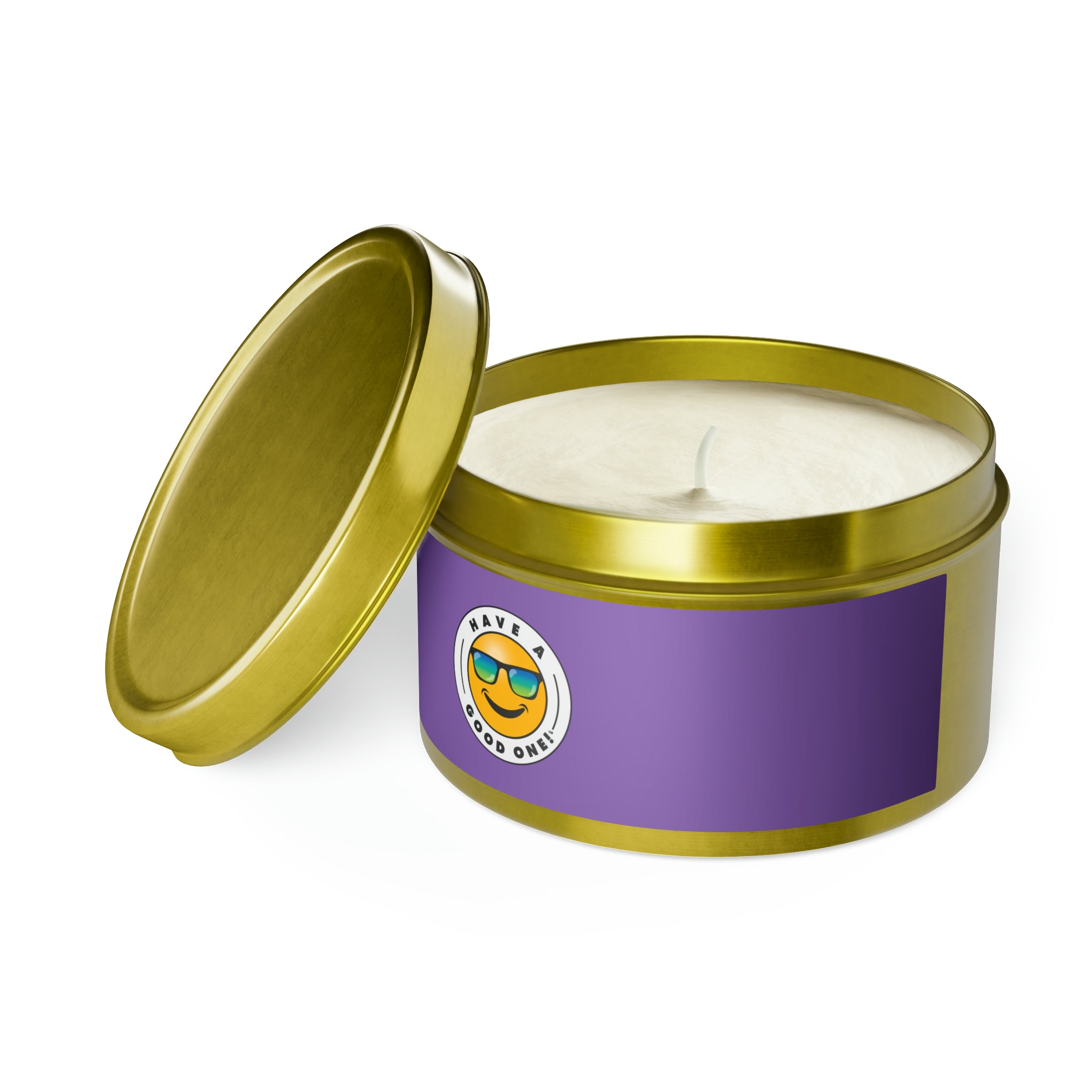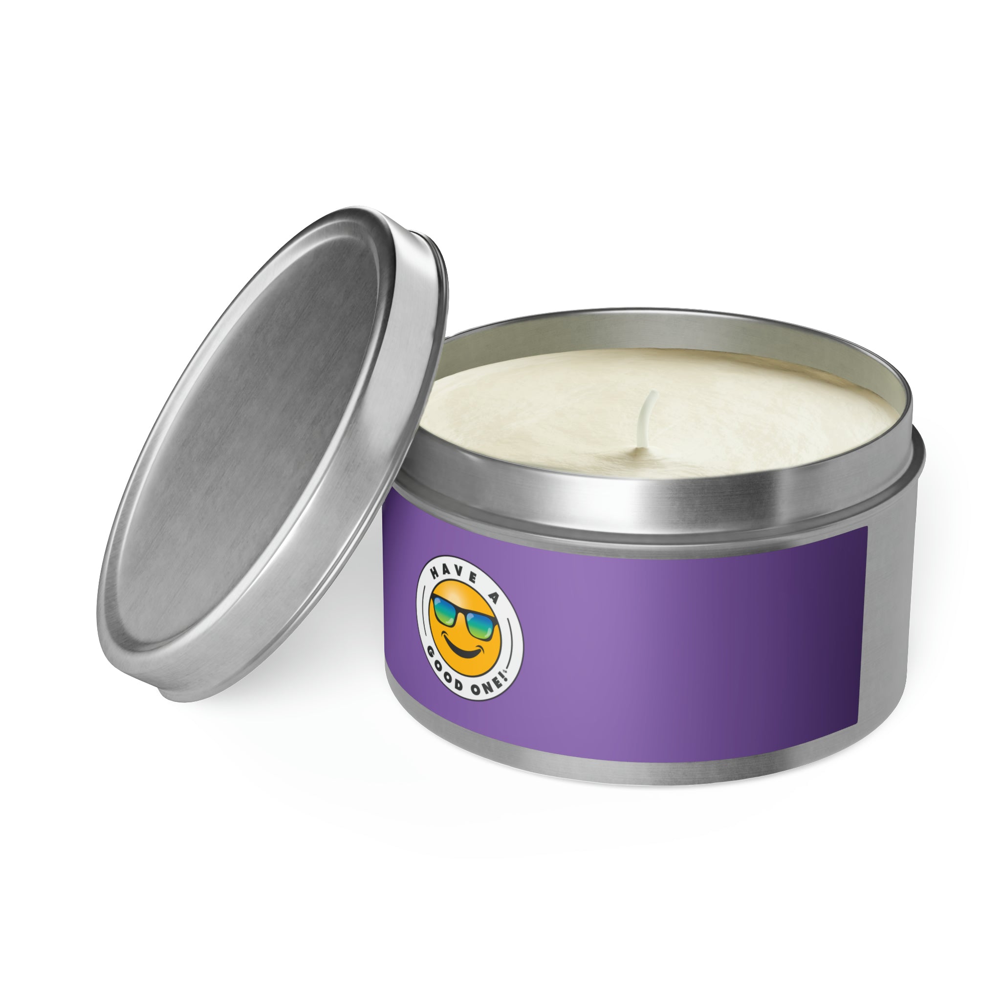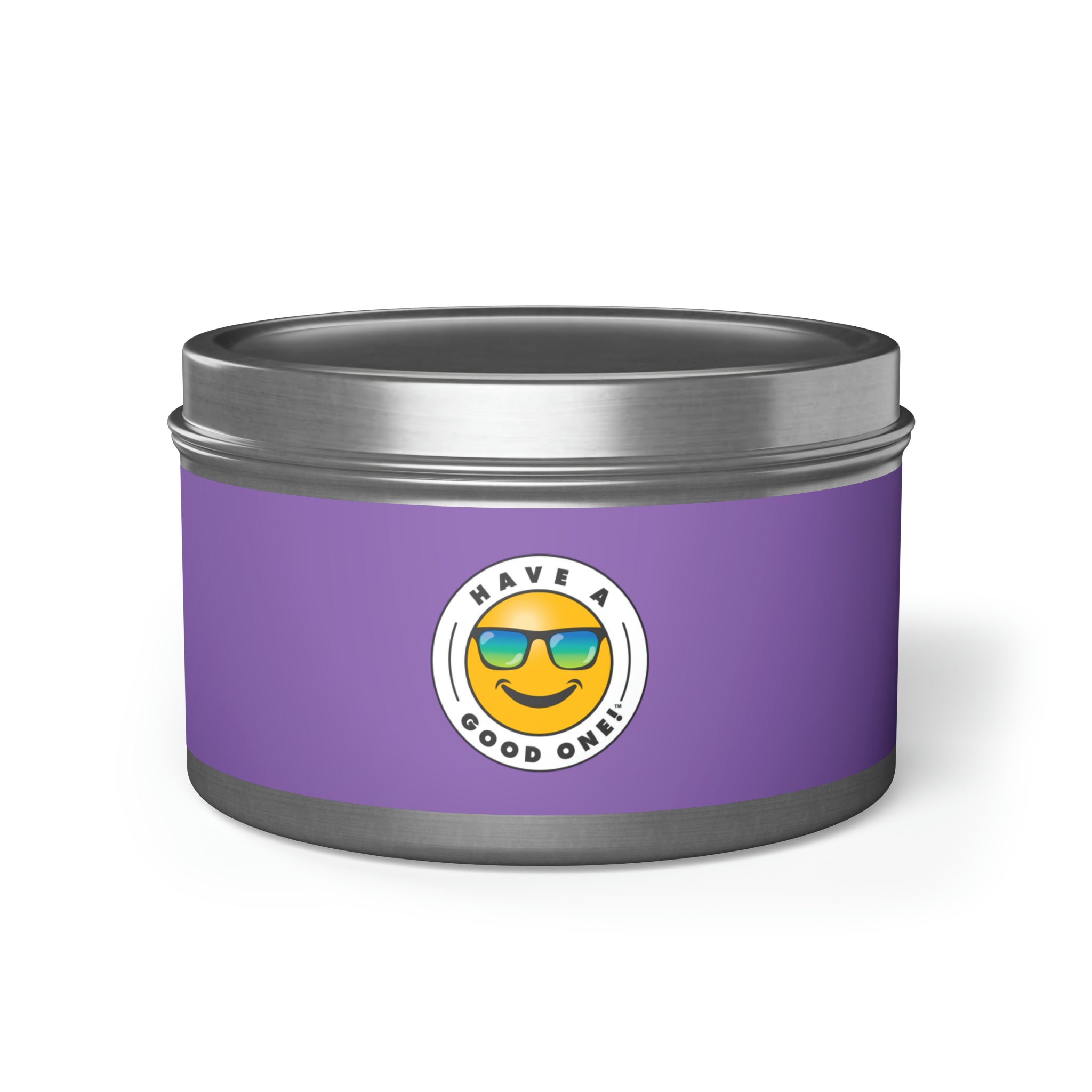 Tin Have A Good One! Candles With Lid - Light Purple Color With Blue Green Have A Good One Logo