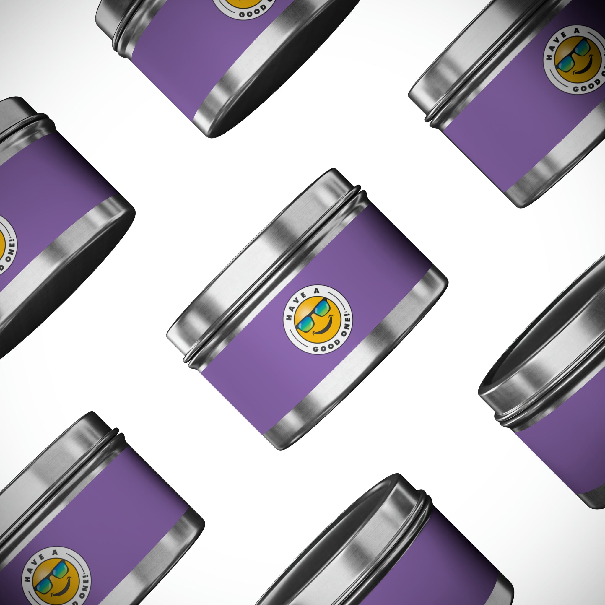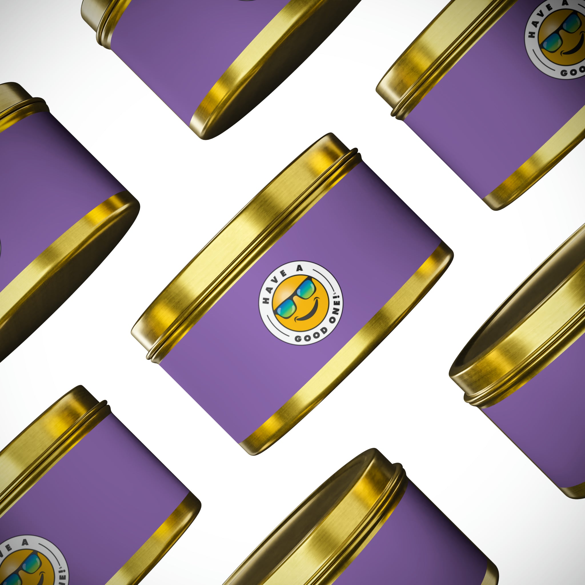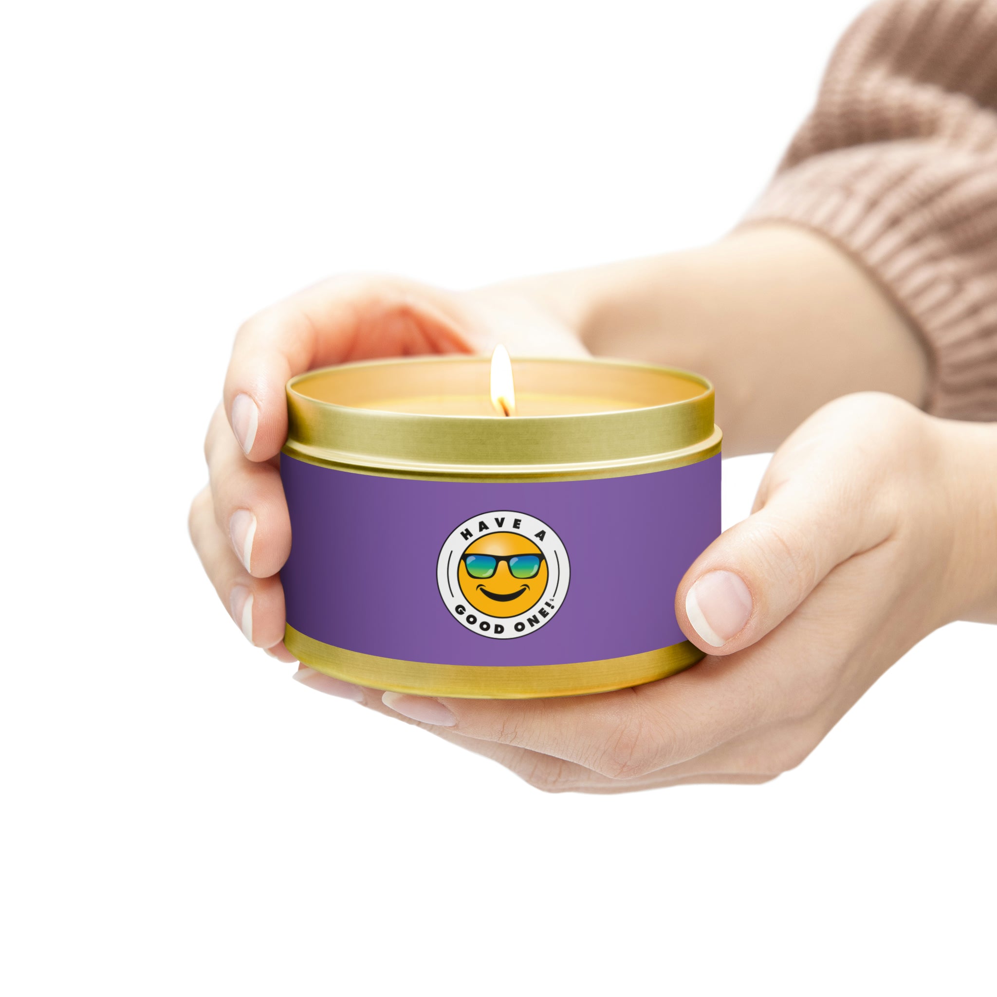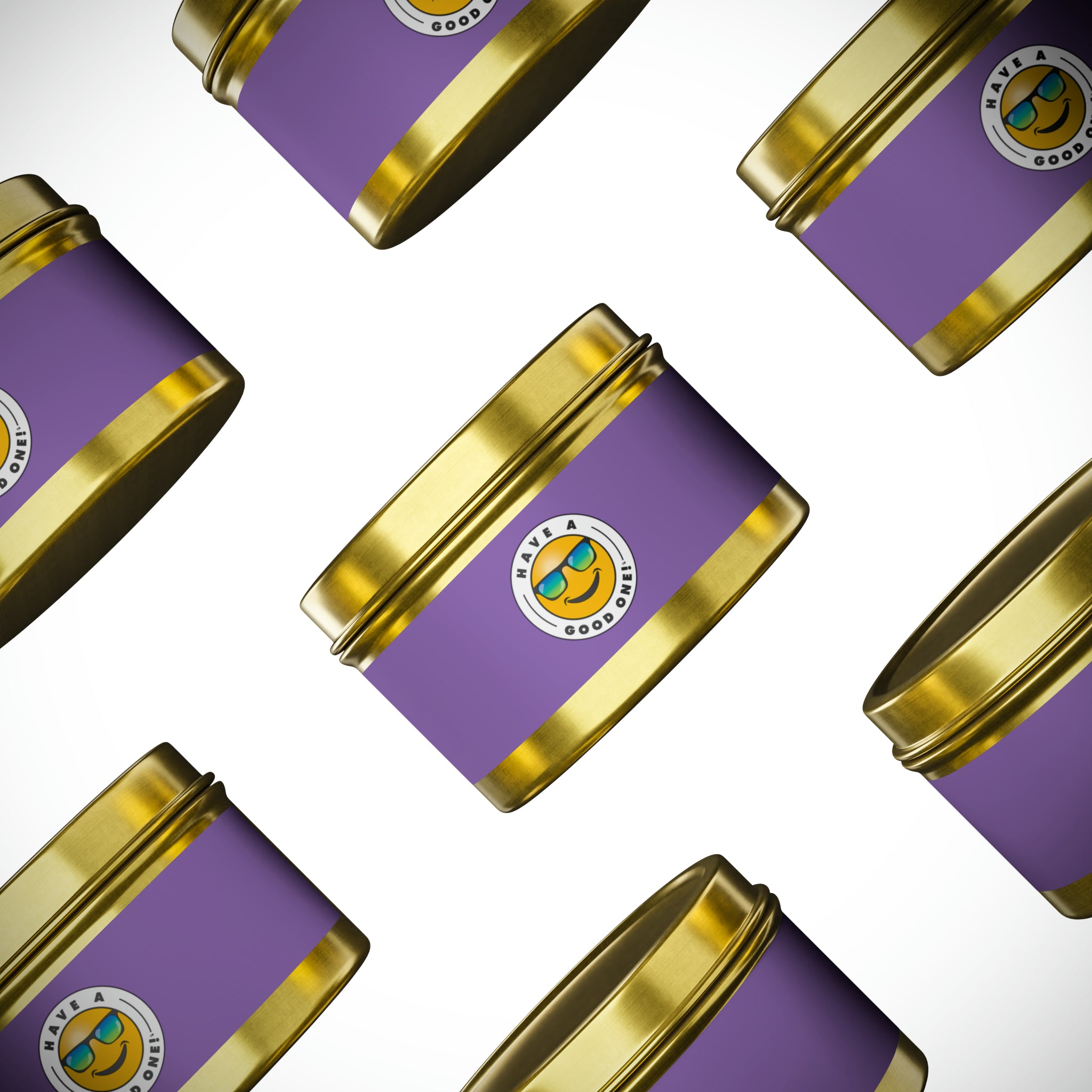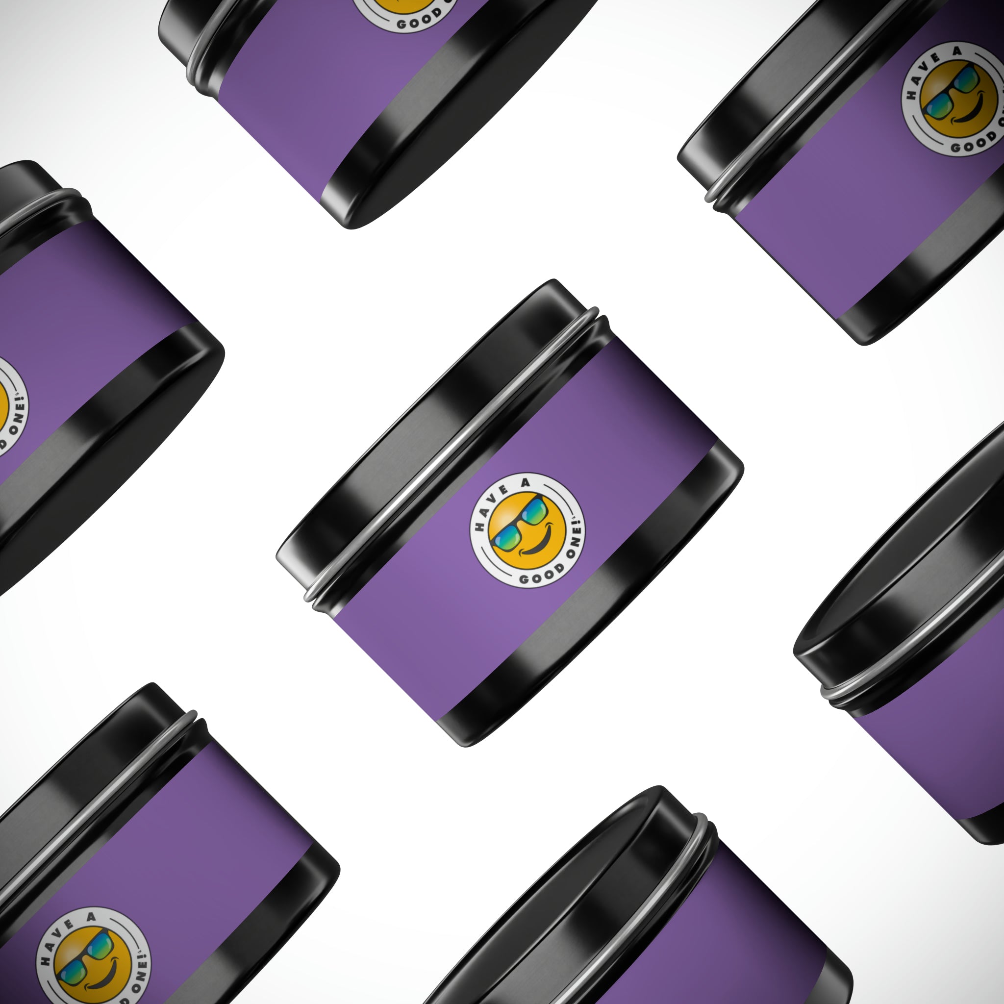 Tin Have A Good One! Candles With Lid - Light Purple Color With Blue Green Have A Good One Logo