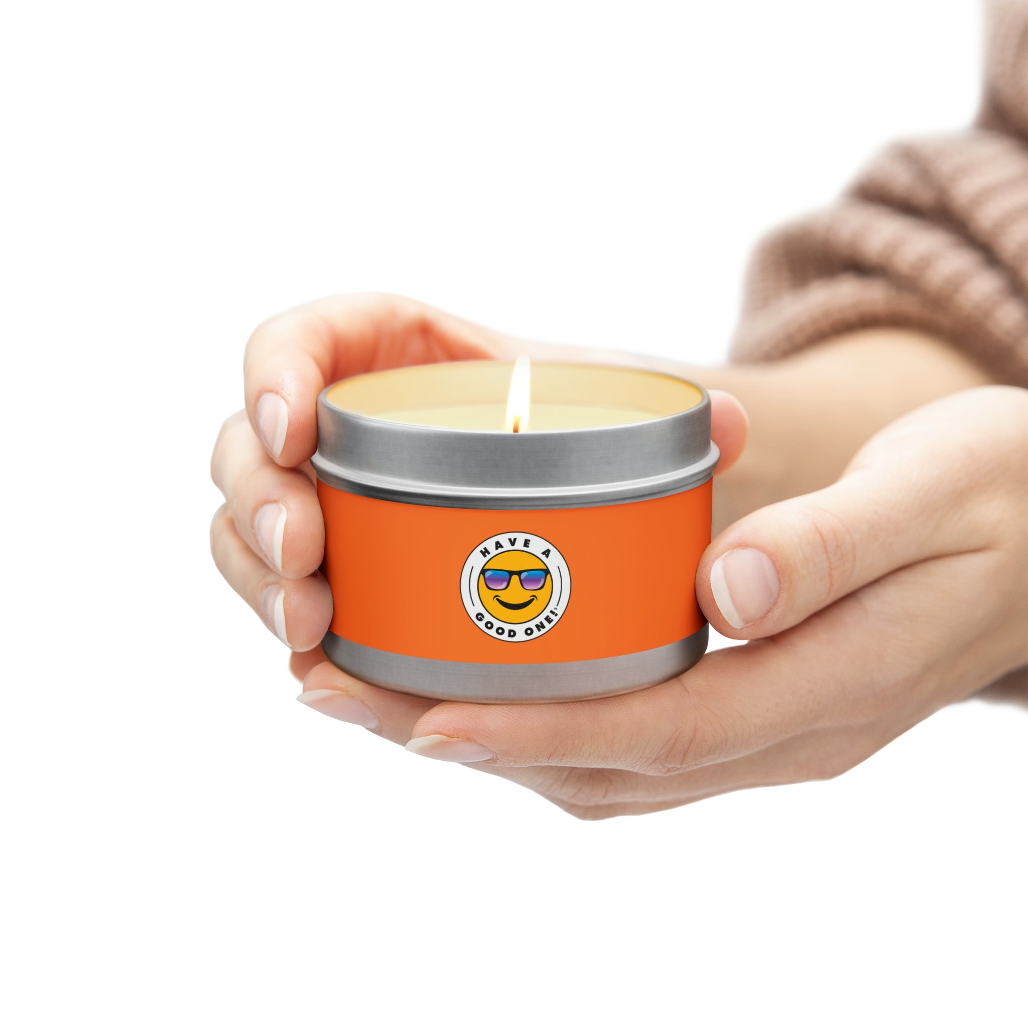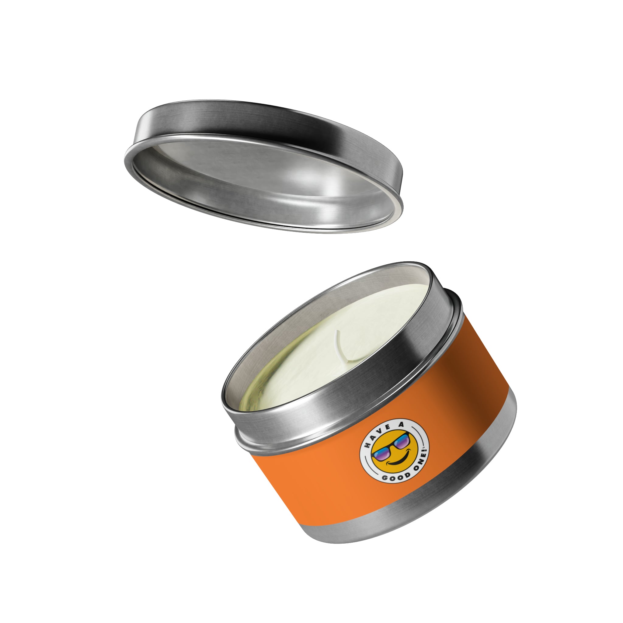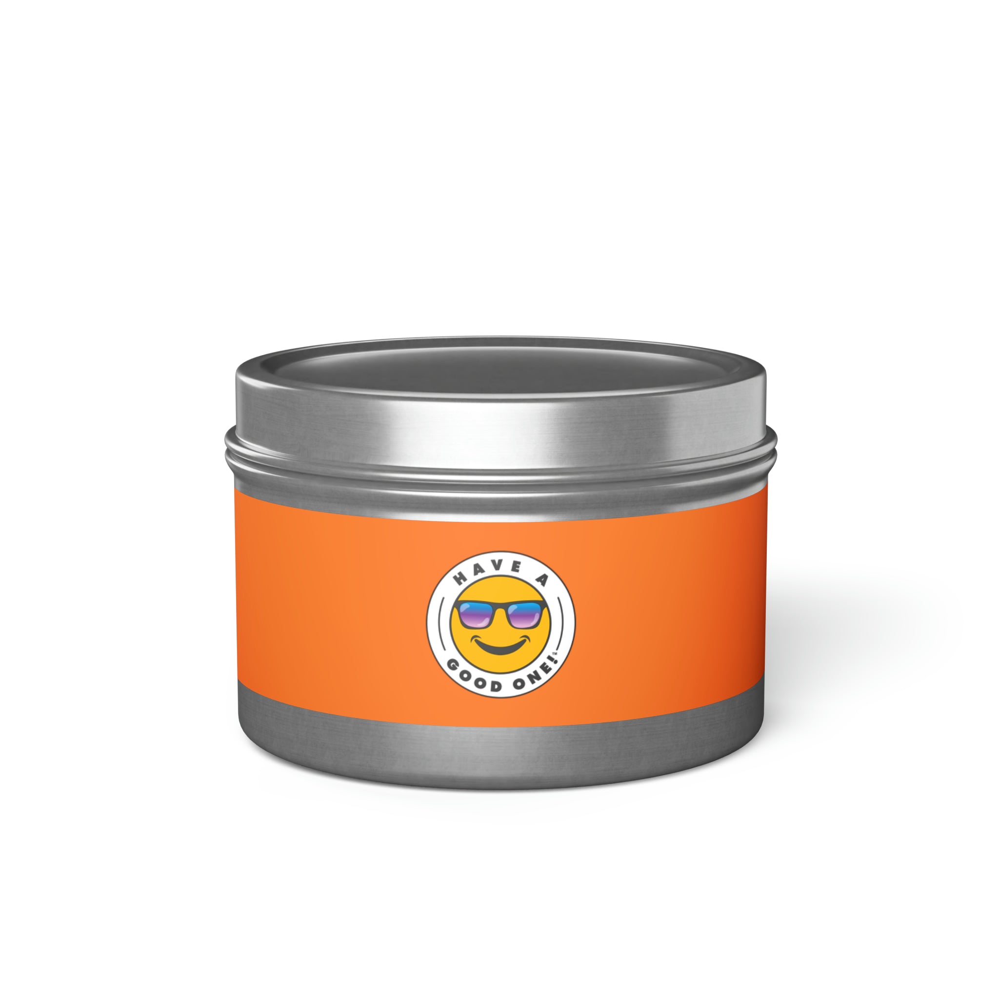 Tin Have A Good One! Candles With Lid - Orange Color With Blue Purple Have A Good One Logo