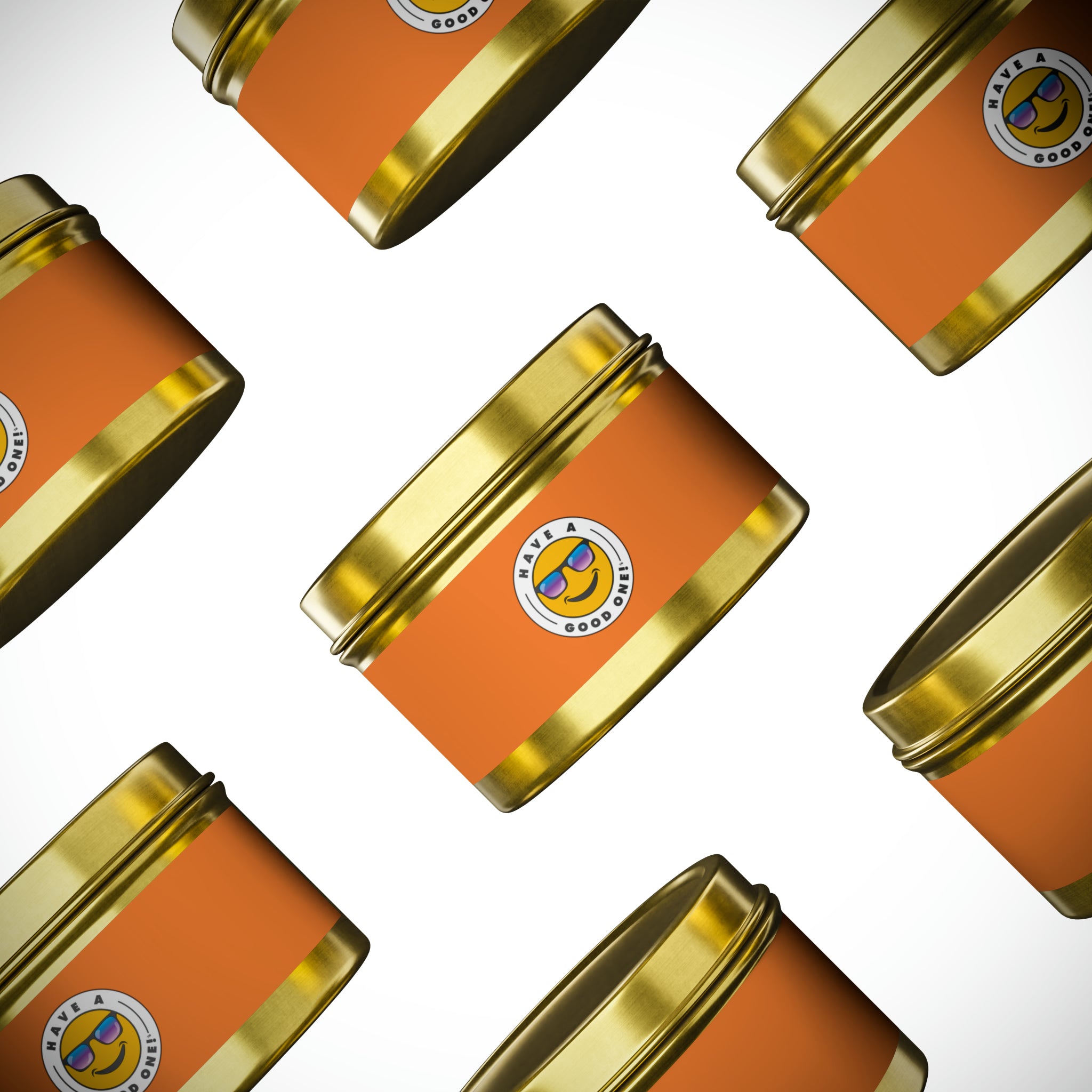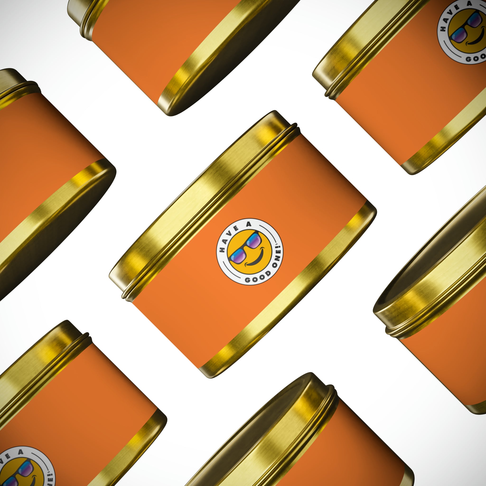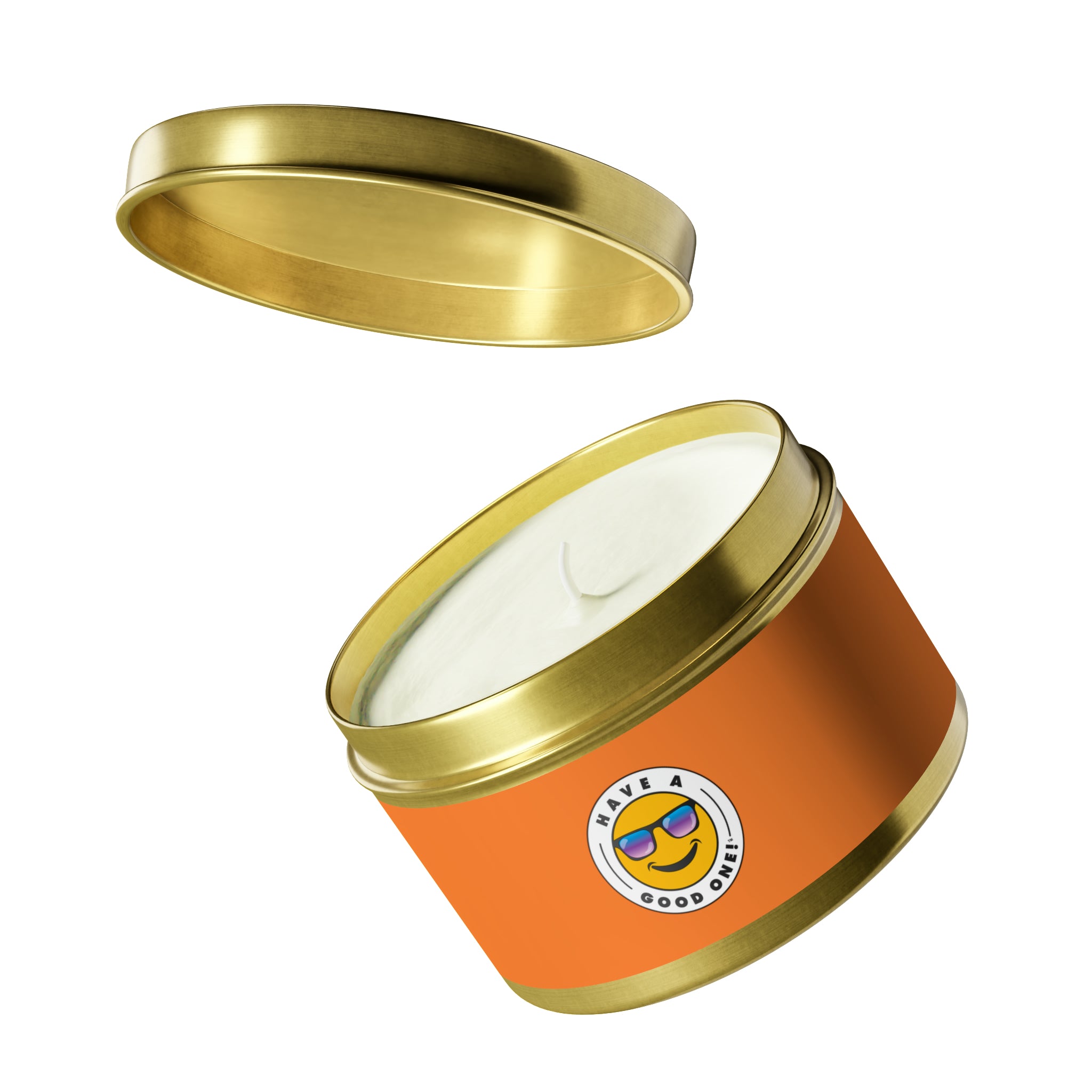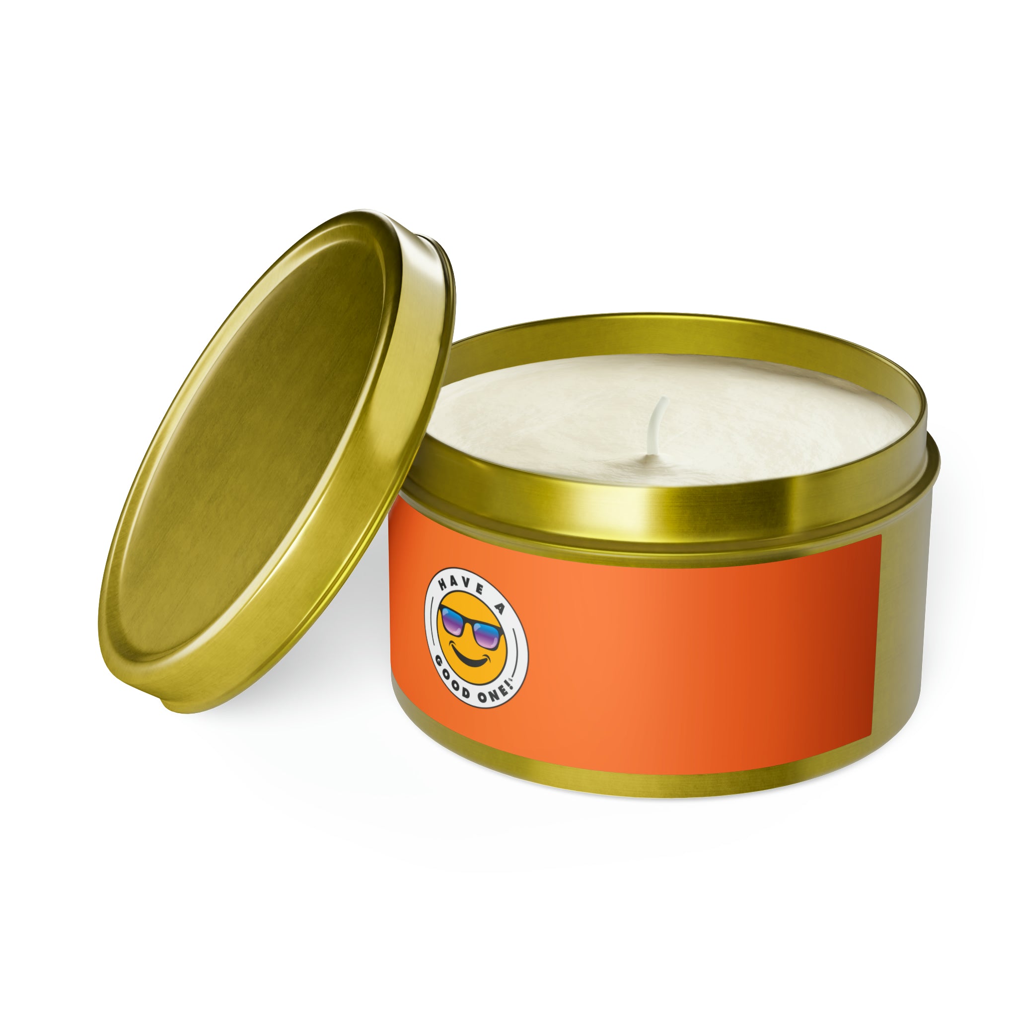 Tin Have A Good One! Candles With Lid - Orange Color With Blue Purple Have A Good One Logo
